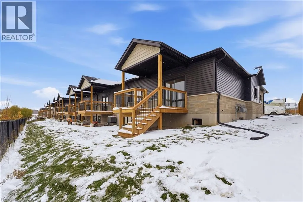 Timber Trail to Woodberry & Entrance is between 137 & 143 Woodberry Cres, Elmira. Welcome to Pine Ridge Crossing â discover our beautifully designed interior bungalow units, thoughtfully crafted by Pine Ridge Homes. Units 18â23 offer an exceptional blend of comfort, style, and modern convenience, each featuring 3 bedrooms and 3 bathrooms, along with fully finished basements for added living space. These interior units deliver impressive value with high-end finishes throughout, including quartz counters, soft-closing drawers, floor-to-ceiling custom kitchen cabinetry, and large windows that fill the home with natural light. The open-concept main floor offers a welcoming living area complete with an electric fireplace, perfect for cozy evenings at home. The main floor includes a spacious primary bedroom with a beautiful ensuite, generous closet space, and easy access to main-floor laundry. A second bedroom on the main level is ideal for guests, a home office, or a quiet den. Step outside to your covered back porch overlooking the peaceful pond, where calming sunsets become part of your everyday routine. The fully finished basement adds incredible functionality with an additional bedroom, a full bathroom, and a large family roomâperfect for extended family, recreation space, or hosting guests. Enjoy maintenance-free living with snow removal and landscaping taken care of for you. Buyers can choose from our move-in-ready spec homes or personalize their home through our professionally curated designer packages. Located in Elmiraâs sought-after South Parkwood subdivision, this community offers scenic walking trails, parks, golf courses, and the charm of small-town livingâall just 10 minutes from the city. Visit our Model Home at Unit 17 available Thursdays from 4â7 pm and Saturdays from 10 amâ12 pm. (id:27476)