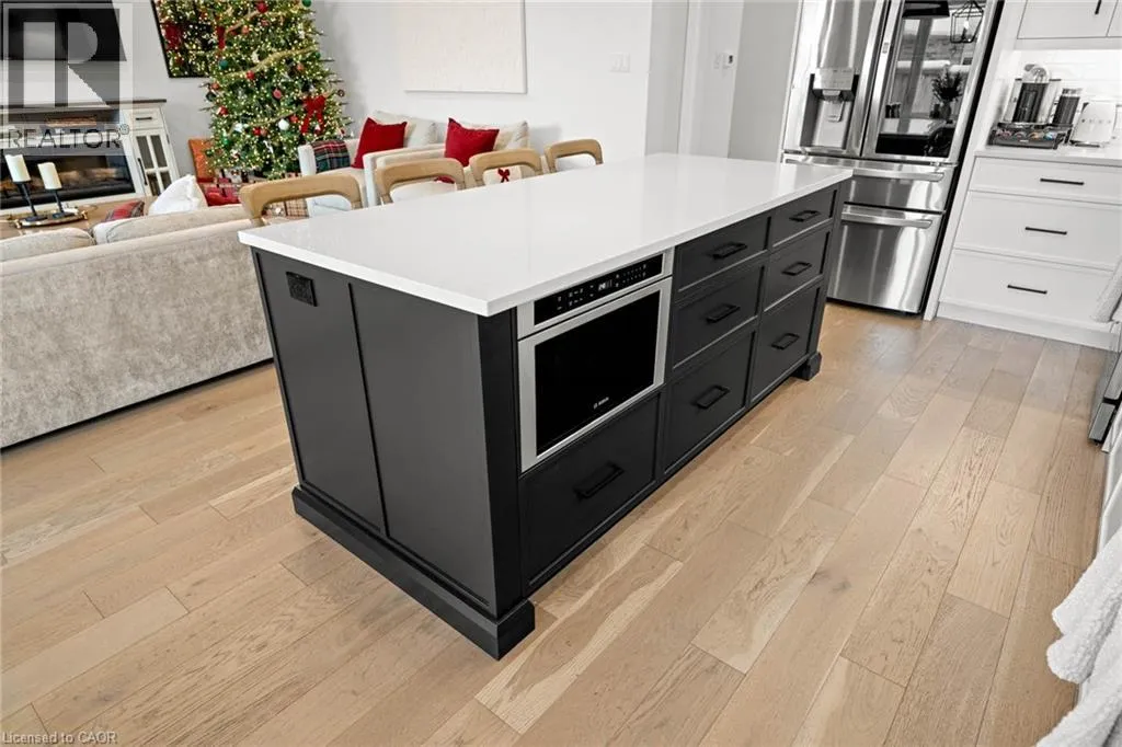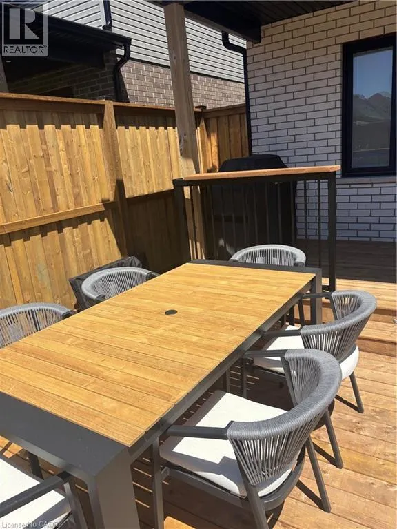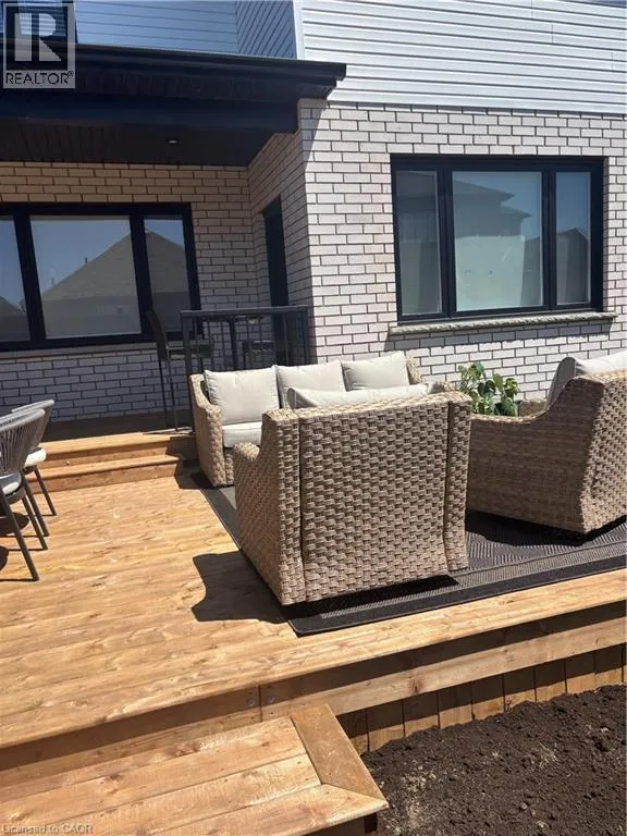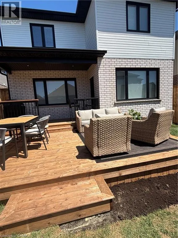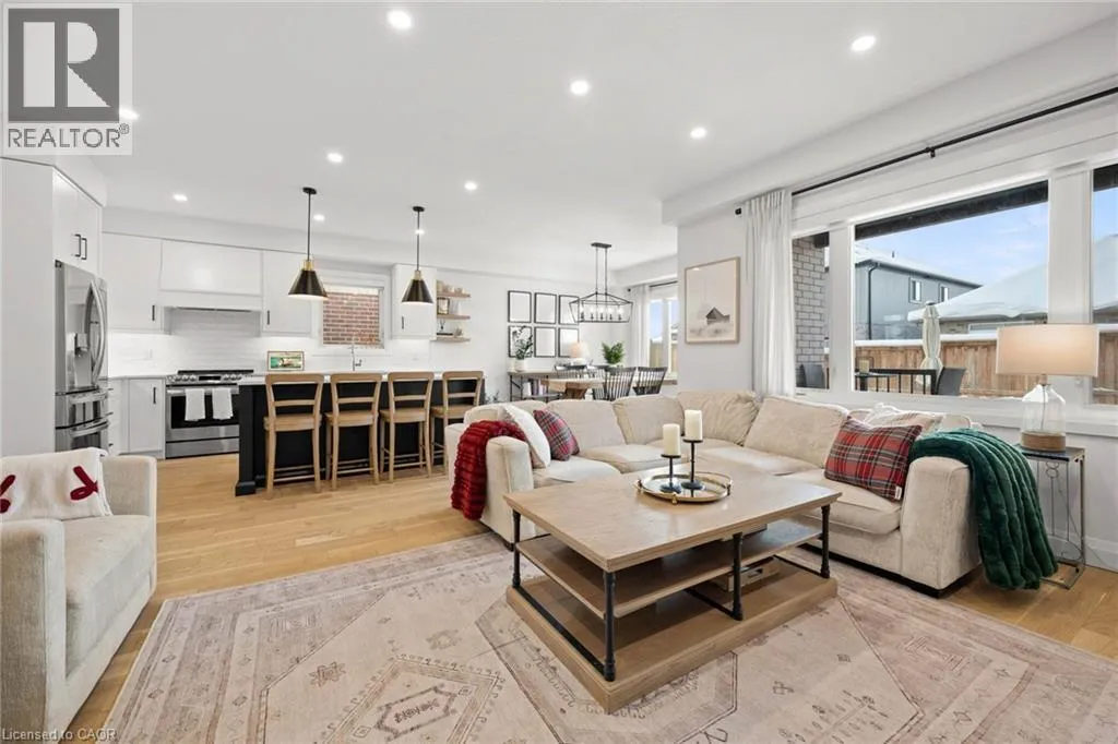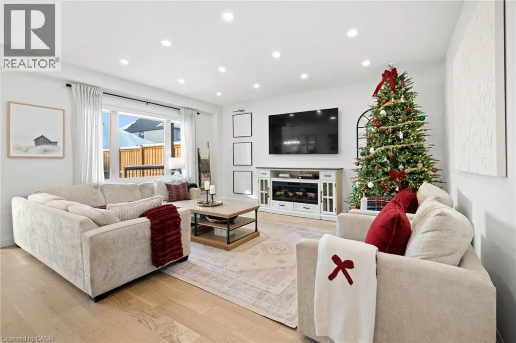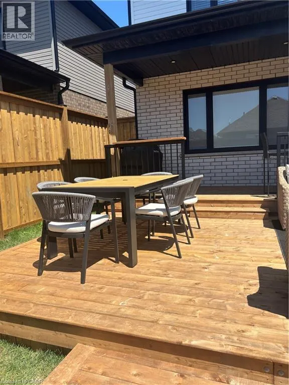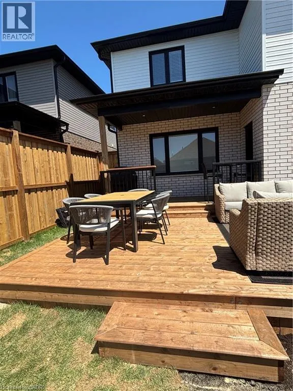 South Parkwood to Timber Trail Welcome to this beautifully finished Montgomery Homes residence in the desirable Southwood Park community of Elmira. This thoughtfully upgraded 4-bedroom, 3-bath home offers over 2,200 sq. ft. of stylish, functional living space. Light-filled and inviting, the main floor features 9â ceilings, hardwood flooring, and an open-concept kitchen, dining, and great room ideal for both everyday living and entertaining. The Chervin kitchen is equipped with high-end appliances, quartz countertops, and a large contrasting island, complemented by abundant pot lighting throughout. The dining area walks out to a finished deck overlooking a fully fenced backyardâperfect for relaxing, entertaining, or family enjoyment. A convenient laundry room and 2-piece powder room complete the main level. Upstairs, the hardwood staircase leads to a spacious primary retreat with french doors, double closets and a luxurious 5-piece ensuite featuring a freestanding soaker tub and glass-enclosed shower. Three additional generously sized bedrooms and a full main bath complete the upper level. All bathrooms feature Chervin cabinetry with floating vanities and quartz countertops. Surrounded by nature trails and parks, and just minutes to shopping with easy access to Waterloo, Kitchener, and Guelph, this home offers the perfect blend of small-town charm and city convenience. Elmira boasts beautiful parks, a splash pad, recreation centre, arena, pool, fitness facilities, and a vibrant downtown with local boutiques, restaurants, and essential services. A true turnkey opportunity in a welcoming, family-friendly communityâthis exceptional home is ready to be enjoyed. Book your private showing today. (id:27476)