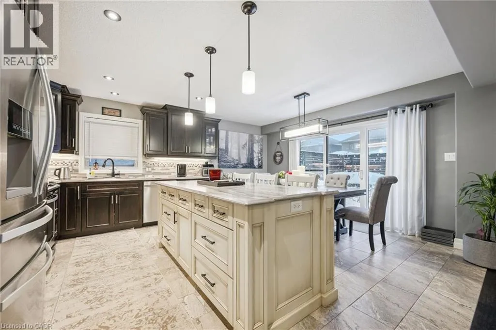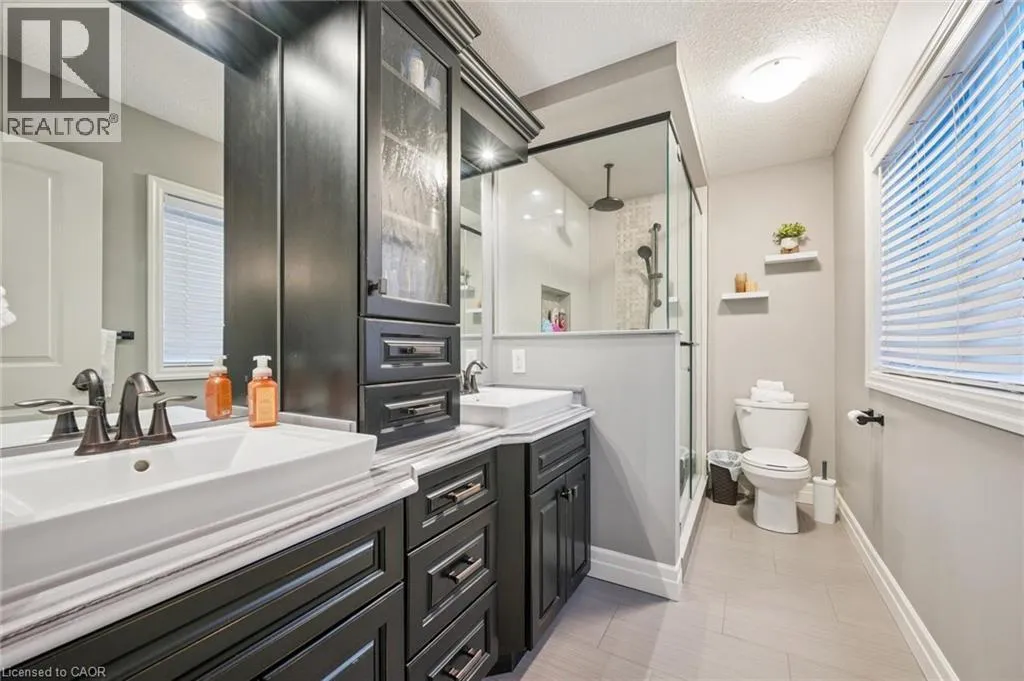 Listowel Rd. to Timber Trail Rd. to Woodberry Cr. Built by distinguished Paradigm Homes, this legal duplex is located in Elmiraâs desirable Southwood Park community. The main floor offers a bright, modern layout featuring an eat-in kitchen with island, ample cupboard space, and high-end appliances including a gas stove. The living room is enhanced by a gas fireplace and built-in wall speakers, ideal for everyday living and entertaining. Carpet free throughout, with carpeting limited only to the bedrooms. Upstairs, the spacious primary bedroom provides a private retreat with luxury ensuite bathroom, featuring his and hers sinks and a rainfall shower. Upper level laundry, a 4 pc. bathroom and two other large bedrooms complete the space. Step outside to the large, fully fenced, private backyard, featuring gazebo, hot tub and raised flowerbeds. This is a true entertainerâs oasis offering space to relax, host, and enjoy outdoor living. The professionally finished one bedroom lower level apartment includes a separate entrance and private laundry, making it ideal for extended family, guests, or as a valuable mortgage helperâwhile allowing you to comfortably enjoy the main home as your own. Hobbyists take note, the double car garage is fully insulated and heated. Enjoy the best of both worlds - minutes from shopping and amenities, a short drive to Waterloo and steps from the park, forest and walking trails. (id:27476)