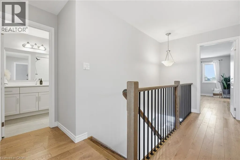 Off of Kissing Bridge Drive or Snyder Avenue North Welcome to 31 Miranda Path, a beautifully upgraded 4-year-old home in the sought-after Country Club Estates of Elmira. Offering exceptional space and versatility, this home features 6 bedrooms, 4 bathrooms, and a fully finished basement, ideal for growing or multi-generational families. The main floor boasts an open-concept layout with 9’ ceilings, creating a bright and welcoming atmosphere. The heart of the home is the stunning kitchen, complete with high-end appliances, stylish cabinetry, and white quartz countertops. The sun-filled living room and spacious dining area are perfect for entertaining, with sliding doors leading to the backyard, which will be fully fenced for added privacy and functionality. A 2-piece bathroom, laundry room, and garage access complete the main level. Upstairs, the primary suite offers a walk-in closet and a luxurious 5-piece ensuite with soaker tub, glass shower, and dual vanities. Three additional bedrooms and a 4-piece bathroom complete the second floor. The finished basement features large windows, generous living space, two additional bedrooms, a 4-piece bathroom, and utility room—perfect for guests, a home office, or recreation space. Loaded with upgrades including quality flooring, cabinetry, crown molding, and pot lights throughout, this home is ideally located near schools, parks, Woolwich Memorial Centre, Elmira Golf Club, shops, restaurants, and offers easy access to Waterloo. A move-in ready home with space, style, and an unbeatable location—book your private showing today. (id:27476)