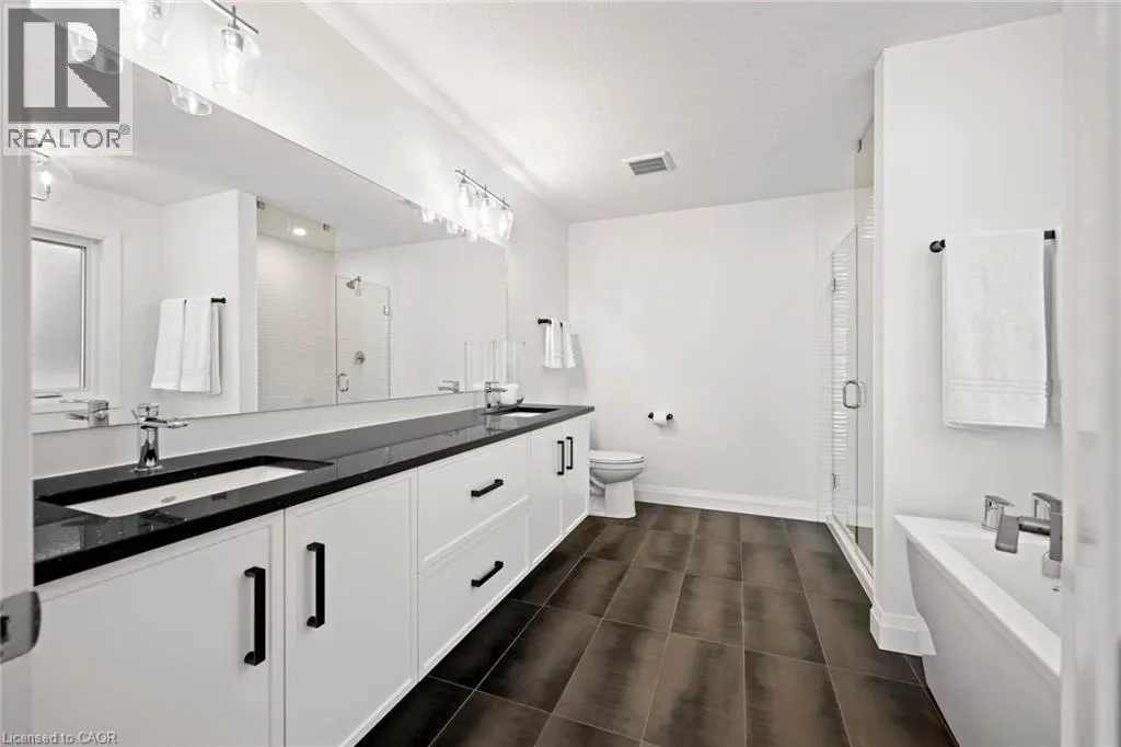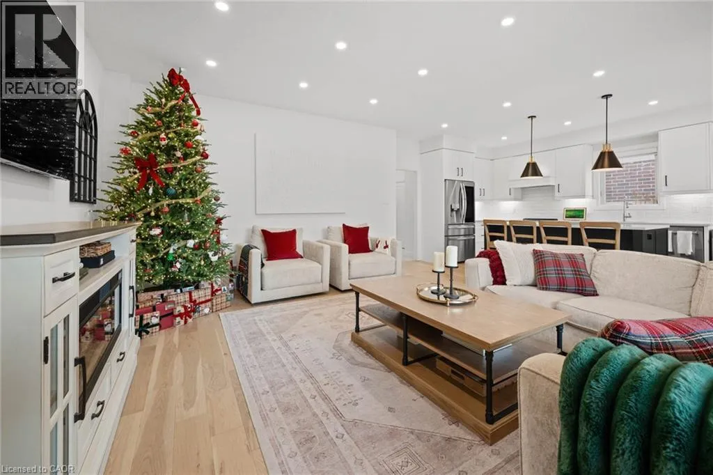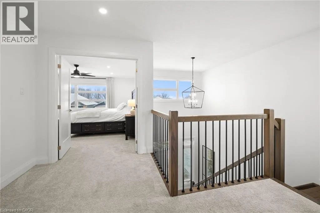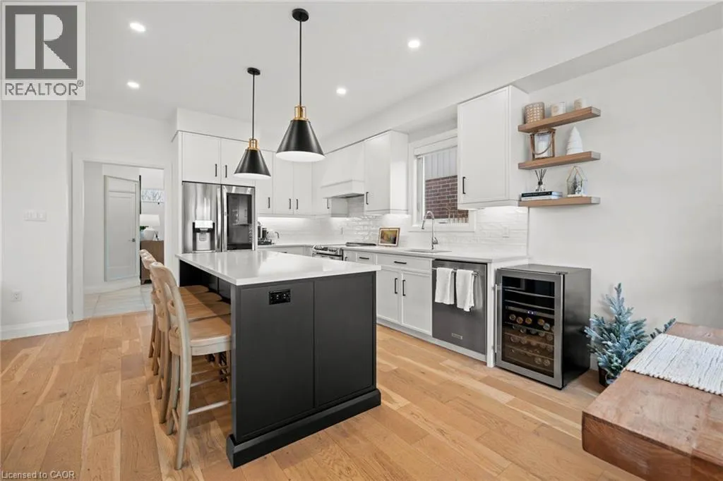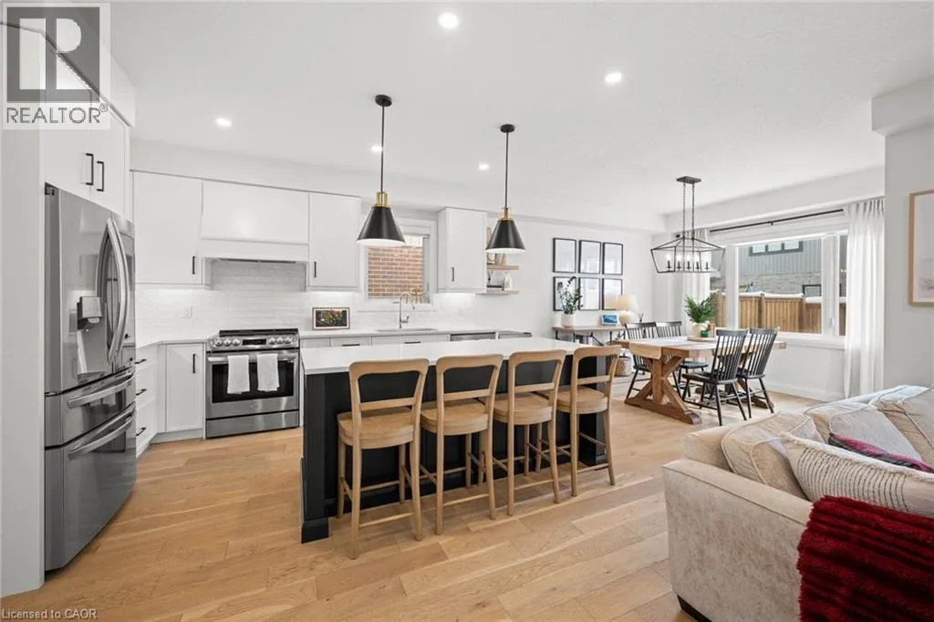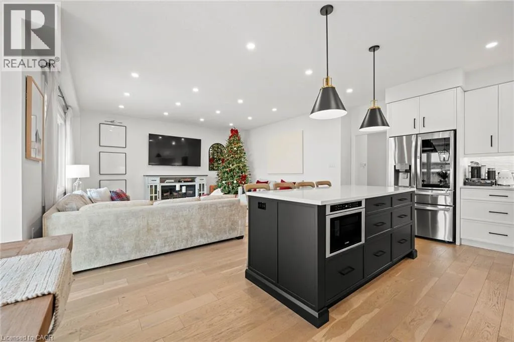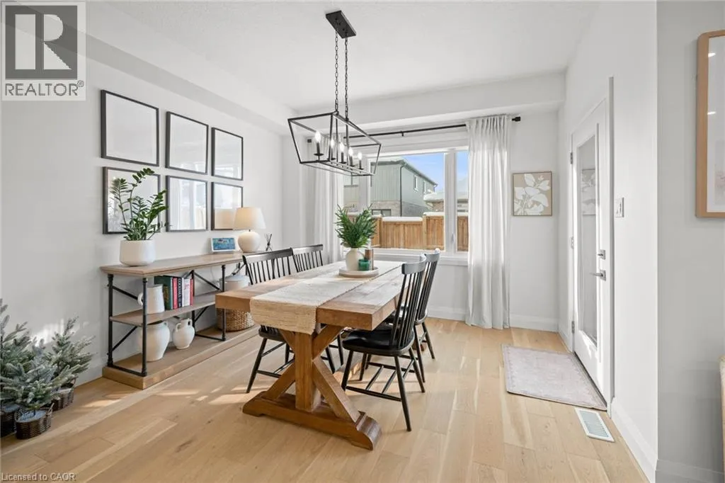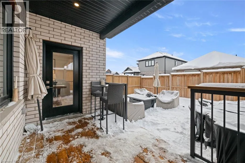 South Parkwood to Timber Trail Welcome to this beautifully finished Montgomery Homes residence in the desirable Southwood Park community of Elmira. This thoughtfully upgraded 4-bedroom, 3-bath home offers over 2,200 sq. ft. of stylish, functional living space. Light-filled and inviting, the main floor features 9â ceilings, hardwood flooring, and an open-concept kitchen, dining, and great room ideal for both everyday living and entertaining. The Chervin kitchen is equipped with high-end appliances, quartz countertops, and a large contrasting island, complemented by abundant pot lighting throughout. The dining area walks out to a finished deck overlooking a fully fenced backyardâperfect for relaxing, entertaining, or family enjoyment. A convenient laundry room and 2-piece powder room complete the main level. Upstairs, the hardwood staircase leads to a spacious primary retreat with french doors, double closets and a luxurious 5-piece ensuite featuring a freestanding soaker tub and glass-enclosed shower. Three additional generously sized bedrooms and a full main bath complete the upper level. All bathrooms feature Chervin cabinetry with floating vanities and quartz countertops. Surrounded by nature trails and parks, and just minutes to shopping with easy access to Waterloo, Kitchener, and Guelph, this home offers the perfect blend of small-town charm and city convenience. Elmira boasts beautiful parks, a splash pad, recreation centre, arena, pool, fitness facilities, and a vibrant downtown with local boutiques, restaurants, and essential services. A true turnkey opportunity in a welcoming, family-friendly communityâthis exceptional home is ready to be enjoyed. Book your private showing today. (id:27476)