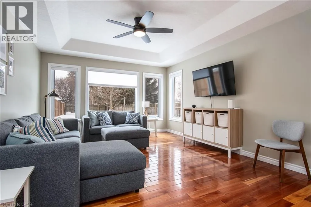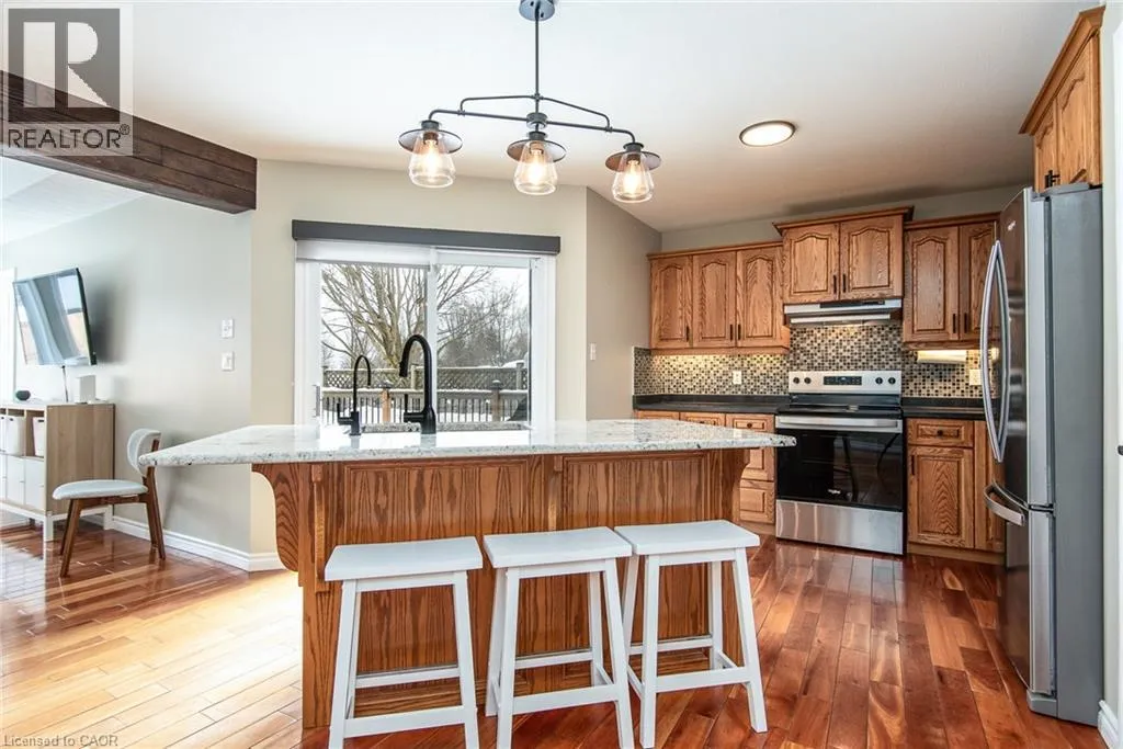 Welcome to 37 Duke Street in Elmira, a beautifully maintained family home offering over 2,500 sq ft of finished living space with 3 bedrooms and 3 bathrooms in a desirable, family-friendly neighbourhood. This move-in-ready home features a bright and welcoming main floor, stylish new flooring throughout the upper level, stairs and basement, and a finished lower level complete with a full bathroom - perfect for a rec room, home office, or guest space. The layout offers both comfortable everyday living and functional space for a growing family. Step outside to enjoy the large, fully fenced backyard with no direct rear neighbours, creating a private setting for relaxing or entertaining. A single car garage and driveway parking for three vehicles add everyday convenience. Updates include luxury laminate flooring (2025), roof (2018), furnace (2019), sump pump (2019), basement bathroom (2021), updated appliances, deck (2023) and new owned water softener and hot water heater. Located close to schools, parks, recreation facilities, and Elmiraâs vibrant downtown, this home offers the perfect blend of small-town charm and modern comfort, with easy access to Waterloo and Kitchener. A wonderful opportunity to settle into a welcoming community and a home thatâs ready to enjoy. (id:27476)