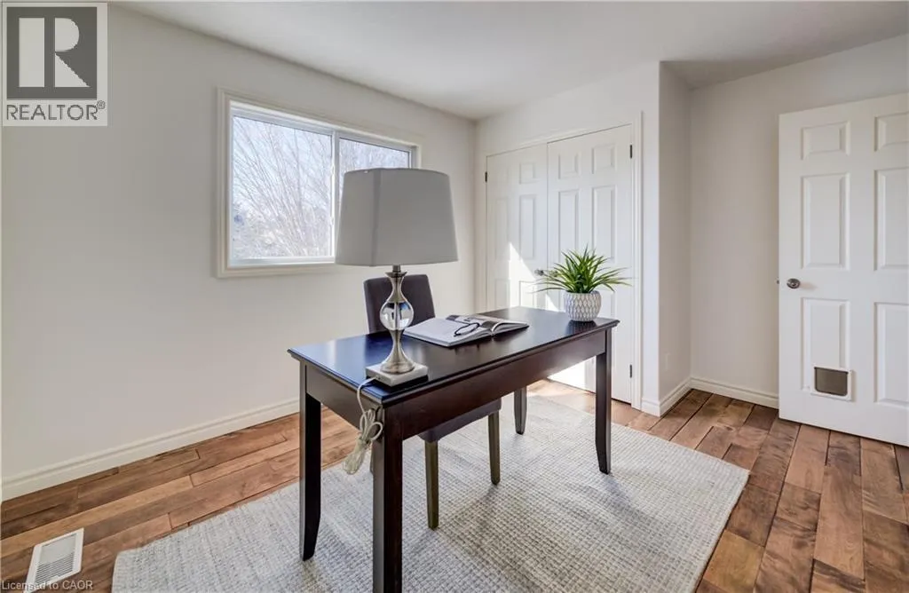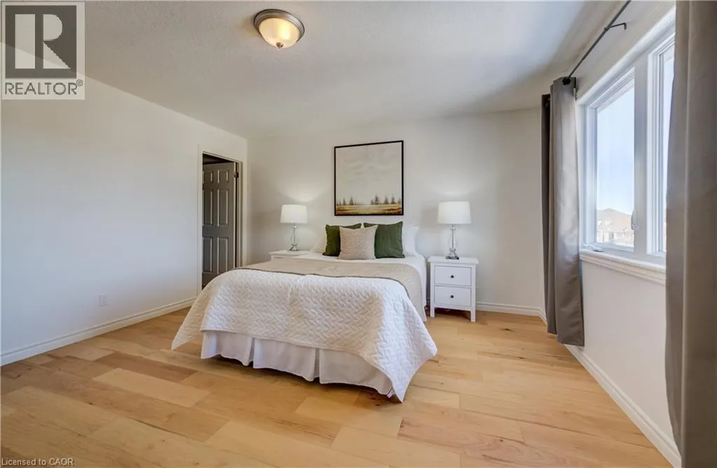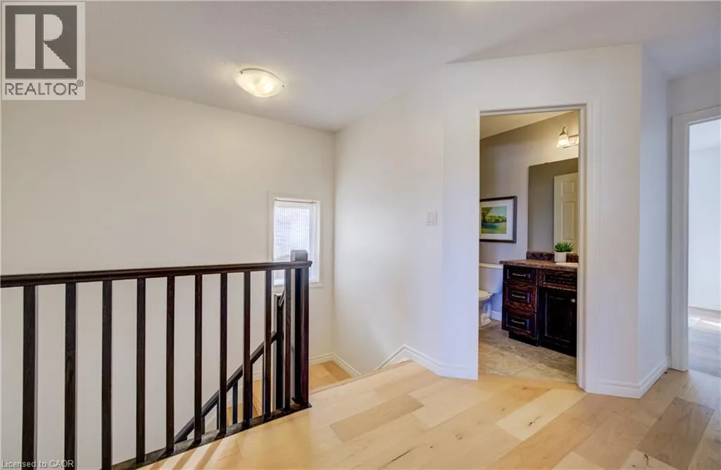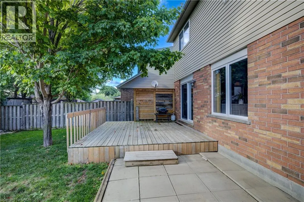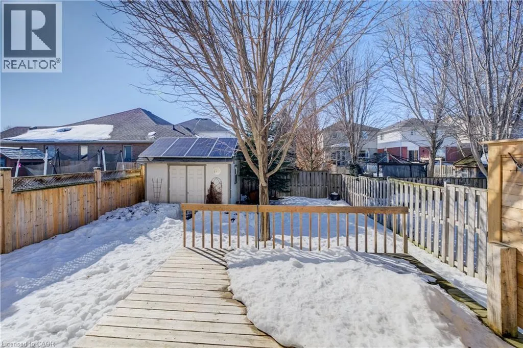 Barnswallow to Brookmead to Knapp Road Paradigm Built Detached Home in a Prime Elmira Location! Welcome to this bright and beautifully maintained three bedroom, three bathroom home including an ensuite, built by Paradigm and ideally situated in one of Elmiraâs most sought after neighborhoods. Just steps from the Woolwich Memorial Centre and within walking distance to schools, parks, and downtown amenities, this home offers the perfect blend of quality craftsmanship and everyday convenience. This property also features solar panels installed on both the house and the shed, offering improved energy efficiency. Step inside to a carpet free interior featuring fresh paint throughout and newly installed hardwood flooring on the staircase and upper level, creating a stylish, move in ready space. The spacious kitchen includes an island with return seating and flows seamlessly into a cozy dining area with patio doors leading to a fully fenced backyard, ideal for entertaining, family gatherings, or relaxing outdoors. Upstairs, you will find three generously sized bedrooms, two full four piece bathrooms including a private ensuite, and the added convenience of second floor laundry. The primary suite features its own ensuite bath, while the additional full bathroom provides comfort and functionality for family or guests. Additional highlights include a single car garage, double wide driveway, and an unfinished basement offering endless possibilities to customize to your needs. Do not miss this opportunity to own a quality built Paradigm home in a welcoming, family friendly community. (id:27476)