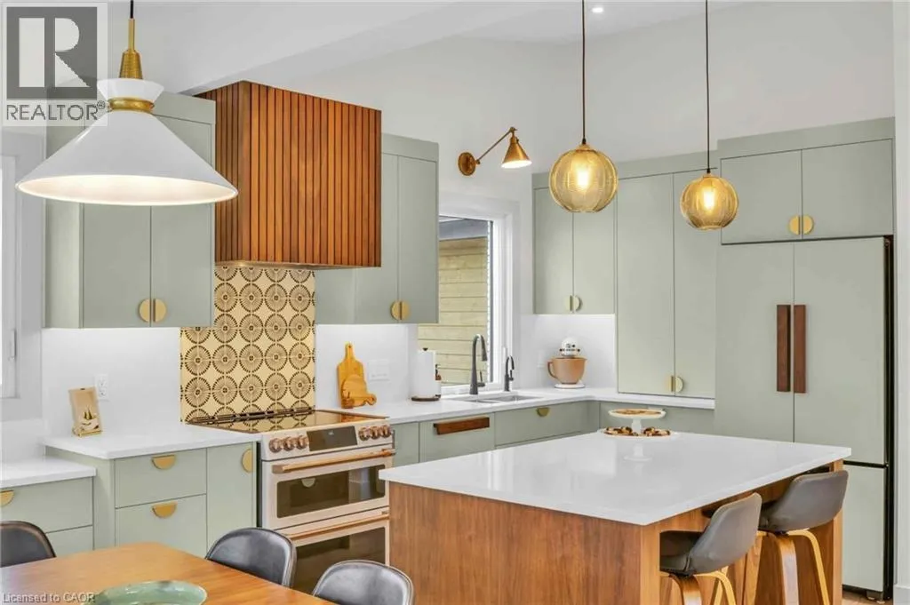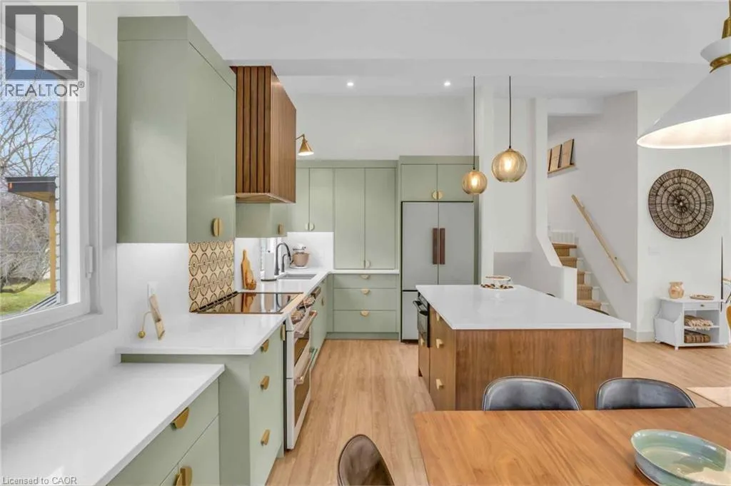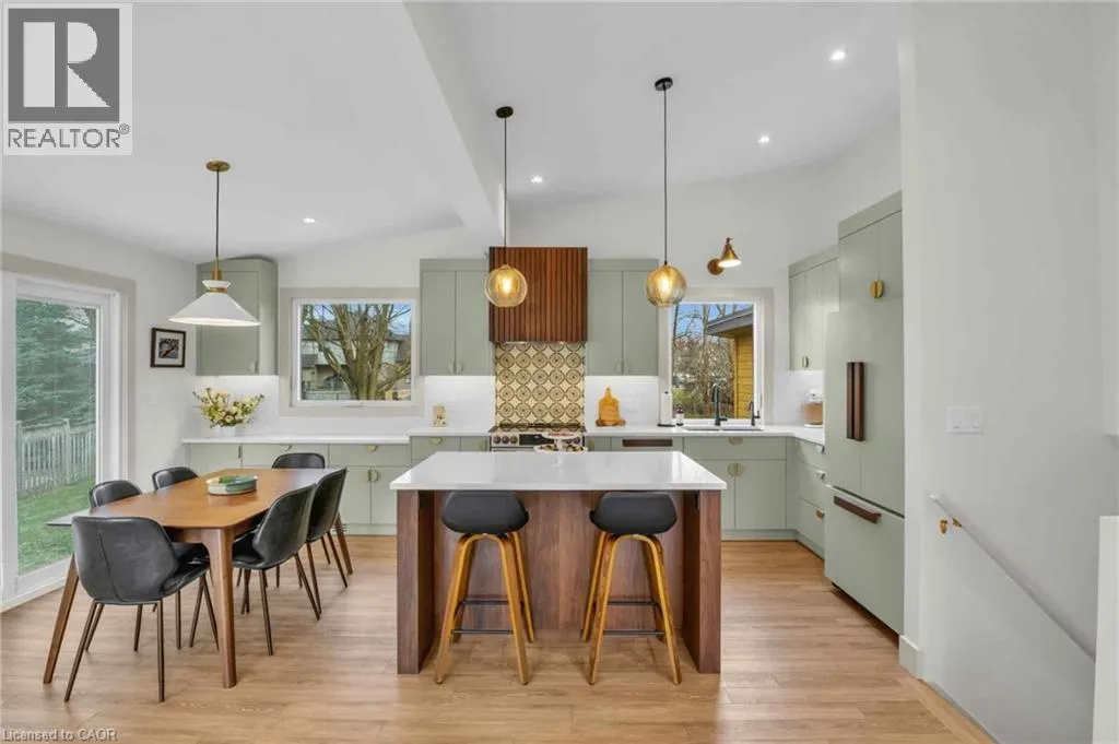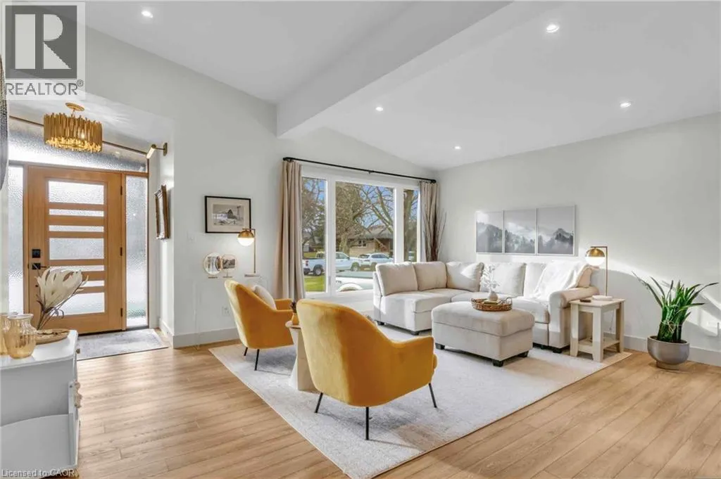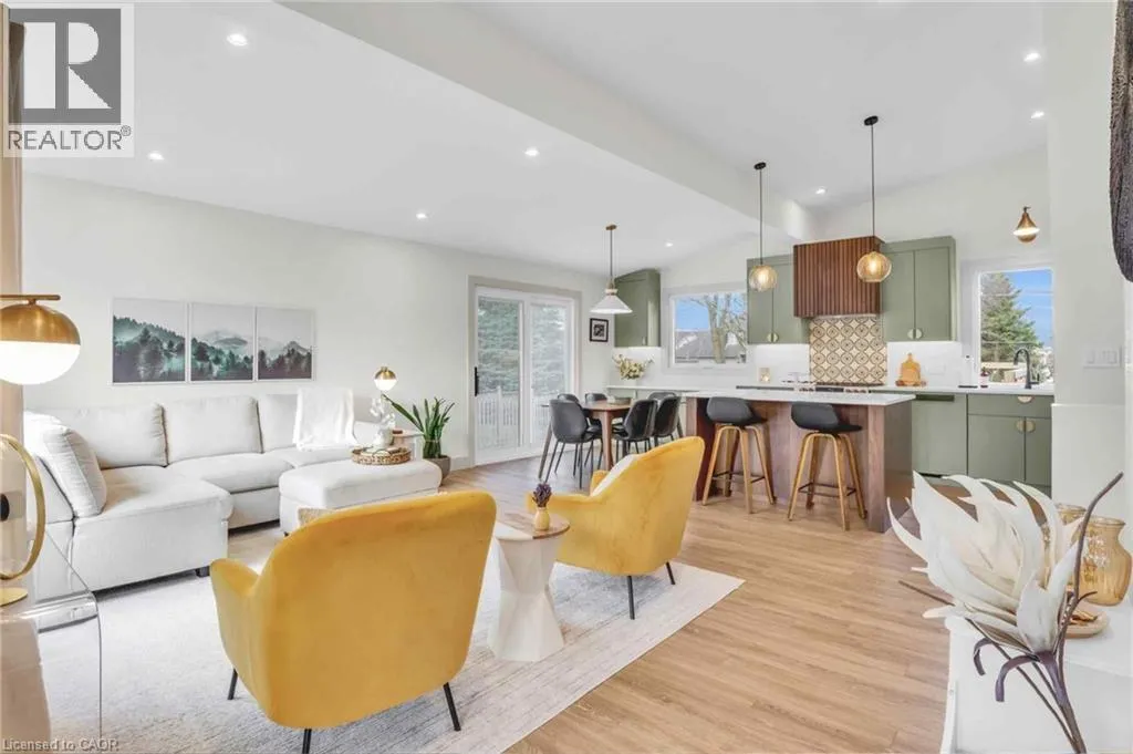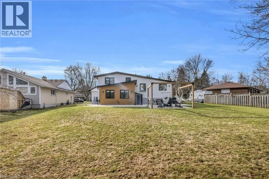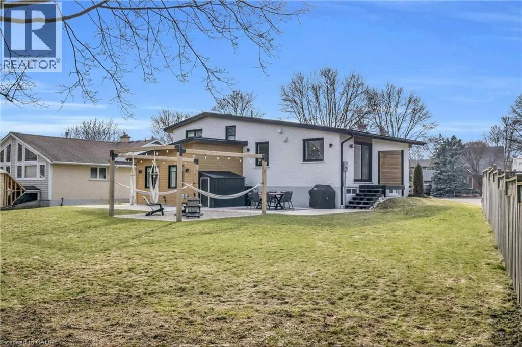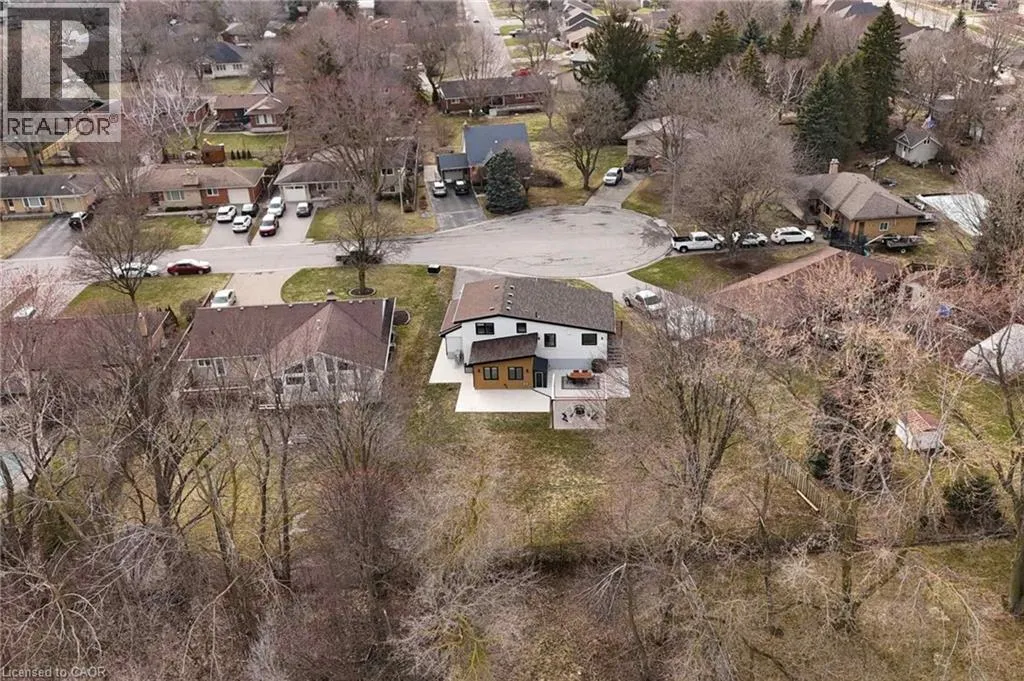 Welcome to 17 Bluebird Place in Elmiraâan extensively renovated home set on a premium oversized lot at the end of a quiet cul-de-sac in a mature, family-friendly neighbourhood. Offering approximately 1,860 sq ft of beautifully finished living space, this 3+1 bedroom, 2 bathroom home blends thoughtful design with modern comfort. Fully renovated in 2024, the home showcases a bright, open interior with all new flooring, trim, doors, lighting, and neutral finishes throughout. The custom chefâs kitchen is a standout, featuring quartz countertops and backsplash, high-end appliances including an induction range with dual oven/air fryer, custom cabinetry with built-in storage solutions, and a large island with integrated outletsâperfect for everyday living and entertaining. The kitchen flows seamlessly into the dining area with a newly added walkout to the backyard. Both bathrooms have been fully updated with premium finishes, including heated floors, custom marble details, and upgraded fixtures. Additional highlights include a spacious recreation room, a newly added laundry room with custom cabinetry, and a versatile studio space with separate entrance, 3-piece bath, and closetâideal as a primary suite, guest space, home office, or flex area. Set on an expansive, private lot partially backing onto mature greenspace, the outdoor space offers exceptional privacy and functionality. Enjoy multiple poured concrete patio areas for a swim spa or hot tub, a pergola with hammocks, firepit area, and a refreshed yard. The driveway accommodates up to five vehicles, and the home features new windows, doors, roofing updates, and upgraded 200 AMP electrical service with EV capability. Conveniently located close to schools, shopping, and everyday amenities, and just a short drive to Waterloo, Kitchener, Guelph, and beyond, this turn-key home is a rare opportunity to own a thoughtfully updated property in a quiet, established neighbourhood. (id:27476)