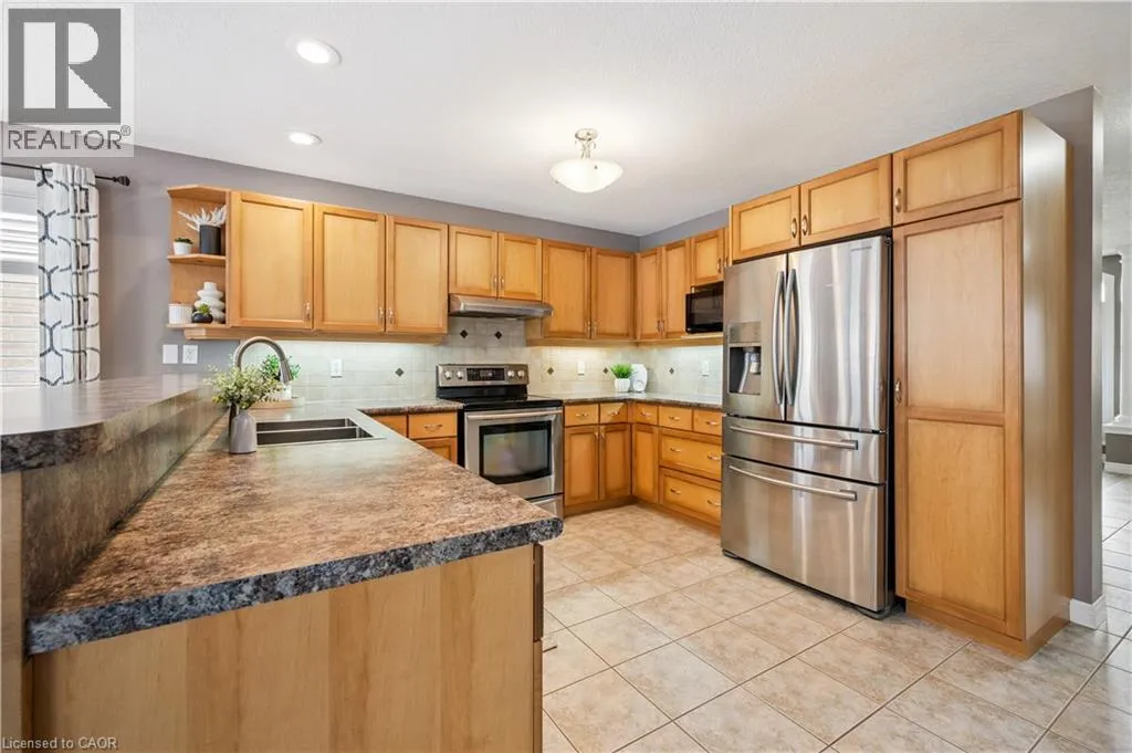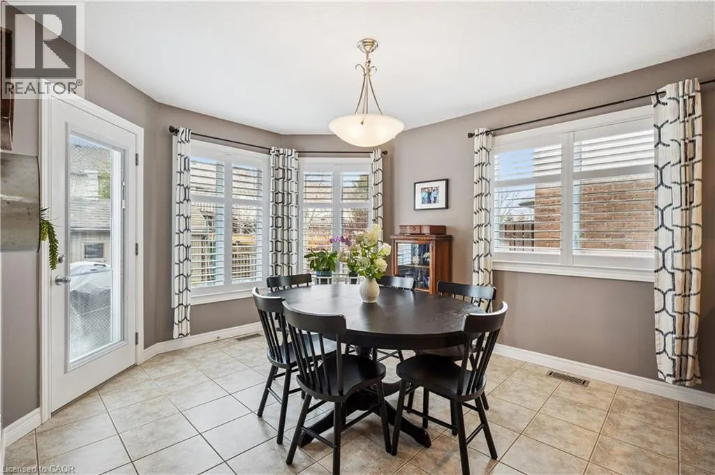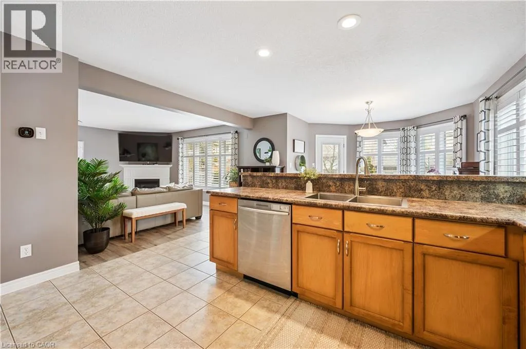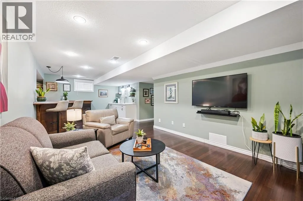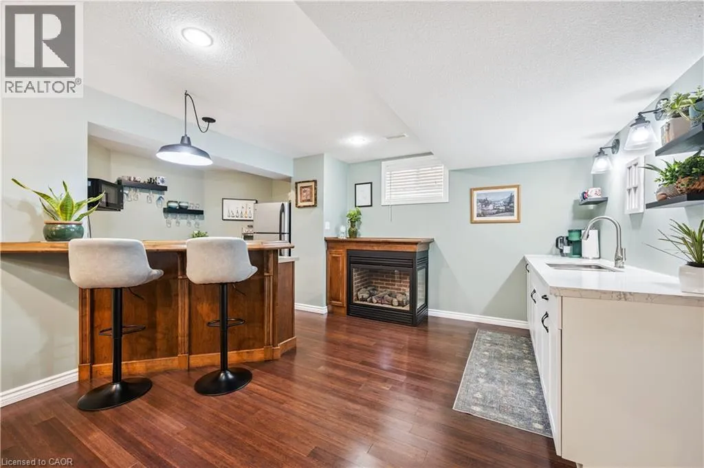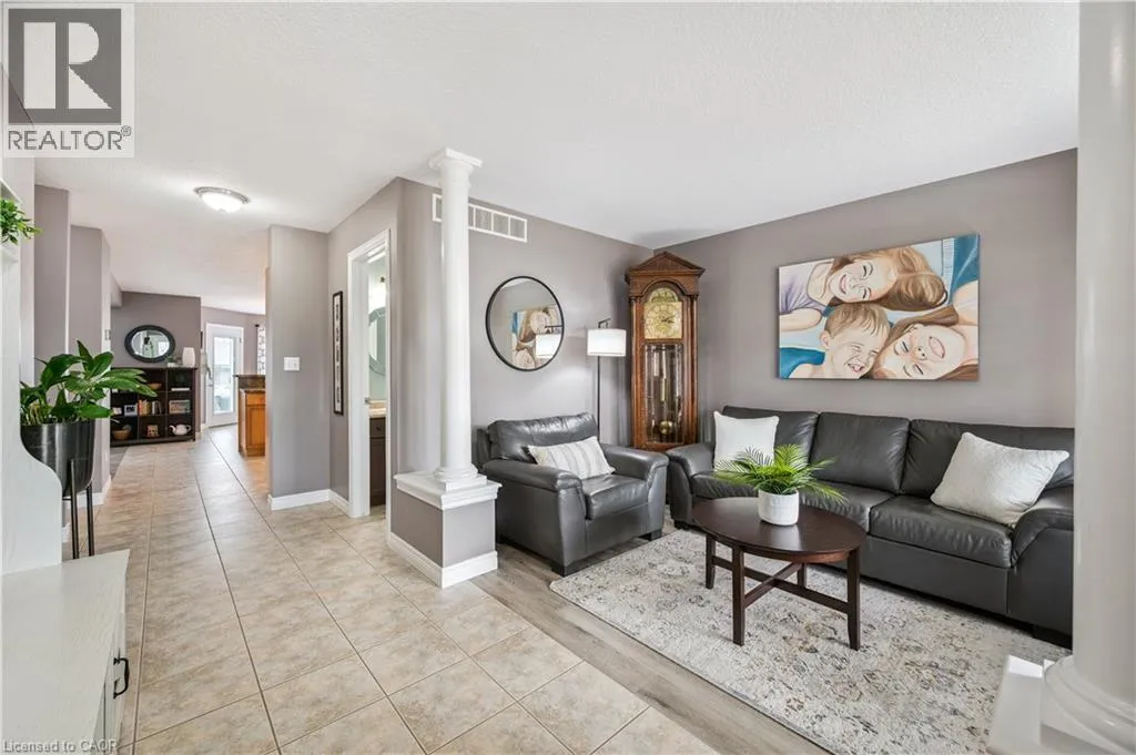 From Waterloo, turn left on First Street, turn left on Muscovey Drive. Welcome to this beautifully maintained, family-friendly home that is truly move-in ready in one of the most desirable areas in Elmira! The open-concept main floor offers exceptional versatility, featuring a bright front living areaâperfect as a home office, playroom, or formal sitting space. The spacious kitchen has ample cabinetry, a convenient breakfast bar, and a large dining area that flows seamlessly into the family room with a gas fireplaceâideal for both everyday living and entertaining. A main floor laundry room and mudroom provide added convenience for busy families, while the 21-foot garage and concrete driveway offer practical and functional benefits. Upstairs, youâll find a generously sized primary bedroom featuring a walk-in closet and a beautifully renovated ensuite with double sinks and a large tiled shower. Two additional spacious bedrooms, a versatile office nook, and a full 4-piece bathroom complete this level. The fully finished basement expands your living space with an extra bedroom, a 3-piece bathroom, and a fantastic rec room complete with a gas fireplace and a stylish wet bar with new cabinetryâperfect for hosting or multigenerational living. Step outside to enjoy the oversized composite deck or unwind on the charming front porch while taking in the sunset. Roof (2020). Cement driveway (2021). Main floor flooring and ensuite (2022). Water Heater (2024). This home truly has it allâdonât miss your chance to make it yours! (id:27476)