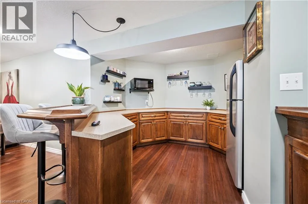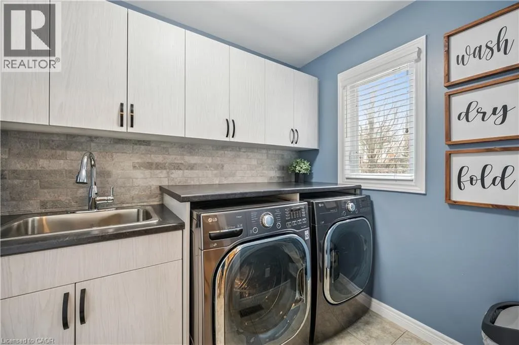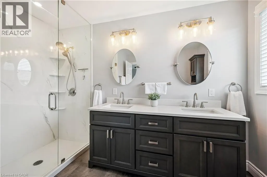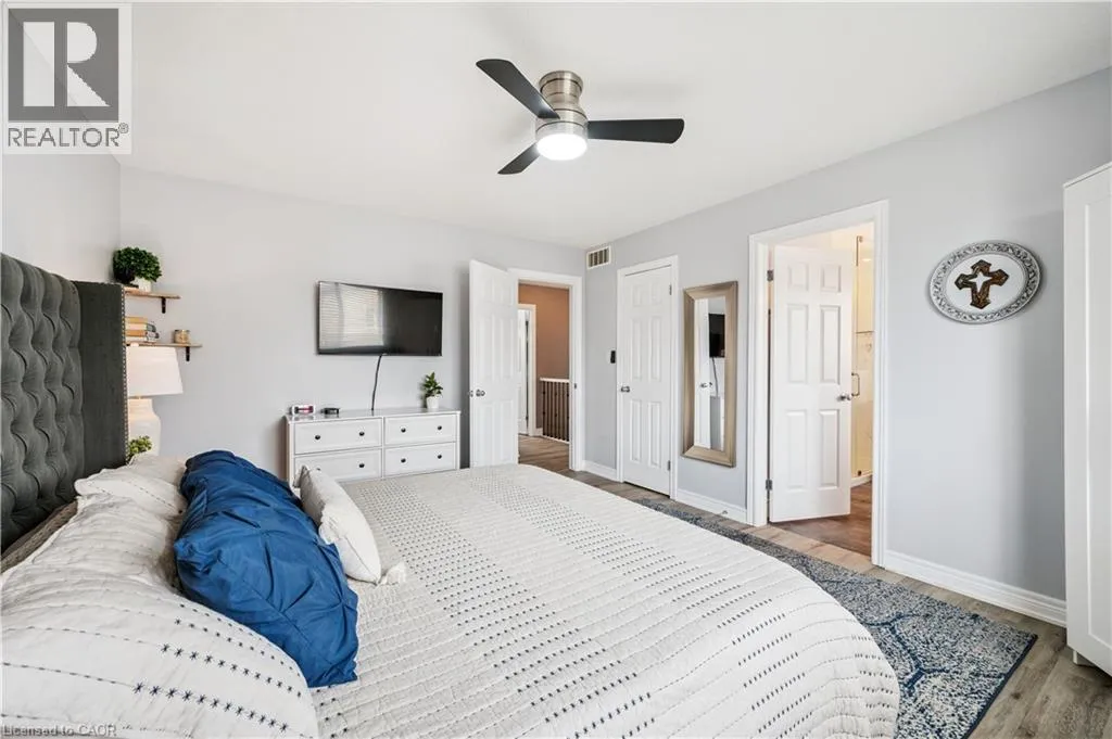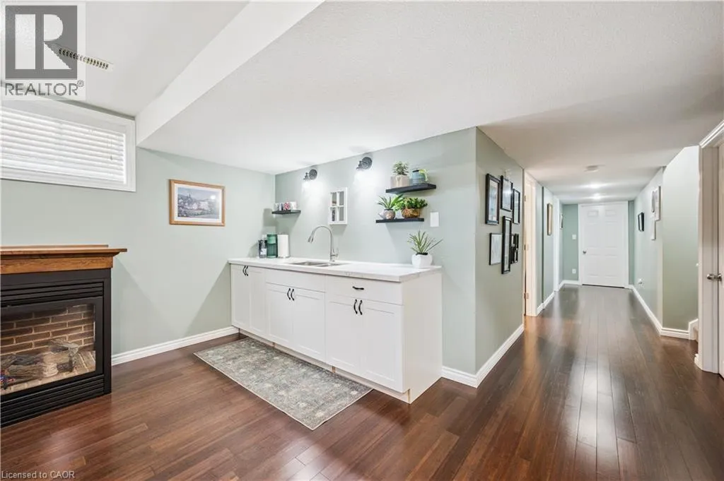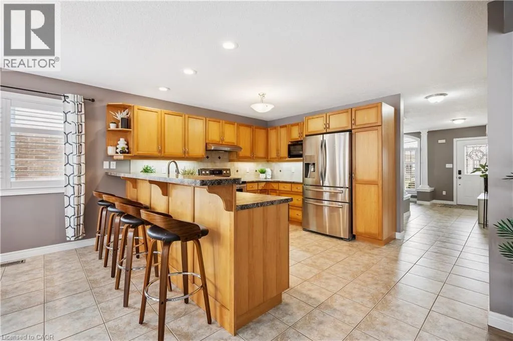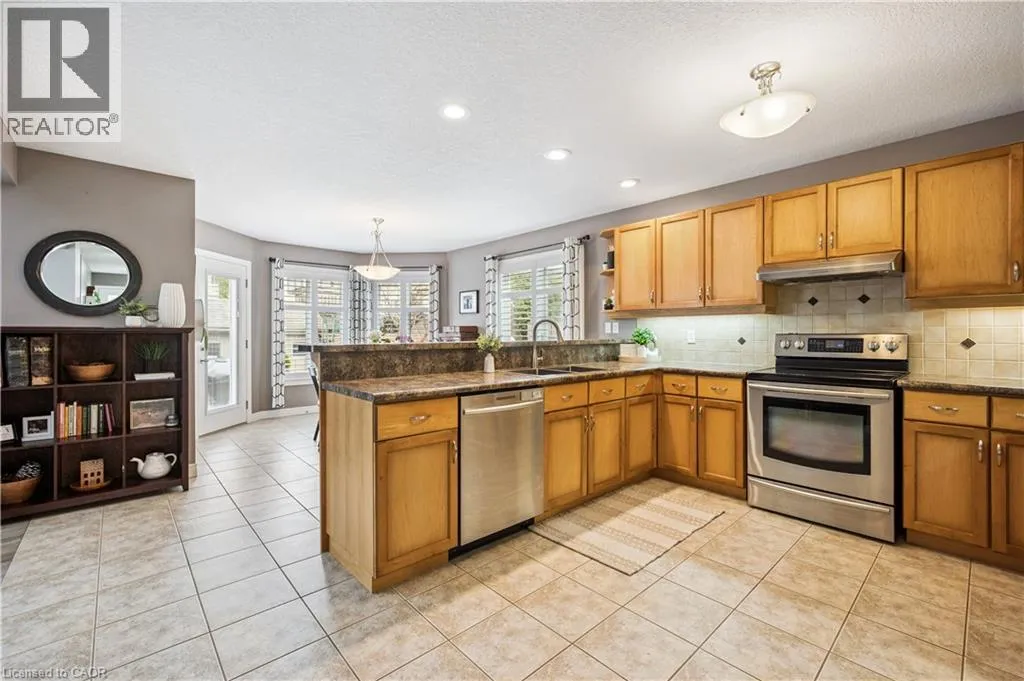 From Waterloo, turn left on First Street, turn left on Muscovey Drive. Welcome to this beautifully maintained, family-friendly home that is truly move-in ready in one of the most desirable areas in Elmira! The open-concept main floor offers exceptional versatility, featuring a bright front living areaâperfect as a home office, playroom, or formal sitting space. The spacious kitchen has ample cabinetry, a convenient breakfast bar, and a large dining area that flows seamlessly into the family room with a gas fireplaceâideal for both everyday living and entertaining. A main floor laundry room and mudroom provide added convenience for busy families, while the 21-foot garage and concrete driveway offer practical and functional benefits. Upstairs, youâll find a generously sized primary bedroom featuring a walk-in closet and a beautifully renovated ensuite with double sinks and a large tiled shower. Two additional spacious bedrooms, a versatile office nook, and a full 4-piece bathroom complete this level. The fully finished basement expands your living space with an extra bedroom, a 3-piece bathroom, and a fantastic rec room complete with a gas fireplace and a stylish wet bar with new cabinetryâperfect for hosting or multigenerational living. Step outside to enjoy the oversized composite deck or unwind on the charming front porch while taking in the sunset. Roof (2020). Cement driveway (2021). Main floor flooring and ensuite (2022). Water Heater (2024). This home truly has it allâdonât miss your chance to make it yours! (id:27476)