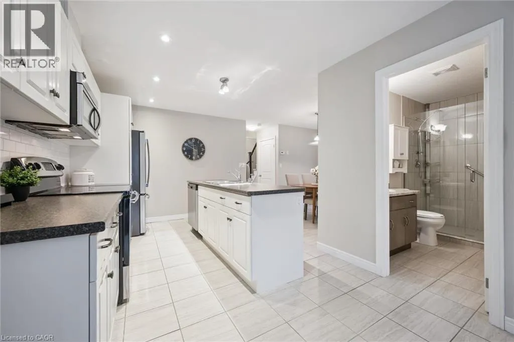 Heading out of Elmira on Church St, turn right on Kissing Bridge Dr, turn left on 2nd Finoro Cr and house is on left. Discover this exceptional semi-detached home that effortlessly combines timeless charm with modern practicality. The upper level boasts a spacious primary bedroom, a loft area bedroom, and a luxurious 4-piece bathroom complete with heated flooring. The convenience of laundry facilities located on the second floor enhances the ease of daily living. On the main floor you'll find an open-concept layout, a modern kitchen equipped with a large island, a generously sized living room accentuated by a vaulted ceiling, and a convenient sliding door that opens up to the backyard. A welcoming dinette area offers a perfect setting for entertaining guests, while a well-appointed 3-piece bathroom adds to the functionality of the main floor. Additionally, the living room includes a closet that presents the opportunity for potential conversion into a main floor bedroom, catering to those seeking single-story living. Step outside to your thoughtfully landscaped backyard, with a gorgeous meticulously designed deck. A single-car garage with inside access further elevates the convenience and utility of this exceptional home. This home is a rare find combining style, comfort, and flexibility. (id:27476)