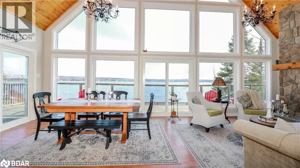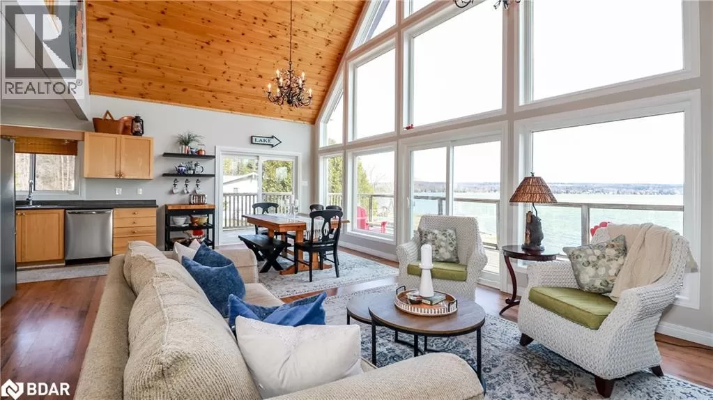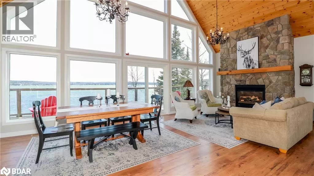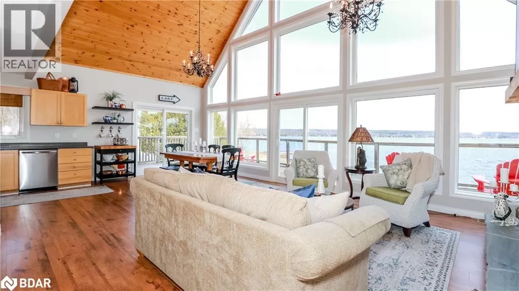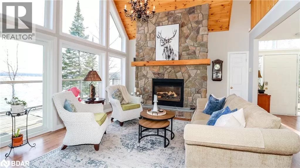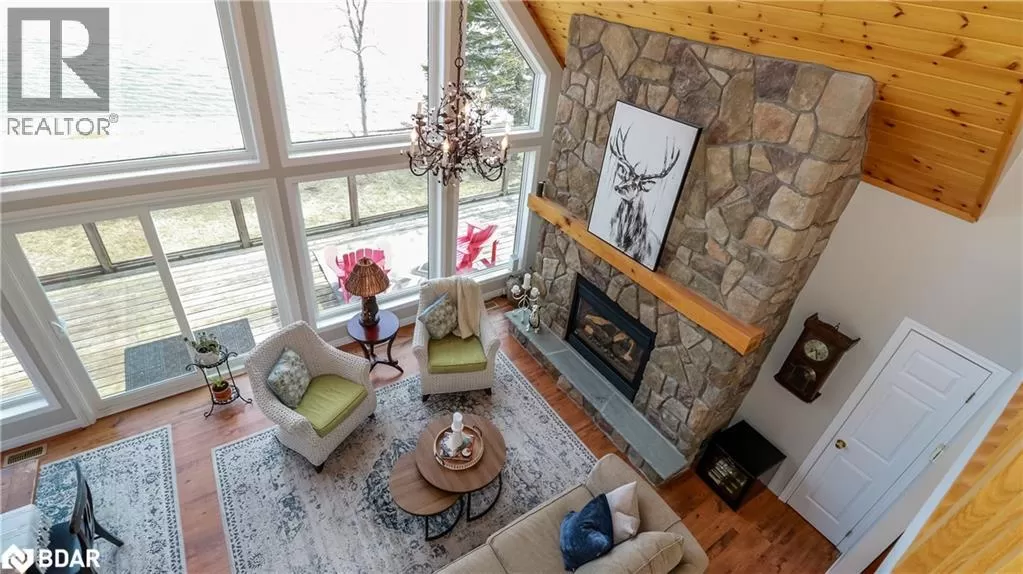 Take Hwy 400 North to Hwy 93. Left on South Orr Lake Rd. to Sandy Bend. Right on Sandy Bend to 3093, Sign on. Your private sanctuary on the shores of beautiful Orr Lake awaits! This turn-key 3+1 bedroom raised bungaloft offers 122' of prime waterfront on a flat, level 0.56-acre lot, perfect for swimming, paddle boarding, or simply relaxing in the sandy, shallow water. Inside, youâll be captivated by the wall of windows framing breathtaking lake views, flooding the home with natural light. The spacious eat-in kitchen features a walk-out to the deck and boasts all new stainless-steel appliances (2023). Cozy up around one of two fireplaces, located on the main and lower levels. This thoughtfully designed home offers three full bathrooms, a fully finished walk-out lower level, and a versatile loft space. Recent upgrades ensure peace of mind, including a new fully-wired generator (2024), roof (2019), and all new windows and four sliding doors with enhanced security locks (2024). Tucked away on a quiet dead-end road, this exceptional property offers unmatched privacy and tranquility, making it the ideal year-round residence or weekend escape. Whether you're entertaining guests or enjoying quiet mornings by the water, your home is ready to impress. Donât miss this rare opportunity to own turn-key waterfront living in a serene natural setting. (id:27476)