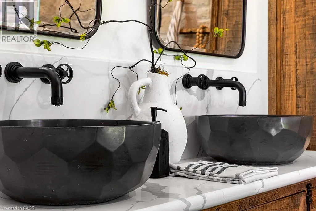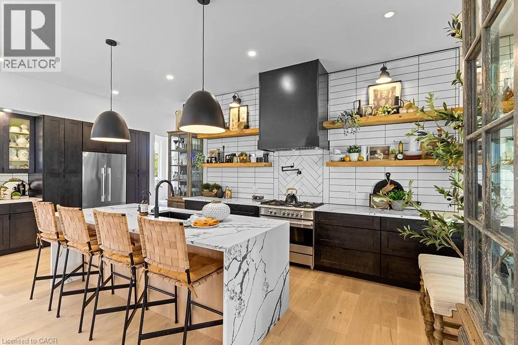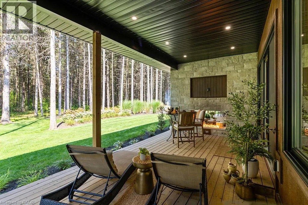 Concession Rd 10 / Lemko Rd / Louise Creek Cres Welcome to 107 Louise Creek Crescent, a stunning 5-bedroom plus den, 5-bathroom bungalow perfectly situated on a quiet, tree-lined street in Elmwood. This custom residence showcases a captivating wood and Shouldice designer stone exterior, blending timeless elegance with modern design. Inside, you'll find wide plank hardwood floors, soaring 10 ft ceilings on the main level, and 8 ft doors that create a sense of space and luxury throughout. The open-concept kitchen, living, and dining area is ideal for both everyday living and entertaining, featuring top-of-the-line appliances and abundant natural light. Step outside to your own private treed oasis, where a covered back porch with a stone wall and double-sided fireplace creates the ultimate atmosphere for year-round enjoyment. The spacious primary suite offers a luxurious ensuite retreat complete with heated floors, while all additional bedrooms are generously sized to accommodate the whole family. An oversized heated 3-car garage with direct stairs to the lower level adds unmatched convenience and functionality. Conveniently located steps from Boyd Lake and scenic walking trails, with school bus route access, this home is the perfect blend of comfort, style, and practicality. (id:27476)