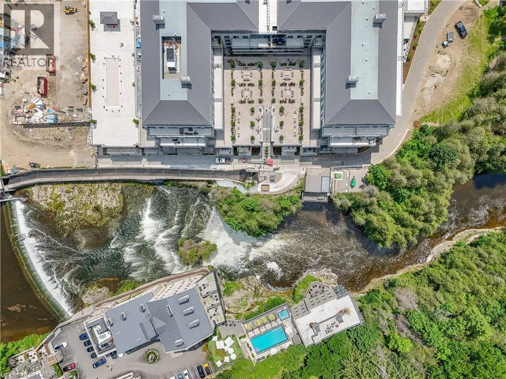 Wellington Rd 7 and Victoria St This unique 2 bedroom plus den, 3 bath suite is an expansive 2,330 sq ft Custom Residence. Perfectly designed with a traditional home layout, its ideal for downsizers transitioning to condo living offering plenty of space and the ability to keep your large furniture. The open concept layout includes 10' ceilings and features a spacious kitchen with a large island with seating for four, and a rare walk-in pantry. A walkout leads to a private patio, perfect for outdoor dining and relaxation. The generous dining room accommodates a large table and is surrounded by windows with views of lush greenery. The open living room, with a cozy gas fireplace, offers space for multiple seating areas. Wall-to-wall windows frame stunning views of the Elora Gorge, the Elora Mills stonework, and Tranquil River views. Retreat to one of two expansive primary suites, each with walk-in closets, ensuite bathrooms, and walkouts to a private balcony overlooking the river. Fall asleep to the soothing sounds of flowing water. Additional features include a versatile den ideal for an office, TV room, or guest room plus three bathrooms and a large laundry room. Located on the riverside trail level, this suite offers easy access for pet owners to walk along the scenic trail. As a resident of the Luxurious Elora Mill Residences, you'll enjoy premium amenities such as a Concierge, Lobby coffee bar with daily fresh pastries from the Elora Mill, a furnished Outdoor Terrace overlooking the river, Lounge, Party room, Gym, Yoga studio, and an Outdoor Pool with spectacular river views!!!! (id:27476)
