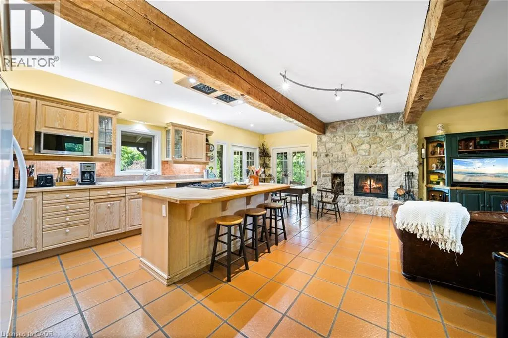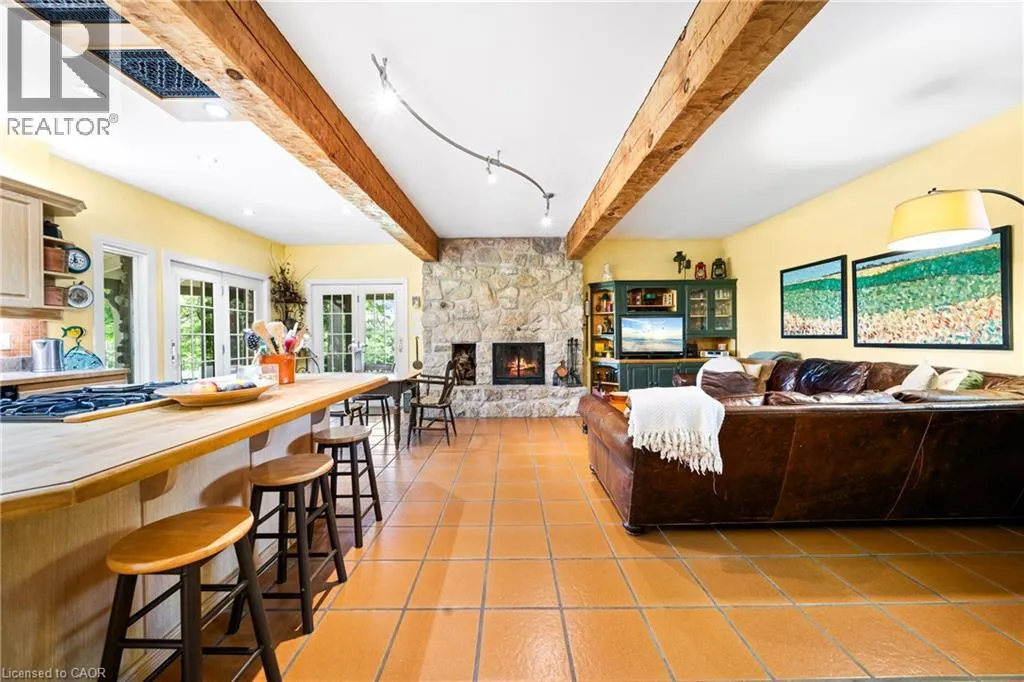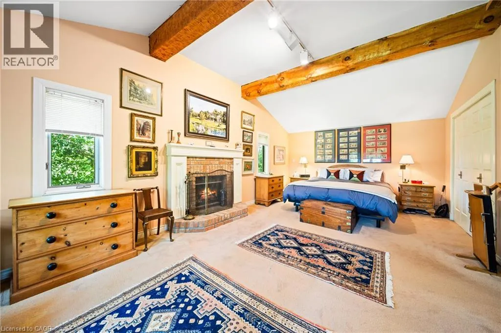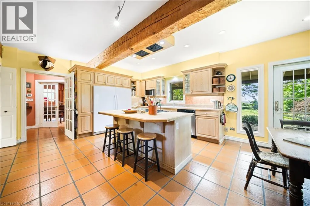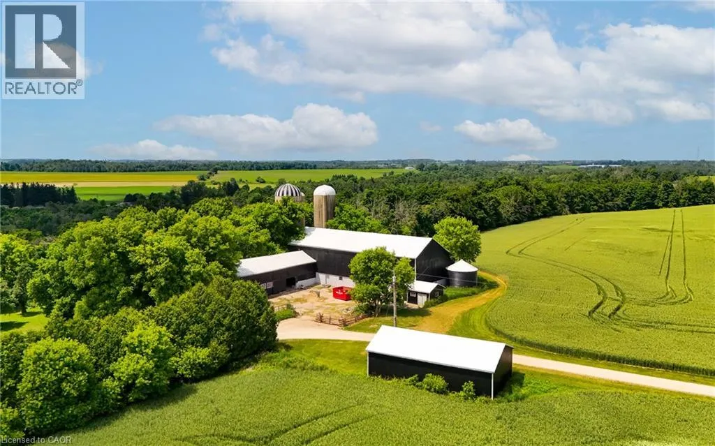 Follow Wellington Road 21 heading east. Continue past Elements Casino and the entrance to Elora Gorge. The property will be on the right-hand side. For the first time in over 35 years, a truly exceptional opportunity presents itself: 98 acres of diverse, breathtaking land located just outside the picturesque village of Elora. This truly one-of-a-kind property combines 68 acres of productive farmland with 28 acres of unspoiled natural landscape, including over 2,300 ft of road frontage and over 2,700 ft of water frontage on the Grand River. Private trails wind through the woods down to and along the banks of the Grand River, perfect for peaceful walks or immersive nature experiences. Only minutes away, the Elora Conservation Area offers even more ways to enjoy the area's stunning landscapes and outdoor adventures. At the heart of the property stands a charming 4-bedroom post-and-beam farmhouse, originally built in the 1850s. Thoughtfully updated over the years, the home balances timeless character with modern comfort. The residence is set well back from the road, ensuring complete privacy. Additional features include a bank barn (50' x 100'), storage barn (attached to bank barn, 25' x 70'), detached triple car garage/shop (30' x 50'), storage barn (30' x 50'), and milk shed (15' x 17'). Steps from the covered porch of the main house is a tranquil swimming pond, including a sandy beach area and patio, perfect for summer afternoons or evening sunsets. Whether you're looking to build your dream estate, or simply enjoy one of Ontarioâs most scenic properties, donât miss this once-in-a-lifetime opportunity. (id:27476)