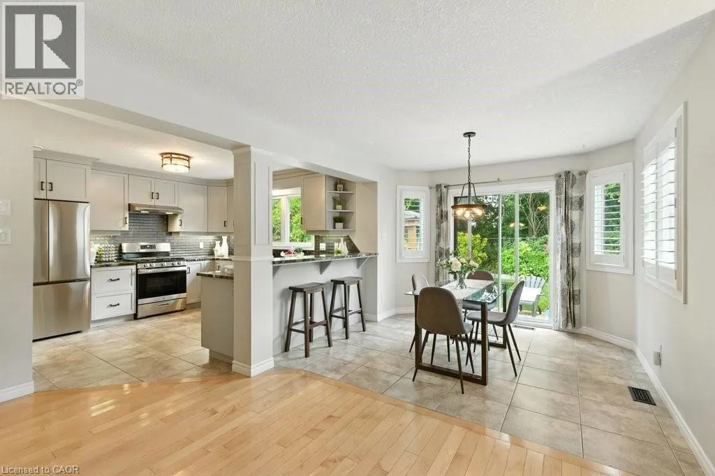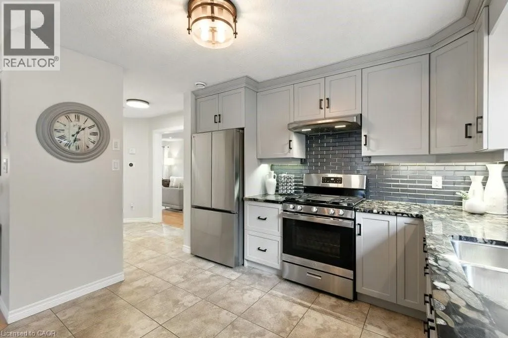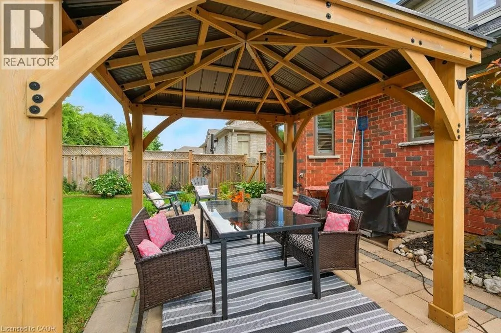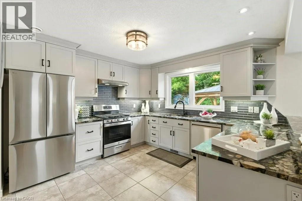 Off 1st Line Welcome to 120 Spencer Dr. This property is perfect for a growing family, it offers 4+1 bedrooms, 4 baths and finished from top to bottom. A Private Retreat Surrounded by Nature. Tucked away in a desirable neighbourhood, this two-story detached home backs onto scenic walking trails and close a park, offering privacy with convenience. Tall trees, colourful gardens, and professional landscaping create a peaceful setting perfect for families who love both indoor comfort and outdoor living. The Exterior offers: A double driveway and double car garage with entry to main floor. The backyard is a true retreat - a gazebo and lush perennial gardens - ideal for entertaining or enjoying quiet evenings outdoors. The Main Floor Highlights: Step into a spacious foyer leading to an open-concept living and dining room with hardwood floors. The modern kitchen boasts high-quality riverbed granite countertops, a raised breakfast bar, and a bright breakfast area with walkout to the backyard. The kitchen flows into the family room with a cozy fireplace. A guest bath, laundry room and plenty of natural light complete the main level. The modern staircase leads to the second level with the primary suite is a private escape with its own fireplace, massive walk-in closet, and spa-like ensuite with soaker tub, glass shower, double vanity, and private water closet. Three additional bedrooms include built-in closets and share a well-appointed main bathroom.The lower level - Finished Basement adds versatile living space with a large rec room, guest bedroom or in-law suite, and a full 3-piece bath. Thereâs room for a home office, workout area, or playroom, plus ample storage. This property blends space, privacy, and modern living in a family-friendly location. Whether gathering by the fireplace, entertaining in the backyard, or enjoying quiet walks on nearby trails, 120 Spencer Drive is a home to truly enjoy. Close to Fergus and Guelph amenities, schools, shopping, and transit. (id:27476)