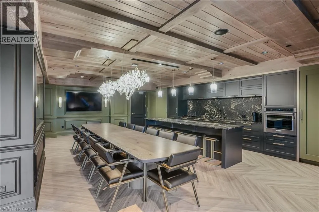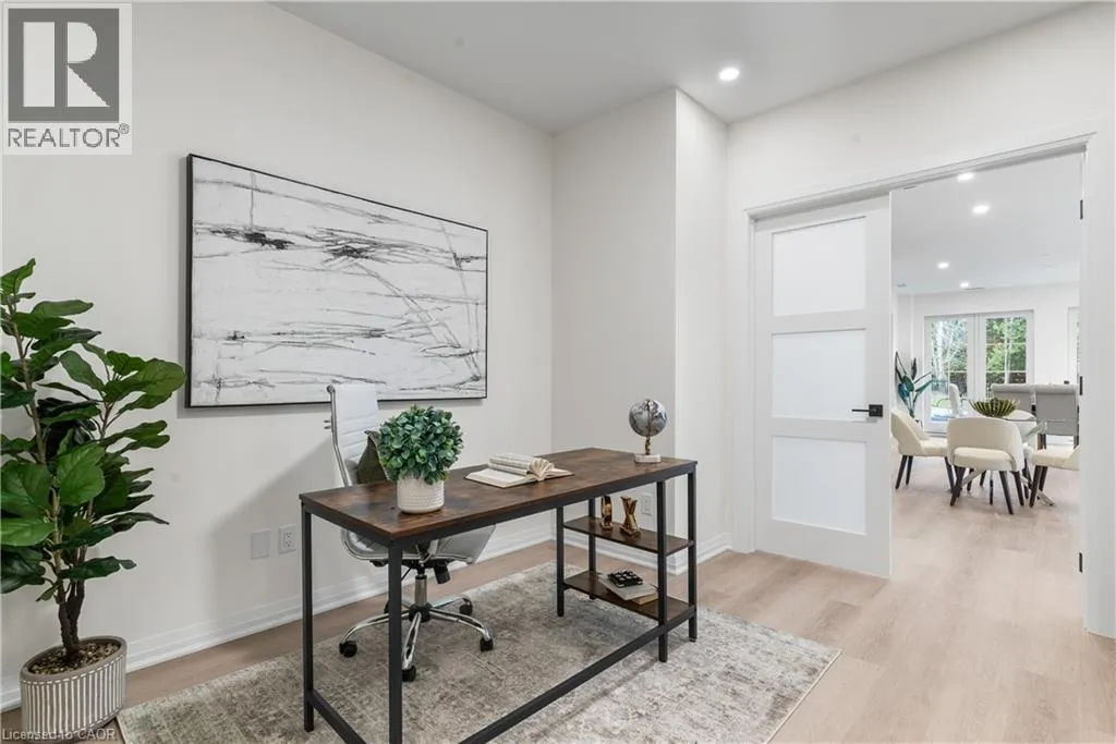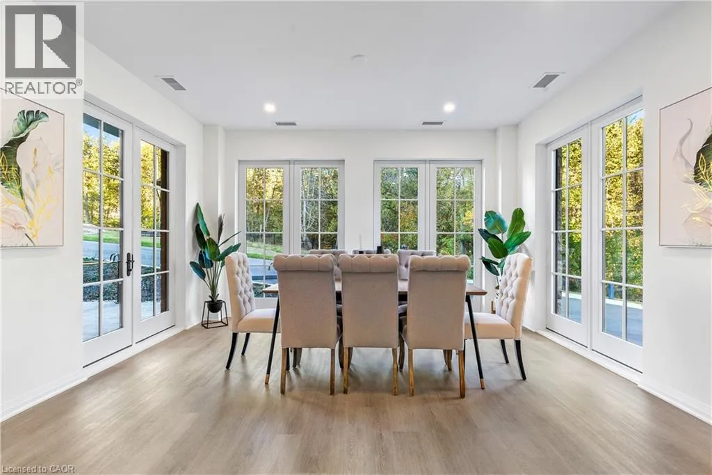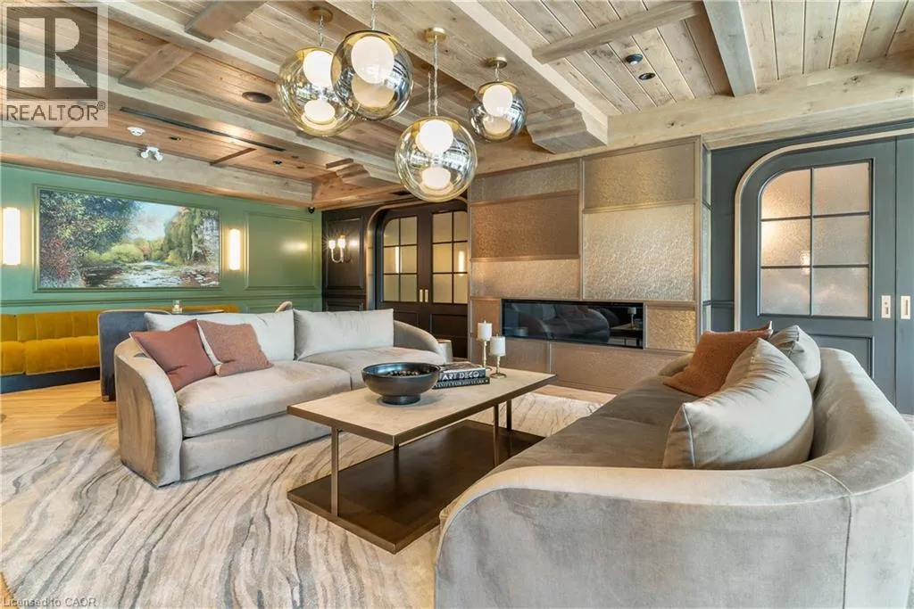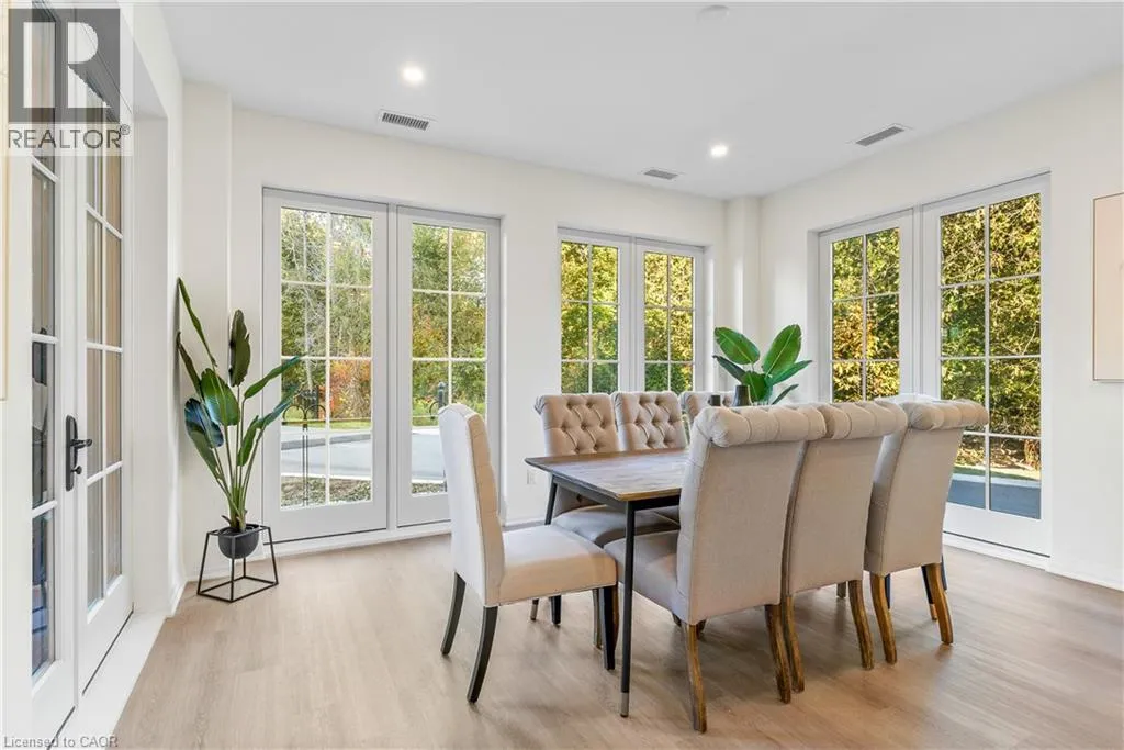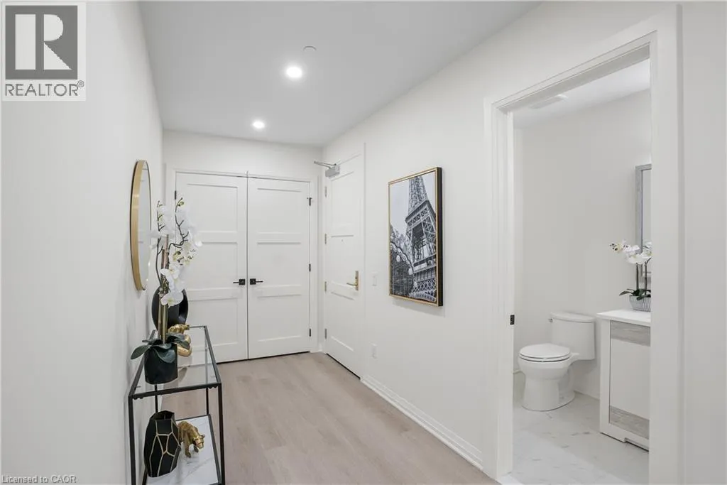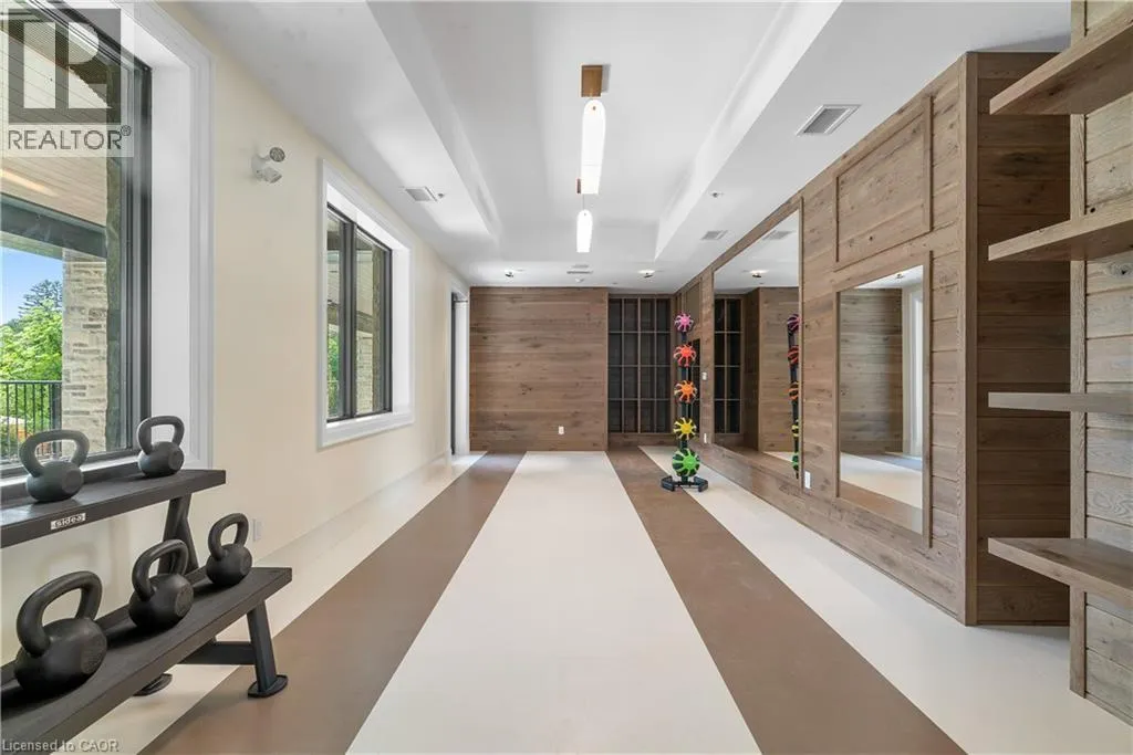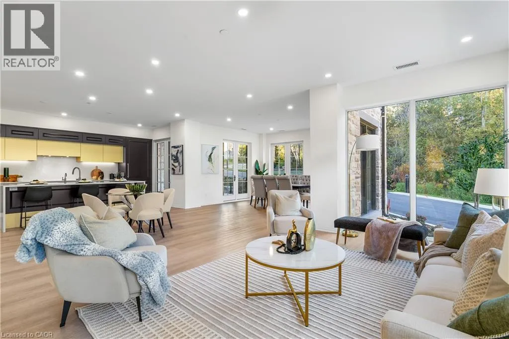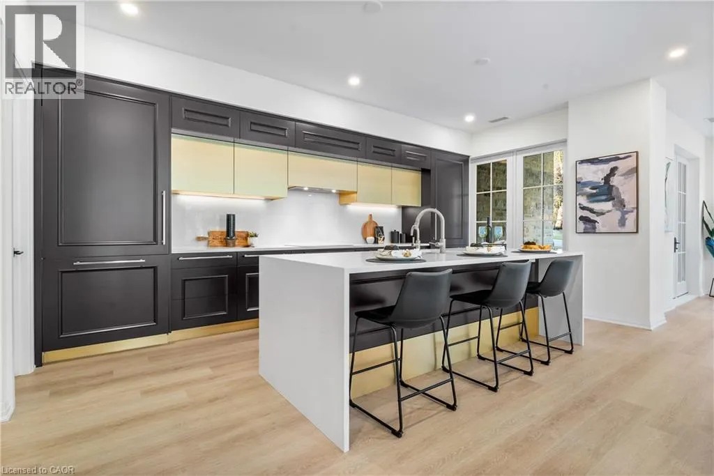 Wellington Rd 7 and Victoria St This one of a kind 2 bedroom plus den, 3 bath suite is an expansive 2,330 sq ft Custom Residence. Perfectly designed with a traditional home layout, its ideal for downsizers transitioning to condo living offering plenty of space and the ability to keep your large furniture. The open concept layout includes 10' ceilings and features a spacious kitchen with a large island with seating for four, and a rare walk-in pantry. A walkout leads to a private patio, perfect for outdoor dining and relaxation. The generous dining room accommodates a large table and is surrounded by windows with views of lush greenery. The open living room, with a cozy gas fireplace, offers space for multiple seating areas. Wall-to-wall windows frame stunning views of the Elora Gorge, the Elora Mills stonework, and Tranquil River views. Retreat to one of two expansive primary suites, each with walk-in closets, ensuite bathrooms, and walkouts to a private balcony overlooking the river. Fall asleep to the soothing sounds of flowing water. A versatile den is ideal for an office, TV room, or guest room. Additional highlights include being the only residence in the building with large laundry room complete with cabinetry and sink, gas fireplace, indoor parking with EV charger, and a storage locker just steps from the front door. Located on the highly desirable riverside trail level, this unit is especially appealing to pet owners and those who value the option of having direct access without reliance on an elevator. Just steps from Elora's top restaurants, shops and cafes, residents also enjoy resort style amenities including a Concierge, Lobby Coffee Bar with daily fresh pastries, Furnished Outdoor terrace, Elegant Lounge and Party Room, Fitness Center, Yoga Studio and Outdoor Pool with Spectacular River Views!! (id:27476)