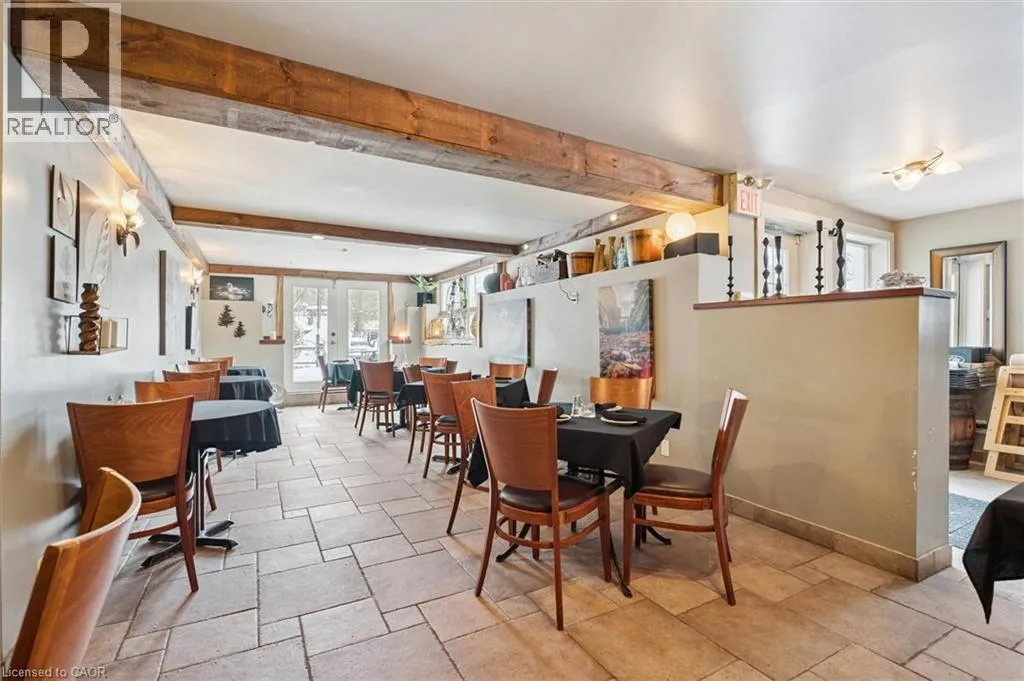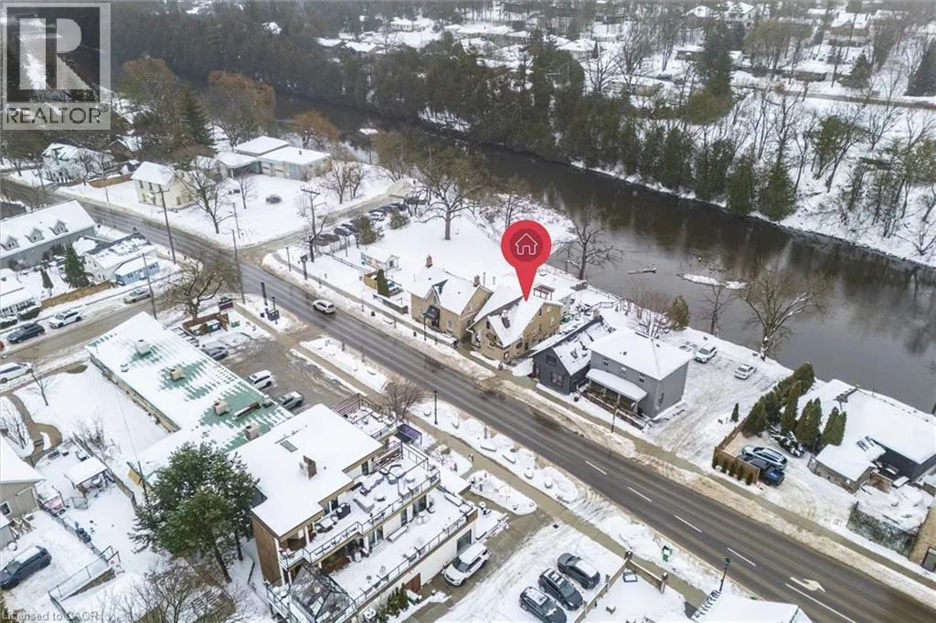 Cross the bridge on Geddes St and turn right on Mill St. Property is on the right. Iconic Mixed-Use Investment Opportunity in Downtown Elora A rare chance to own a landmark stone building in the heart of highly sought-after downtown Elora. This exceptional property features two residential income units, a successful, established restaurant, and an additional storefront commercial unit, making it a truly diversified and tremendous portfolio opportunity. Meticulously updated and renovated to the highest standards, the building showcases timeless stone craftsmanship while offering modern systems, finishes, and functionality throughout. The restaurant includes a full-service patio overlooking the Grand River, delivering an unmatched dining experience and strong draw for locals and visitors alike. Positioned in a high-traffic location, surrounded by boutiques, tourism, and year-round foot traffic, this property benefits from Eloraâs vibrant downtown energy and enduring demand. Whether youâre an investor seeking stable income, a business owner looking for a signature location, or a portfolio builder targeting premier assets, this is a once-in-a-generation opportunity in one of Ontarioâs most desirable small towns. Downtown Elora. Iconic setting. Proven income. Exceptional upside. (id:27476)