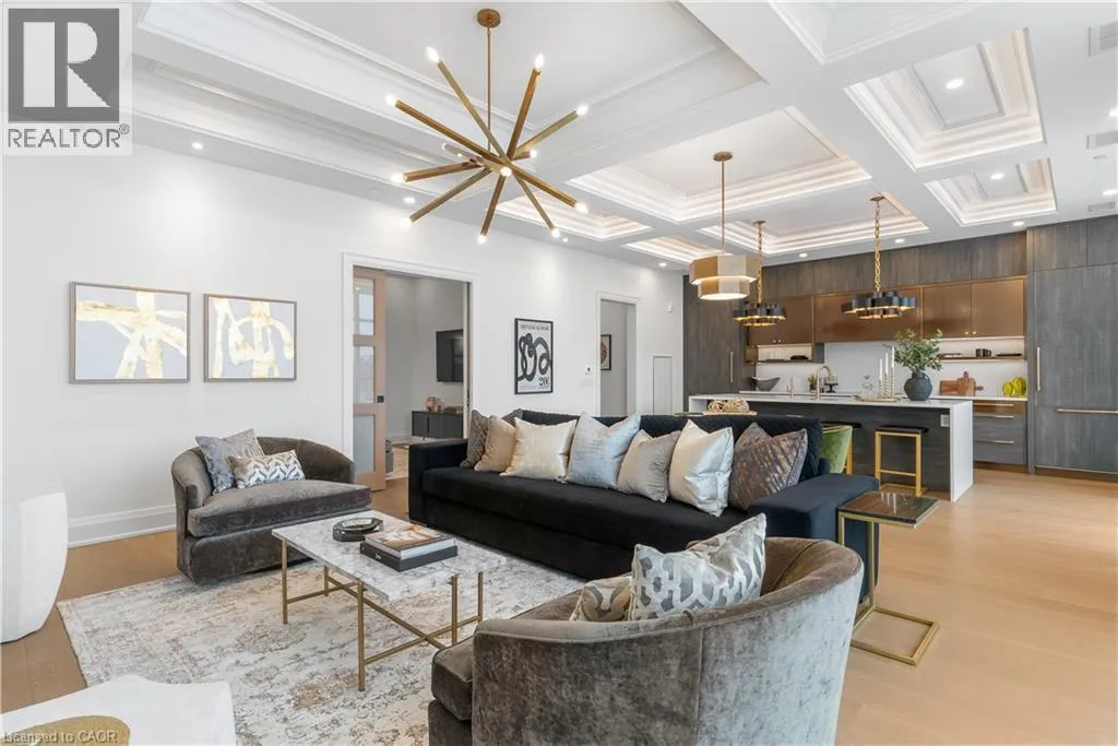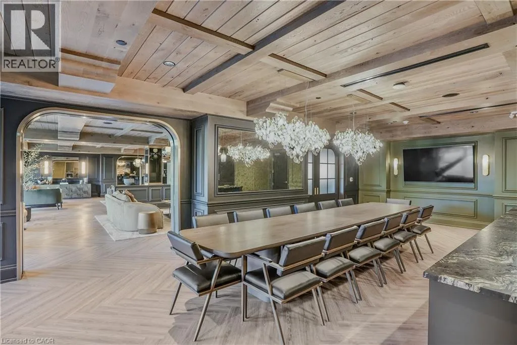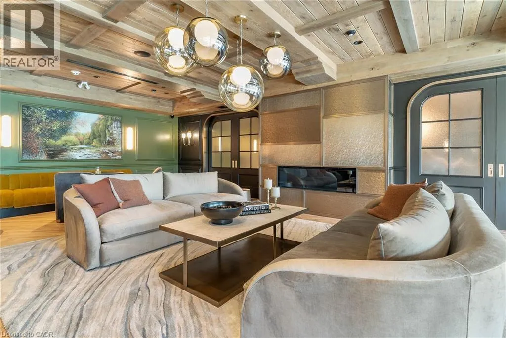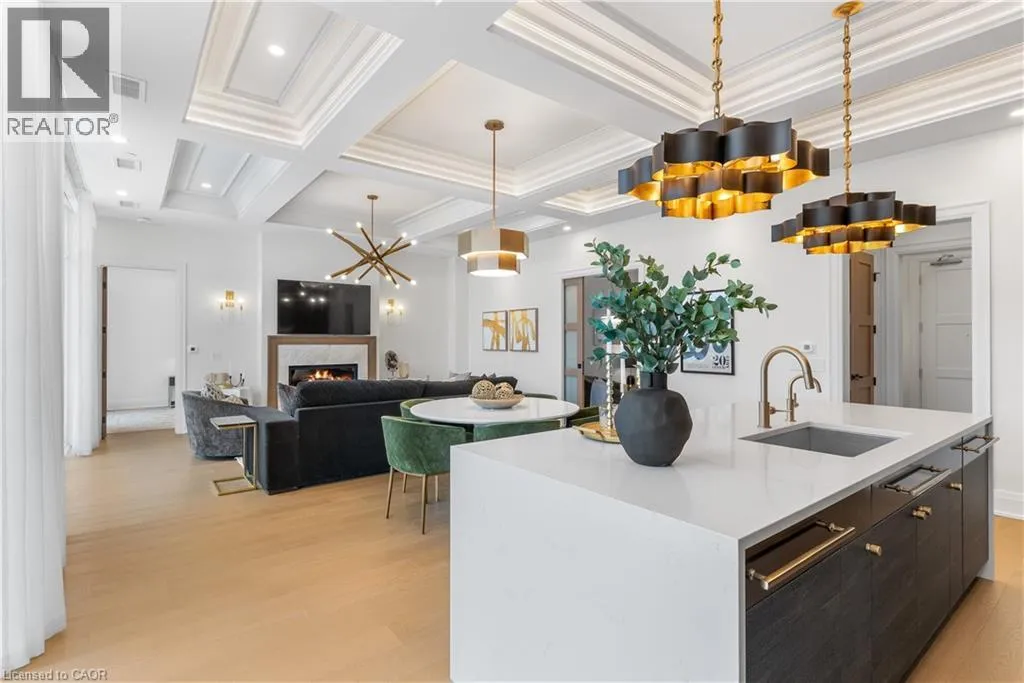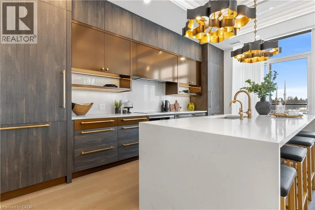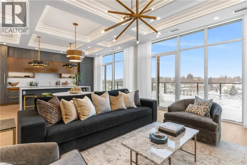 Wellington Rd 7 and Victoria St Experience elevated living at its finest in The Mill Penthouse! Set within the coveted Elora Mill Residences, this penthouse redefines luxury with soaring 10-foot ceilings, designer lighting, and curated finishes throughout. A gas fireplace adds warmth and sophistication to the open-concept living space, while the expansive private terrace, boasting over 650 sq. ft., offers a built-in gas line perfect for a custom outdoor kitchen, grill, or fireplace. Glass railings reveal panoramic, unobstructed views of the Elora River and its iconic bridges, with four separate walkouts creating seamless indoor-outdoor living. At the heart of the home, the chef-inspired kitchen impresses with a grand island with seating, full-height cabinetry, and upgraded Miele appliances. The open living and dining areas provide flexibility to design your perfect entertaining space, while a private den with sliding doors is ideal as a home office, media room, or formal dining area. The primary suite is a tranquil retreat, complete with a custom walk-in closet and a spa-like ensuite featuring a deep soaker tub, oversized glass shower, double vanity, and private water closet. A second bedroom, in its own private wing with a dedicated full bathroom, is perfect for guests or family. Residents enjoy exclusive access to resort-style amenities including a concierge, lobby coffee bar, residents' lounge, formal dining room, outdoor furnished riverfront terrace with firepits, and an outdoor pool with spectacular river views. Just steps from Elora's gourmet restaurants, boutique shops, and charming cafés, you'll enjoy living in this picturesque, walkable community. Complete with fully automated blinds, two parking spaces, and a storage locker, an opportunity to own a penthouse suite at one of Elora's most prestigious and sought-after addresses. (id:27476)