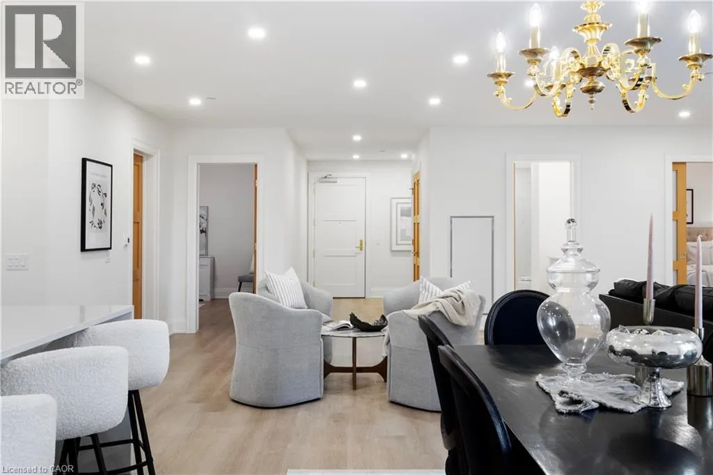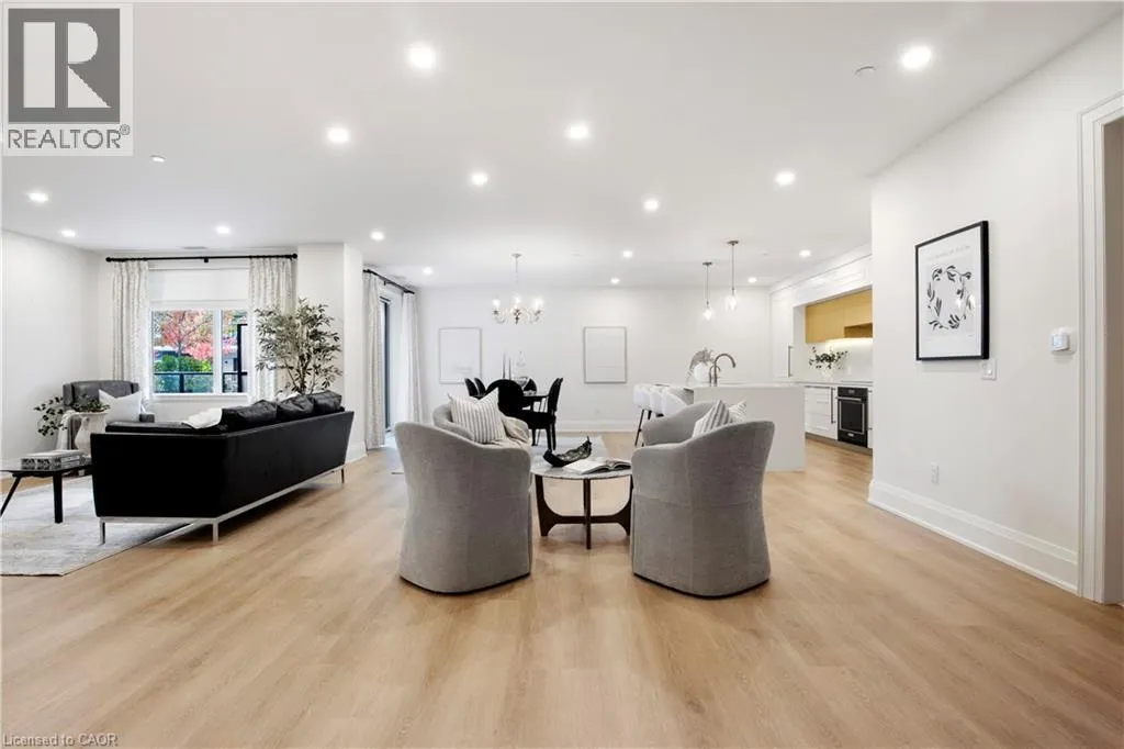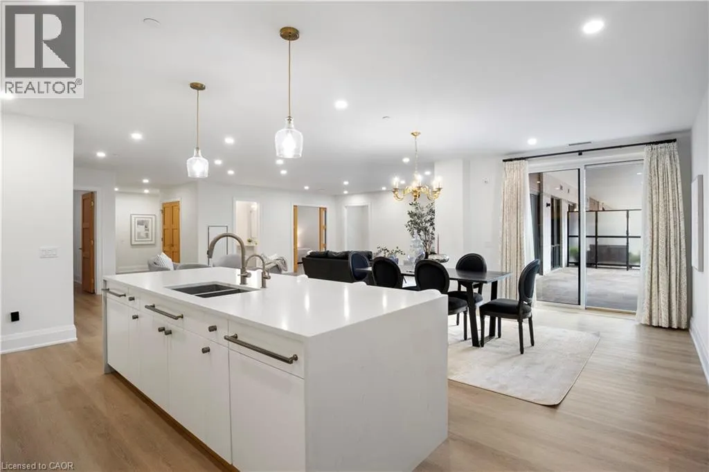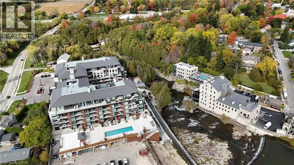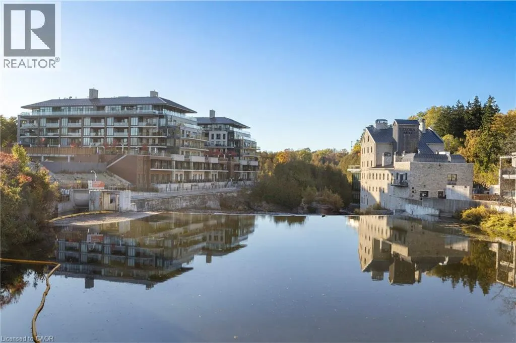 Wellington Rd 7 and Victoria This Luxury suite was designed for those looking to downsize without compromise. 2,098 Sqft of thoughtfully designed living space, this stunning first-floor residence combines the ease of Condo Living with the space and comfort of a Detached Home. This open concept layout has incredible flexibility, allowing you to tailor the space to suit your needs. The expansive dining area comfortably accommodates a full sized dining table, perfect for hosting dinner parties or cherished family gatherings, with room to bring your heirloom set. The living room is ideal for entertaining or relaxing with multiple seating areas and direct access to a sprawling 247 sqft Terrace, perfect for outdoor dining or enjoying your morning coffee. The designer kitchen, complete with an oversized island, with seamless integration into the living and dining areas. Tucked away the primary suite is a true retreat, accessed by a separate hallway and features a spa-inspired ensuite bath and generous walk-in closets. A second spacious bedroom, ideal for family or guests with a large closet & the 3rd bonus room provides added versatility, easily used as a home office, media room or even a 3rd bedroom for visitors. The full-size laundry room offers additional storage and convenience. Located on the ground floor, this suite offers direct views of the Terrace and across the river to the Elora Mill. Perfect for pet owners or those who prefer to avoid elevators. Start your mornings with a short stroll to the resident lounge to enjoy coffee and fresh pastries from the Elora Mill. This suite includes one underground parking space, a locker, and offers access to resort-style amenities: Fitness centre, Yoga studio, Lounge and Lobby Coffee Bar, Outdoor Terrace, and a Pool with Spectacular River Views!! Experience refined living in one of Ontario's most charming and walkable communities. Just steps away from award winning restaurants, artisan shops, cafes and the natural beauty of Elora. (id:27476)