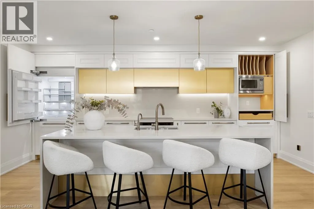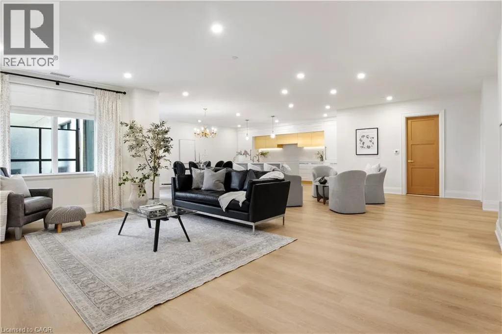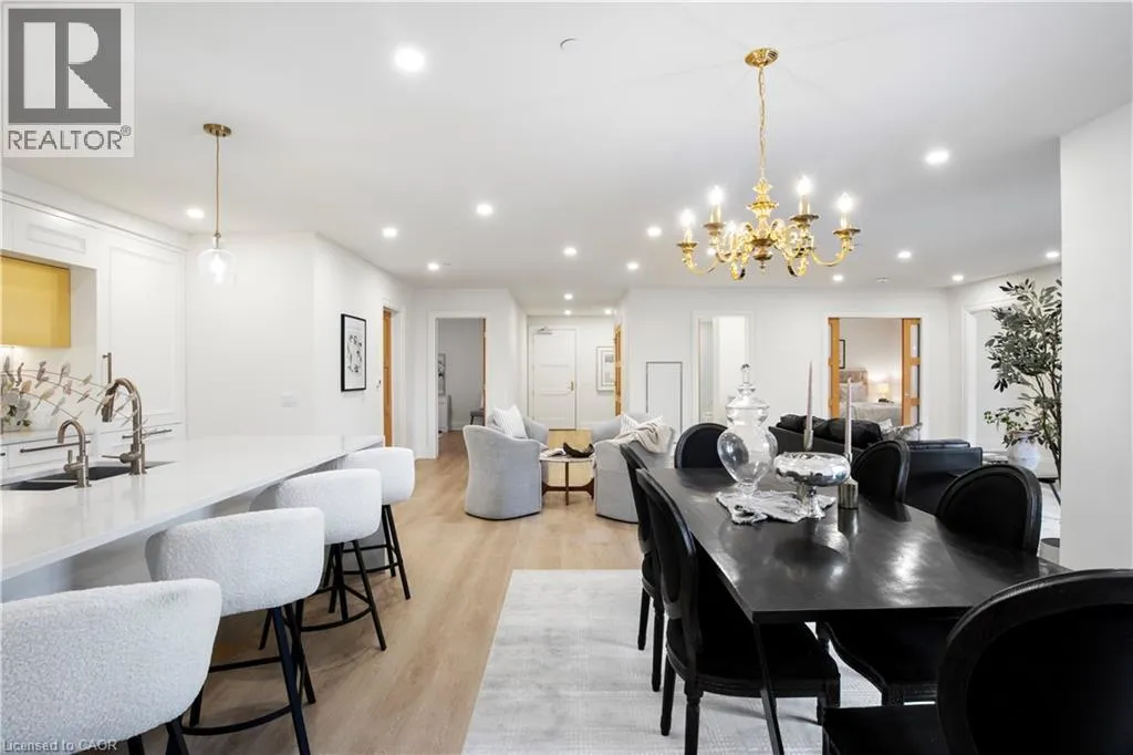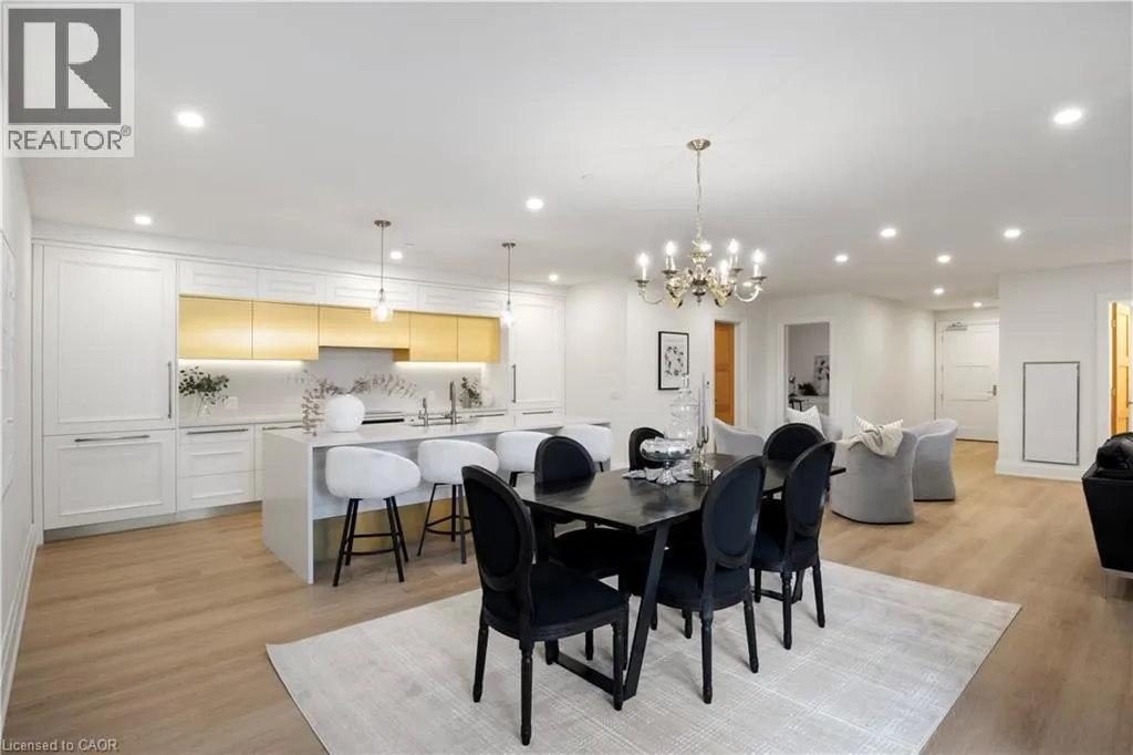 Wellington Rd 7 and Victoria This Luxury suite was designed for those looking to downsize without compromise. 2,098 Sqft of thoughtfully designed living space, this stunning first-floor residence combines the ease of Condo Living with the space and comfort of a Detached Home. This open concept layout has incredible flexibility, allowing you to tailor the space to suit your needs. The expansive dining area comfortably accommodates a full sized dining table, perfect for hosting dinner parties or cherished family gatherings, with room to bring your heirloom set. The living room is ideal for entertaining or relaxing with multiple seating areas and direct access to a sprawling 247 sqft Terrace, perfect for outdoor dining or enjoying your morning coffee. The designer kitchen, complete with an oversized island, with seamless integration into the living and dining areas. Tucked away the primary suite is a true retreat, accessed by a separate hallway and features a spa-inspired ensuite bath and generous walk-in closets. A second spacious bedroom, ideal for family or guests with a large closet & the 3rd bonus room provides added versatility, easily used as a home office, media room or even a 3rd bedroom for visitors. The full-size laundry room offers additional storage and convenience. Located on the ground floor, this suite offers direct views of the Terrace and across the river to the Elora Mill. Perfect for pet owners or those who prefer to avoid elevators. Start your mornings with a short stroll to the resident lounge to enjoy coffee and fresh pastries from the Elora Mill. This suite includes one underground parking space, a locker, and offers access to resort-style amenities: Fitness centre, Yoga studio, Lounge and Lobby Coffee Bar, Outdoor Terrace, and a Pool with Spectacular River Views!! Experience refined living in one of Ontario's most charming and walkable communities. Just steps away from award winning restaurants, artisan shops, cafes and the natural beauty of Elora. (id:27476)