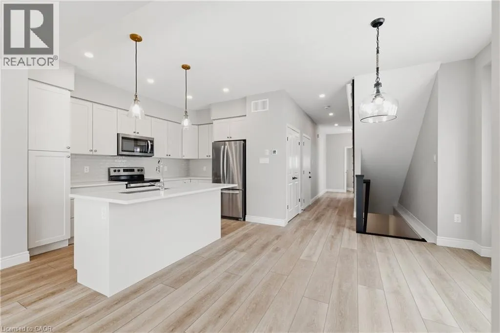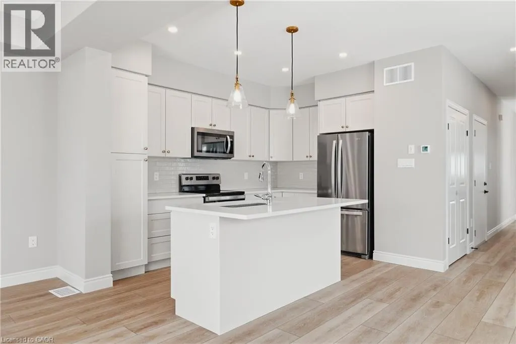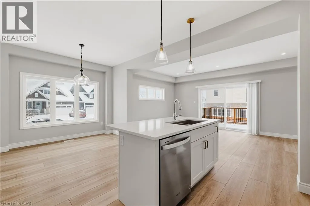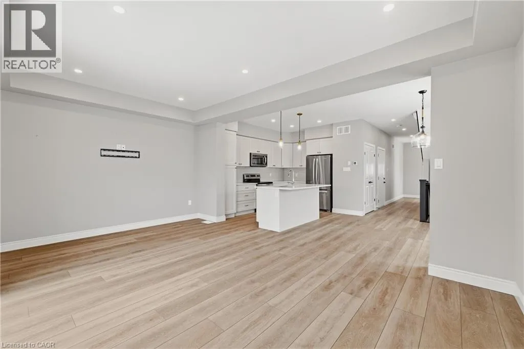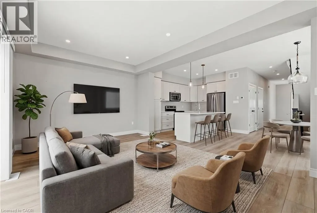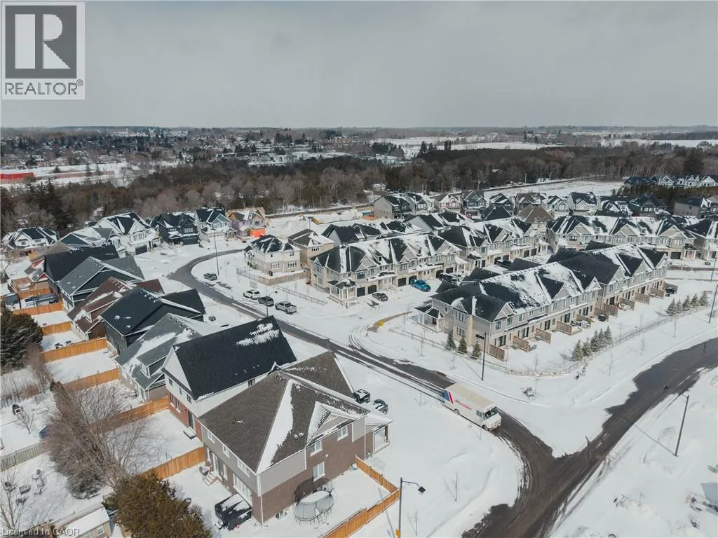 Heading south on Cutting Drive, turn left onto Haylock and left onto Hedley. Welcome to easy, modern living in the South River community of Elora. This bright and beautifully finished end unit townhouse offers the perfect blend of style, space, and convenience, all just a short walk to the shops, restaurants, and charm of downtown. Built in 2022 and thoughtfully upgraded throughout, this home features an open concept main floor with 9 ft ceilings and an abundance of windows that fill the space with natural light. The kitchen is both functional and elevated, complete with upgraded cabinetry, quartz countertops, and seamless flow into the living and dining areas, ideal for everyday living or hosting. Offering 3 bedrooms and 3.5 bathrooms, this home provides flexibility for families, guests, or a work from home setup. Upstairs, a versatile loft space creates the perfect spot for a home office, reading nook, or additional lounge area. The fully finished basement adds even more living space, complete with a 3 piece bathroom, making it ideal for a rec room, guest suite, or private retreat. Additional upgrades include a drywalled garage with opener, custom laundry cabinetry, and a clean, modern aesthetic throughout. Step outside to a large deck, perfect for relaxing or entertaining, while enjoying the ease of low maintenance living. Condo services take care of lawn care, irrigation, and winter road clearing, giving you more time to enjoy everything Elora has to offer. Vacant and ready for quick possession, this is a move in ready opportunity in one of Eloraâs most sought after communities. (id:27476)