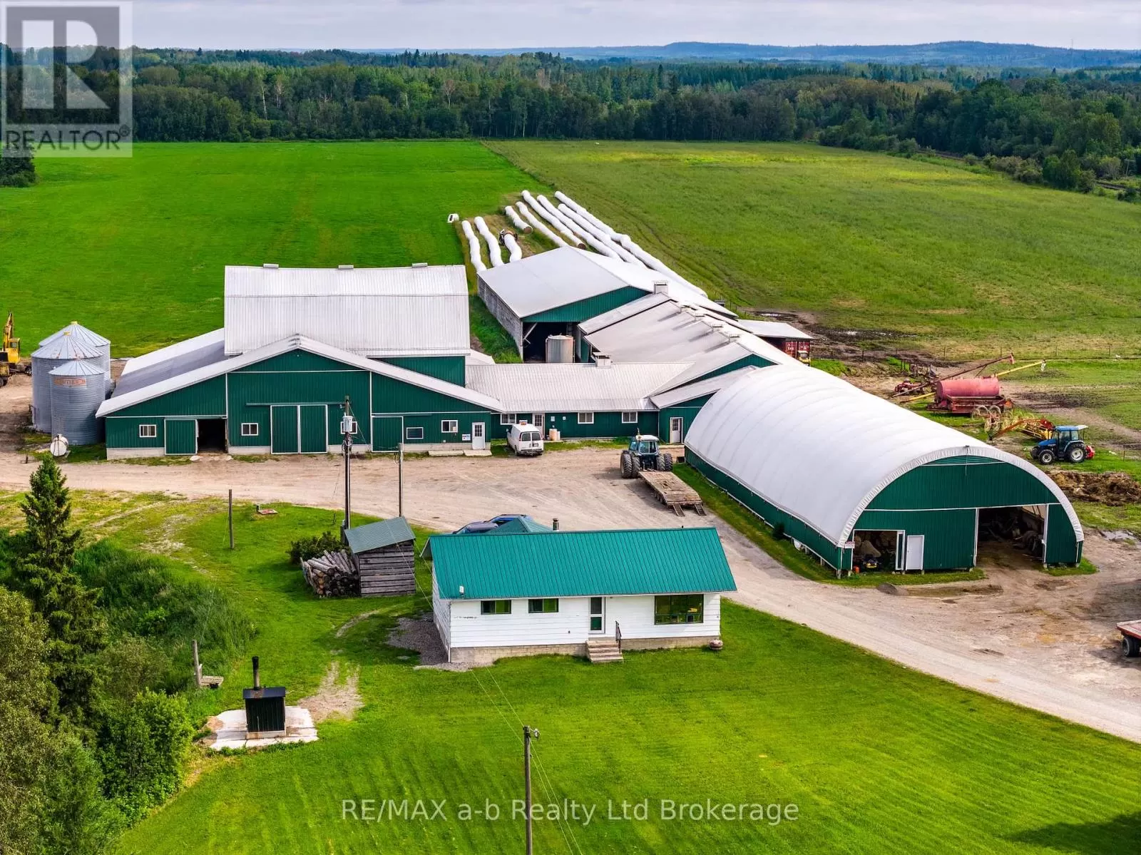 Cross Streets: WAWBEWAWA RD & CONCESSION ROAD 2. ** Directions: Highway 11North to Concession Road 2. Ongoing dairy farm for sale in Englehart, Ontario, fully equipped with 82 KG of saleable quota and supported by over 600 acres of land across 4 parcels, with approximately 275 acres workable. This large-scale operation is centered around a modern free-stall barn with 77 stalls, straw bedding, and two GEA R9500 milking robots installed in 2019. The farm is well laid out for efficiency, with GEA herd management software in place, a full range of support buildings including a large heifer barn built in 2017, traditional bank barn, coverall, and grain storage, plus a complete line of included equipment. This is a strong working farm with a substantial and contiguous land base, offering a mix of productive fields well-suited to support ongoing dairy operations. Designed for efficiency and cow comfort, this property provides the infrastructure and scale needed to operate successfully from day one. With a solid milking herd, robotic automation, and significant land holdings, this is an exceptional opportunity for those looking to grow or establish their presence in Ontario's dairy sector. (id:27476)