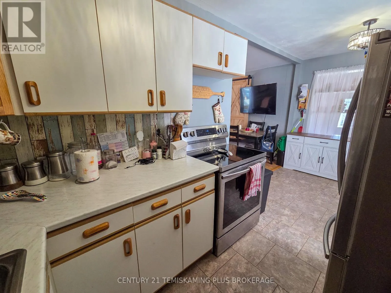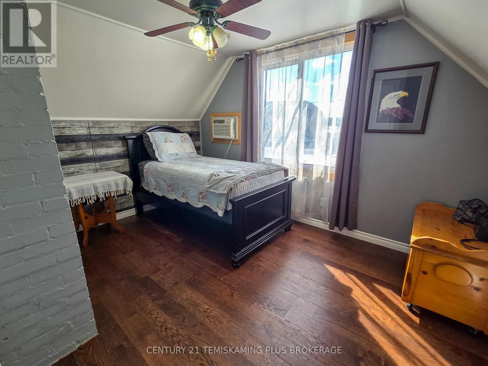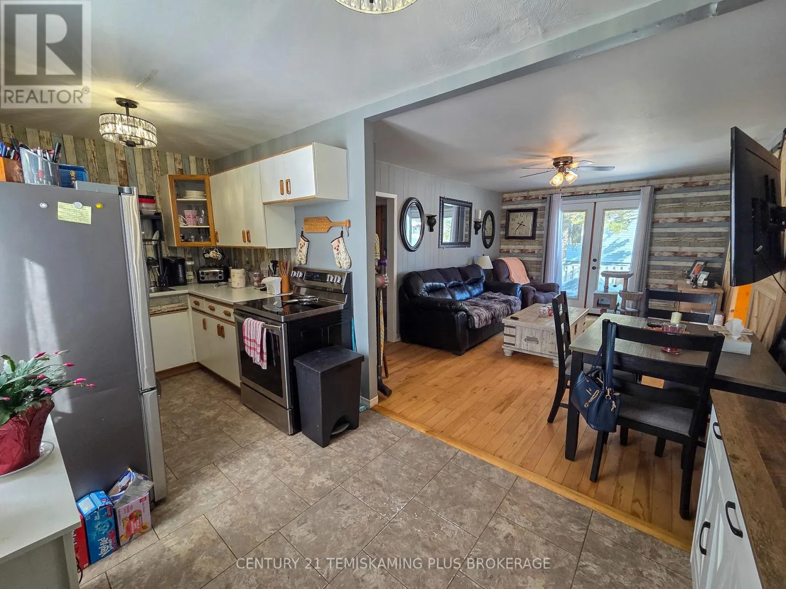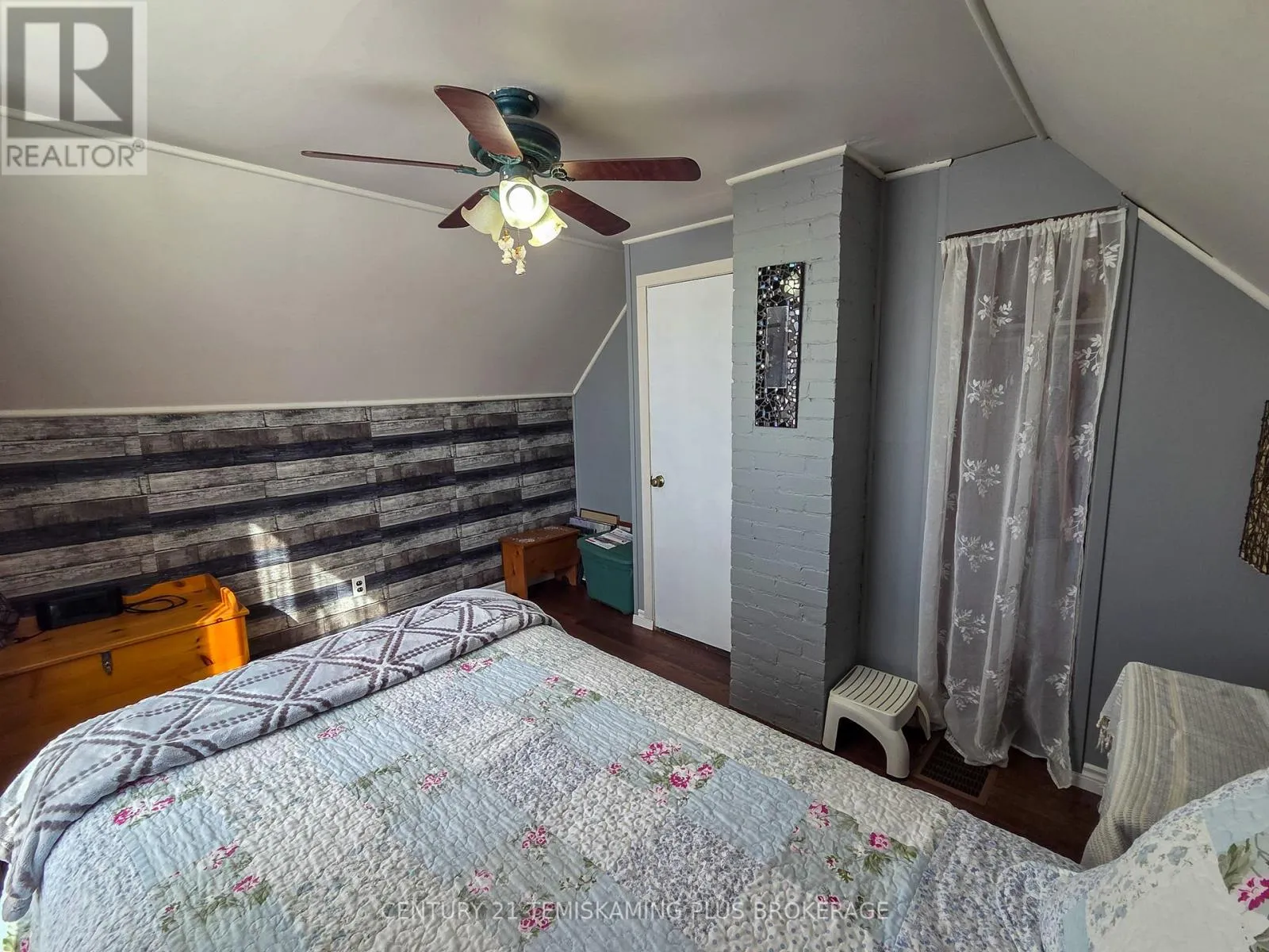 Cross Streets: Seventh Ave. & 4th St. ** Directions: Heading Northbound on Highway 11 turn right (North) onto 3rd St. turn left (West) onto Seventh Ave. Charming 1.5-Storey Home in a Prime Englehart Location. This delightful1.5-storey home offers comfort, convenience, and plenty of character, all within walking distance of schools, the arena, and downtown amenities. Situated on a generous lot with a detached garage and fully fenced backyard, it's an ideal property for families, pet owners, or anyone seeking a welcoming place to call home. Inside, you're greeted by a spacious rear entryway with main-floor laundry for everyday ease. The main level features a 4-piece bathroom, a comfortable primary bedroom, and an inviting living and dining area with patio doors leading directly to the yard. The galley-style kitchen includes newer appliances, and the standout feature is the expansive family room complete with a cozy natural gas fireplace-perfect for gatherings or quiet evenings in. The second floor offers two well-sized bedrooms, providing great flexibility for family, guests, or a home office. The unfinished basement delivers tons storage space. Outdoors, enjoy a detached garage, storage shed, covered deck area, and a fully fenced yard-an excellent setup for outdoor living and peace of mind. (id:27476)