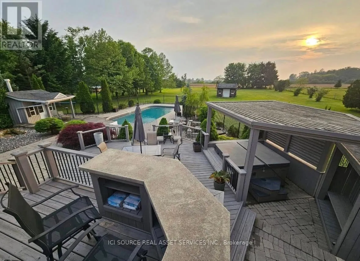 Cross Streets: Marthaville Road & Lasalle Line. ** Directions: From Sarnia, head east on Highway 402 and take exit at Mandaumin Road. Turn right onto Mandaumin Road. Follow until Lasalle Line, turn left and follow east until Kettle Lane. Your Private Oasis Awaits! Beautifully maintained brick bungalow set on 1.88 acres (approx. 177' x 462'), offering space, privacy, and modern updates just minutes from Sarnia and Petrolia.Featuring 3 bedrooms + 2 dens, 2 full bathrooms, and walk-in closets in the primary bedroom and one den.Bright interior with a 2021 kitchen showcasing quartz countertops and soft-close cabinetry. UV blinds upstairs and blackout blinds in the basement add comfort and functionality. The fully finished basement includes a gas fireplace and a separate grade-level entrance, offering excellent in-law or multi-generational living potential. Enjoy your private backyard retreat with a spacious deck, 18' x 36' in-ground pool, hot tub under a pergola with privacy shutters, and gas BBQ hookup. Updates: Furnace & A/C (2020), Pool liner (2022), Hot tub cover (2022), Septic pump (2020), Owned hot water tank, sump pump & water jetted backup (2025). Complete with a double car garage, this property offers the ideal combination of modern upgrades, functional living space, and outdoor luxury - truly move-in ready. *For Additional Property Details Click The Brochure Icon Below* (id:27476)