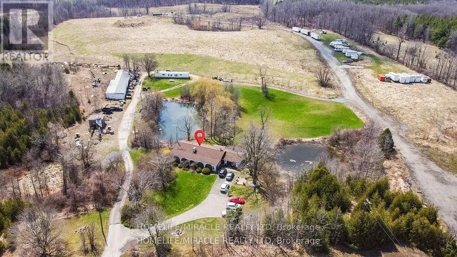 Wellington 50/ Wellington 125 On 45 acres of land, this property presents plenty of opportunities for a home, recreation, and commercial endeavors. This 4 Bedroom Spanish Style bungalow with walkout basement, located in the charming Wellington County, offers the perfect blend of serene countryside living and commercial potential. The home features four decent size bedrooms, a versatile rec room, and a beautifully landscaped backyard with a serene pond. With parking space for 12+ cars .This property is conveniently located to everything in the Town. With exposure to Hwy 125 and easy access to Hwy 401 and Hwy 9, this property connects to both Milton and Georgetown's downtown districts. This property is also just north of proposed Hwy 413. With living spaces, a large workshop, and breathtaking surroundings, this property is sure to exceed expectations. Don't miss out on the chance to make this dream property yours today **EXTRAS** Second driveway leads to extra residential unit with direct access to the shop, with multiple outdoor parking areas that offer ample room for vehicles (id:27476)