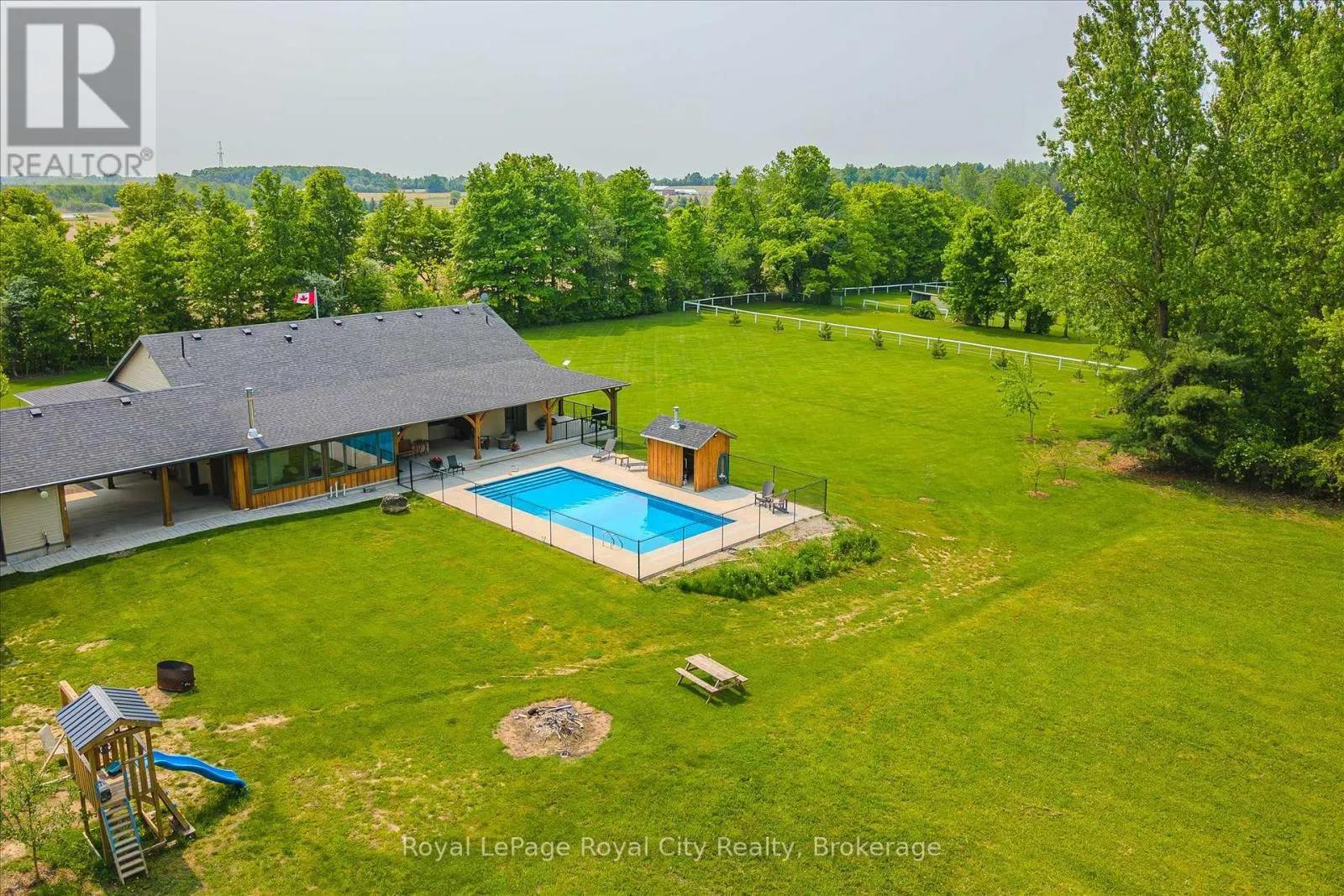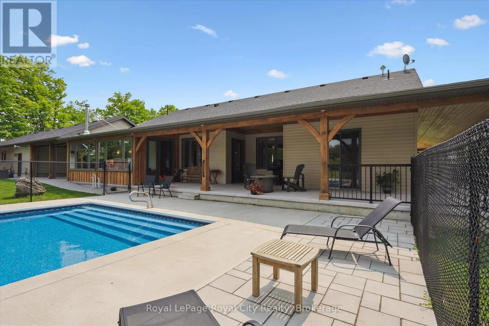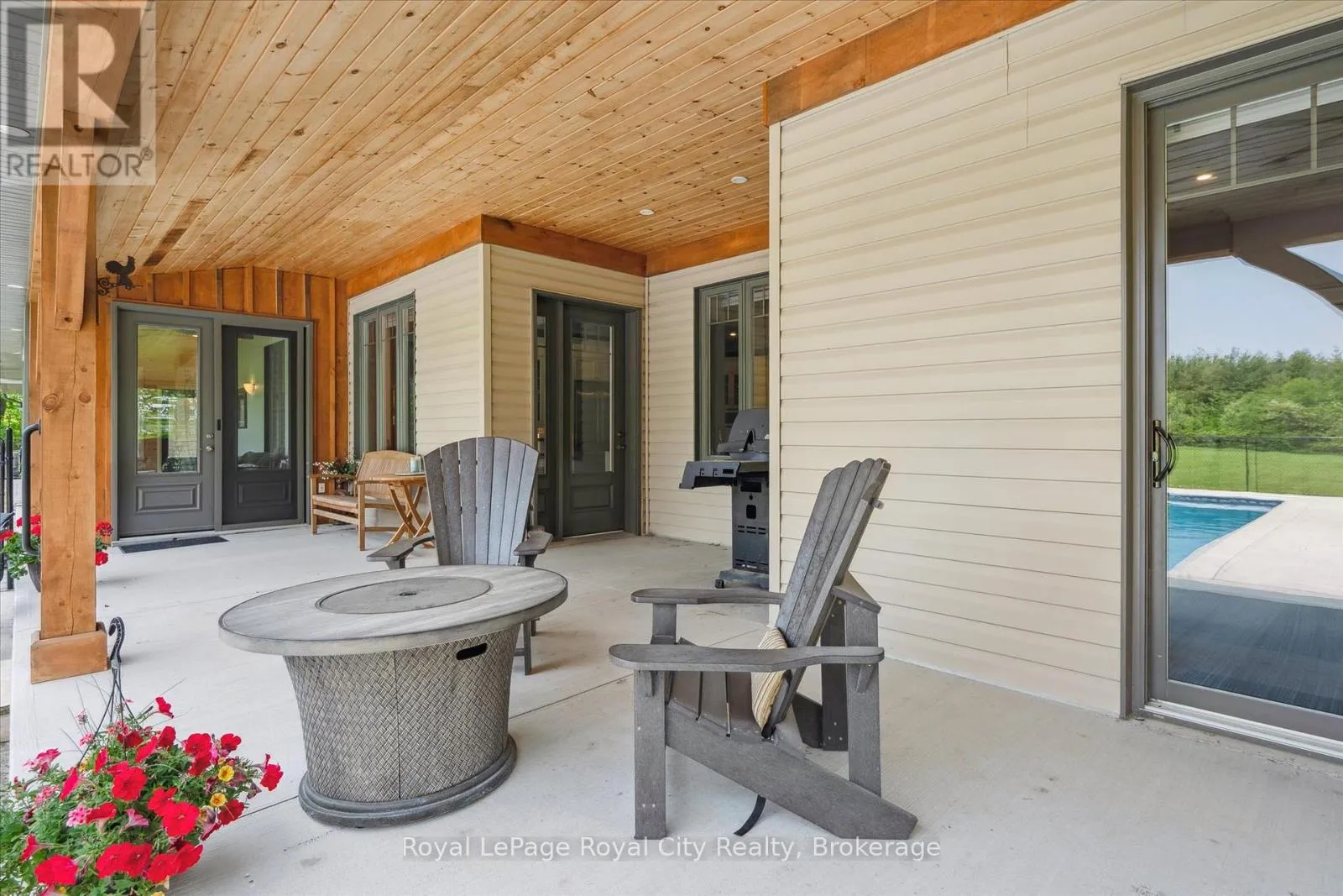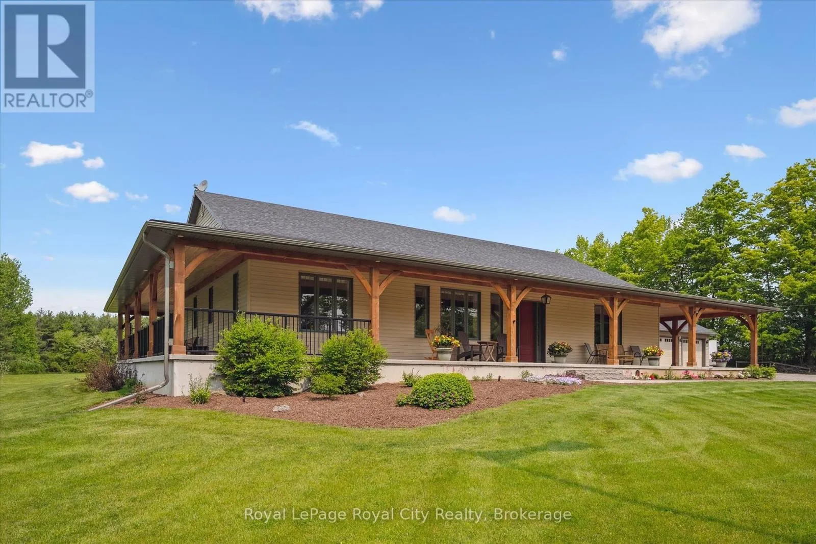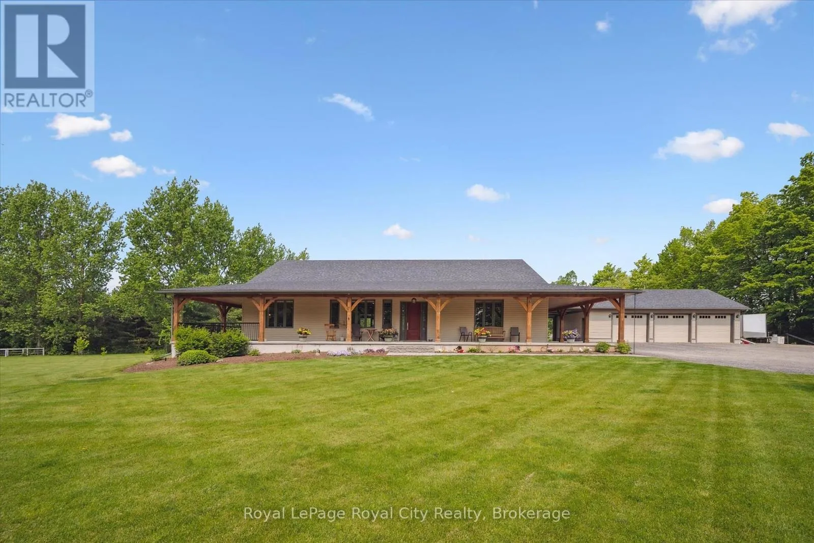 Cross Streets: Wellington Road 26 & Sideroad 15. ** Directions: Wellington 26 north of Wellington 124, Turn right on Sideroad 15. Welcome to a rare opportunity to own an impeccably designed bungalow that combines elegance, durability, and lifestyle in one extraordinary package. This sprawling 3,000 sq. ft. home is nestled on just under 2 acres of private, manicured land, offering both the peace of rural living and the sophistication of high-end construction. Built with energy-efficient and ultra-durable Insulated Concrete Form (ICF) wall construction, this home offers unmatched insulation, soundproofing, and structural strength. Step onto the stunning timber-framed wrap-around porch, where rustic craftsmanship and architectural detail make a bold first impression.Inside, you're greeted with 10-foot ceilings that amplify the natural light and sense of space throughout the main floor. The open-concept layout is ideal for entertaining or simply enjoying the spaciousness of your surroundings. At the heart of the home lies a chefs kitchen that truly delivers - complete with high-end appliances, an oversized island, and an enormous walk-in pantry that could double as a prep kitchen. The main floor features 3 generous bedrooms, each with its own private ensuite bathroom, providing ultimate comfort and privacy for family and guests alike. The primary bedroom is a serene retreat, with luxurious 5pc bathroom, sitting area and walk-in closet.The fully finished basement expands your living space significantly, offering limitless options for big-screen theatre, home office, fitness, or multi-generational living.Step outside to your backyard paradise, where you'll find a saltwater in-ground pool with patio and plenty of space for lounging, grilling, or hosting summer gatherings. The expansive yard offers room for kids to play, pets to roam, or future additions like a workshop or garden suite.Located just minutes from town amenities but far enough to enjoy privacy and nature, this one-of-a-kind bungalow offers the perfect blend of modern luxury and timeless craftsmanship. (id:27476)
