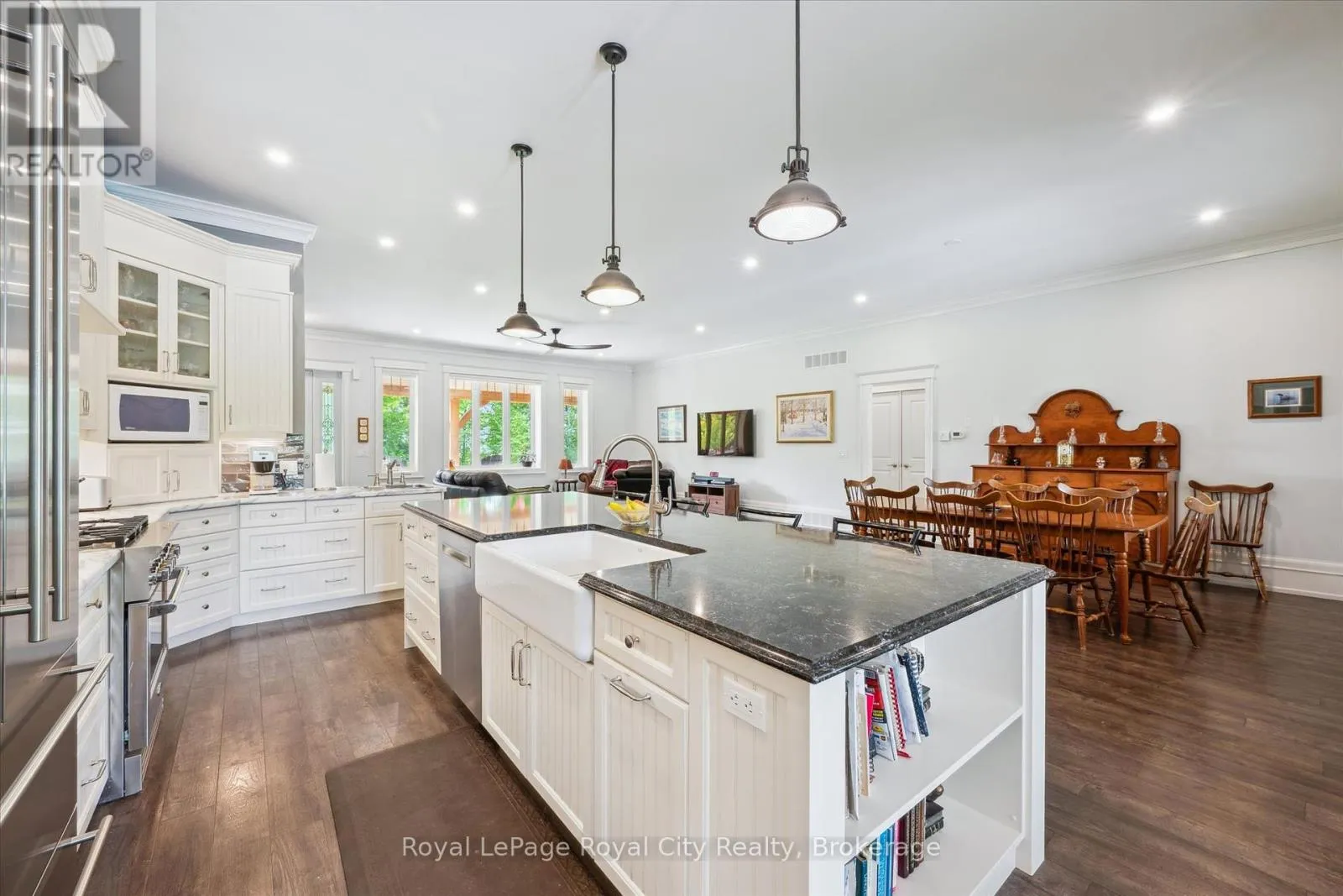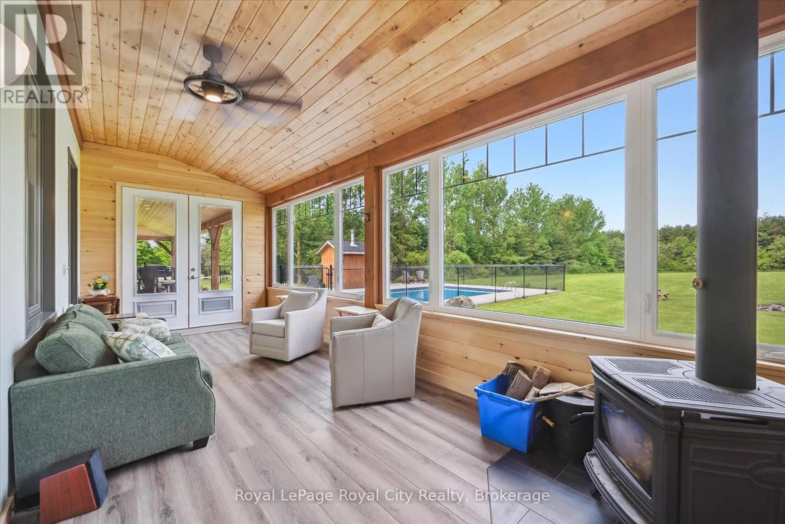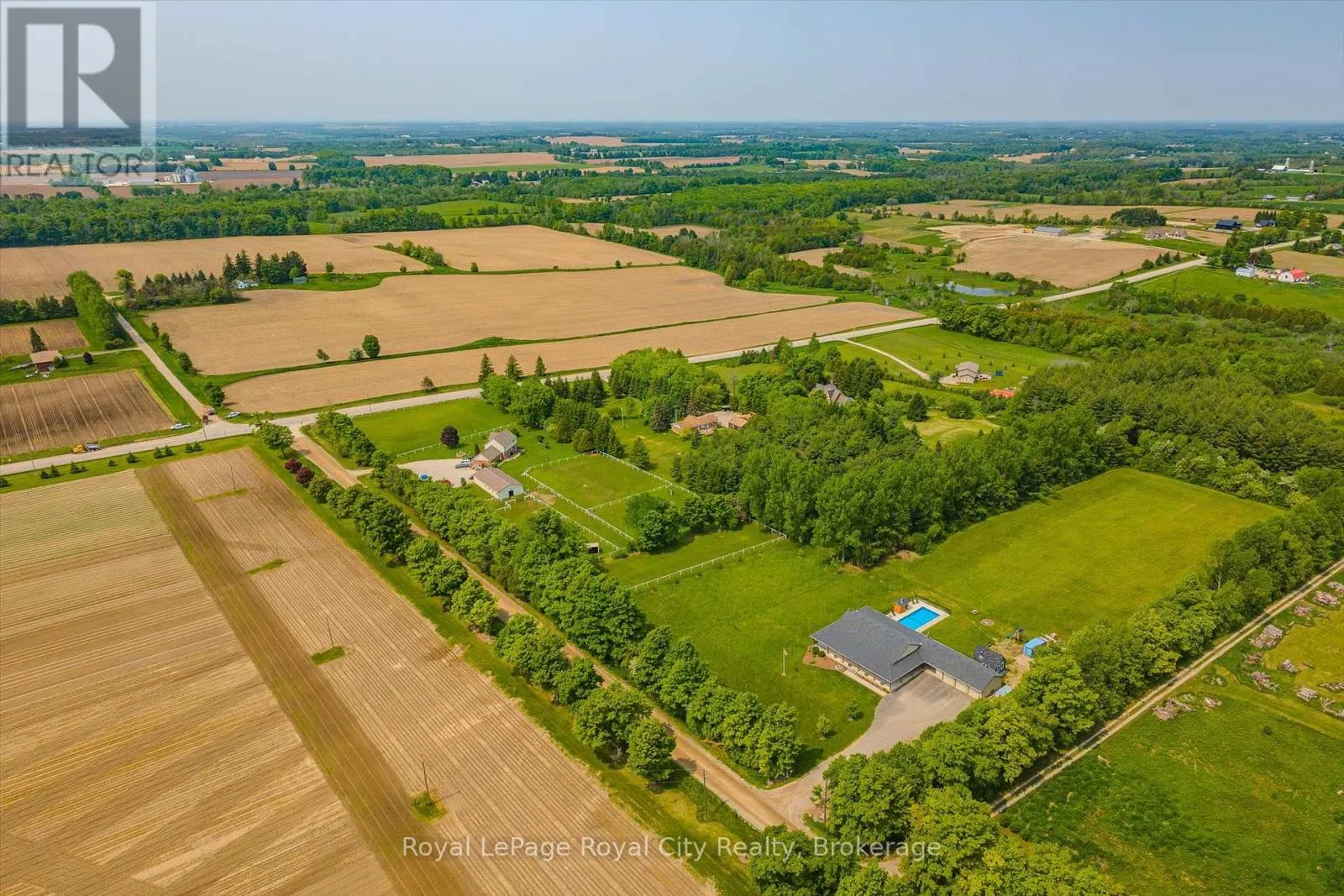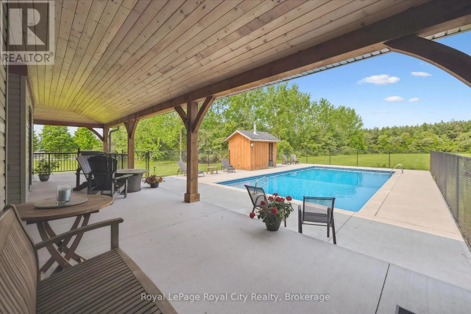 Cross Streets: Wellington Road 26 & Sideroad 15. ** Directions: Wellington 26 north of Wellington 124, Turn right on Sideroad 15. Welcome to a rare opportunity to own an impeccably designed bungalow that combines elegance, durability, and lifestyle in one extraordinary package. This sprawling 3,000 sq. ft. home is nestled on just under 2 acres of private, manicured land, offering both the peace of rural living and the sophistication of high-end construction. Built with energy-efficient and ultra-durable Insulated Concrete Form (ICF) wall construction, this home offers unmatched insulation, soundproofing, and structural strength. Step onto the stunning timber-framed wrap-around porch, where rustic craftsmanship and architectural detail make a bold first impression.Inside, you're greeted with 10-foot ceilings that amplify the natural light and sense of space throughout the main floor. The open-concept layout is ideal for entertaining or simply enjoying the spaciousness of your surroundings. At the heart of the home lies a chefs kitchen that truly delivers - complete with high-end appliances, an oversized island, and an enormous walk-in pantry that could double as a prep kitchen. The main floor features 3 generous bedrooms, each with its own private ensuite bathroom, providing ultimate comfort and privacy for family and guests alike. The primary bedroom is a serene retreat, with luxurious 5pc bathroom, sitting area and walk-in closet.The fully finished basement expands your living space significantly, offering limitless options for big-screen theatre, home office, fitness, or multi-generational living.Step outside to your backyard paradise, where you'll find a saltwater in-ground pool with patio and plenty of space for lounging, grilling, or hosting summer gatherings. The expansive yard offers room for kids to play, pets to roam, or future additions like a workshop or garden suite.Located just minutes from town amenities but far enough to enjoy privacy and nature, this one-of-a-kind bungalow offers the perfect blend of modern luxury and timeless craftsmanship. (id:27476)