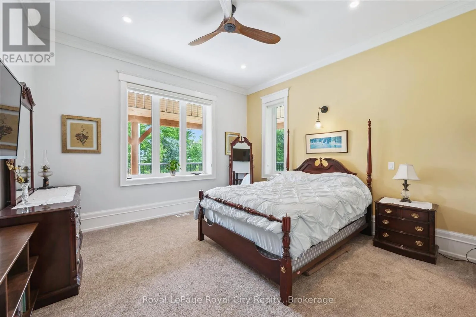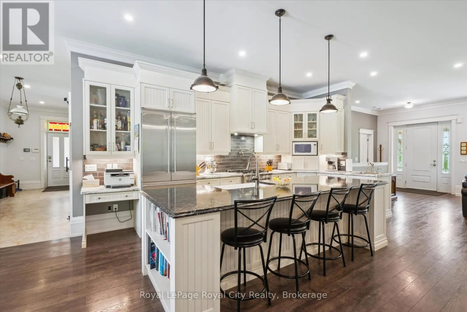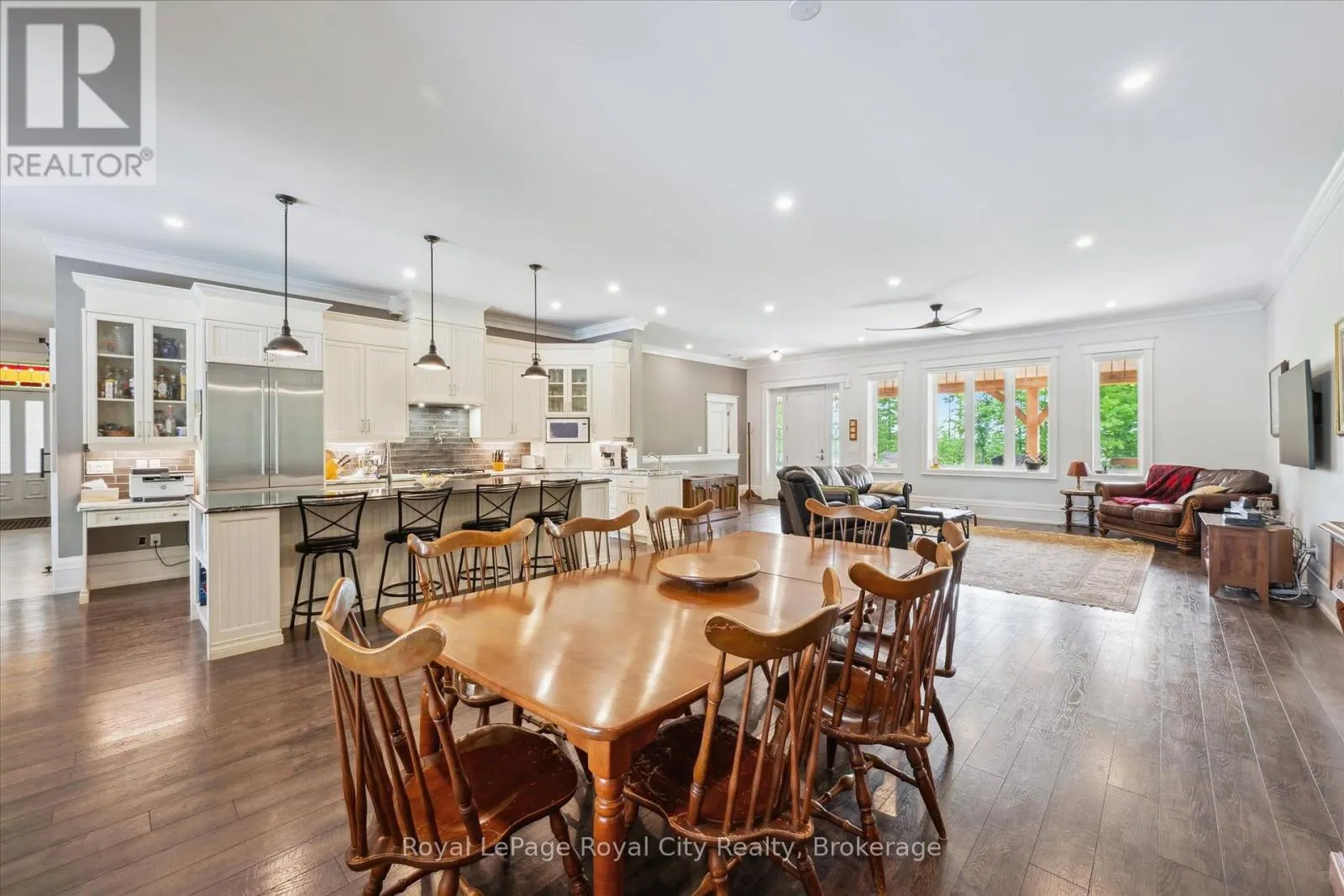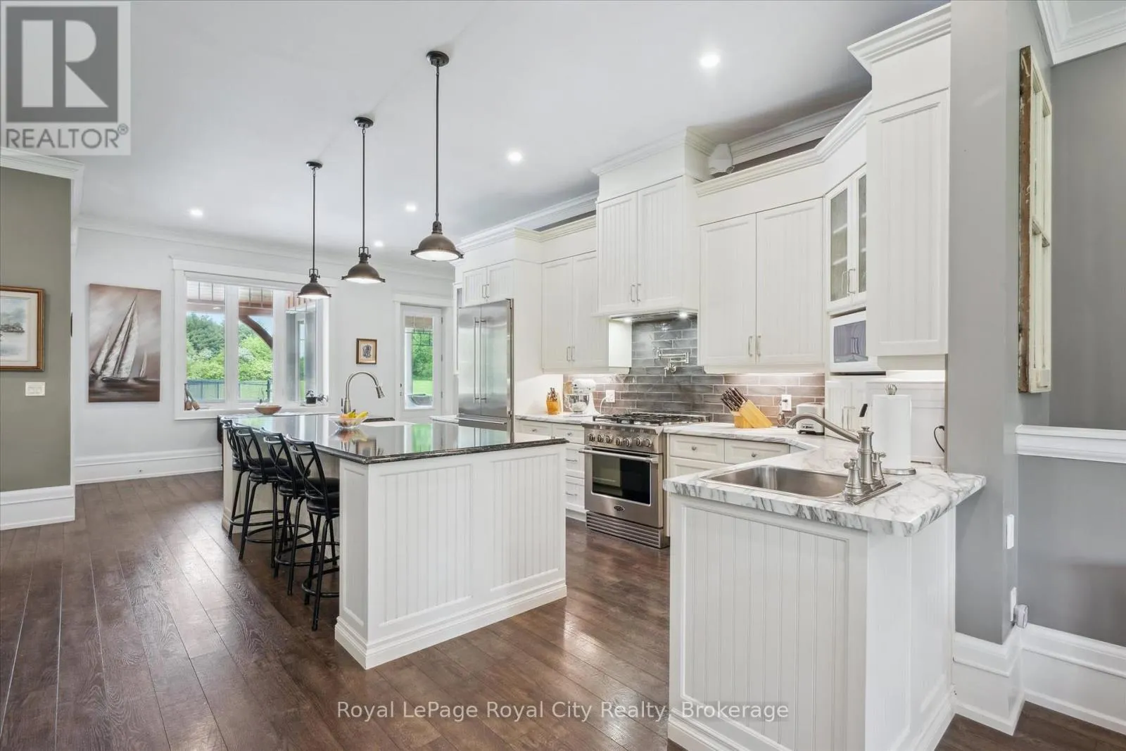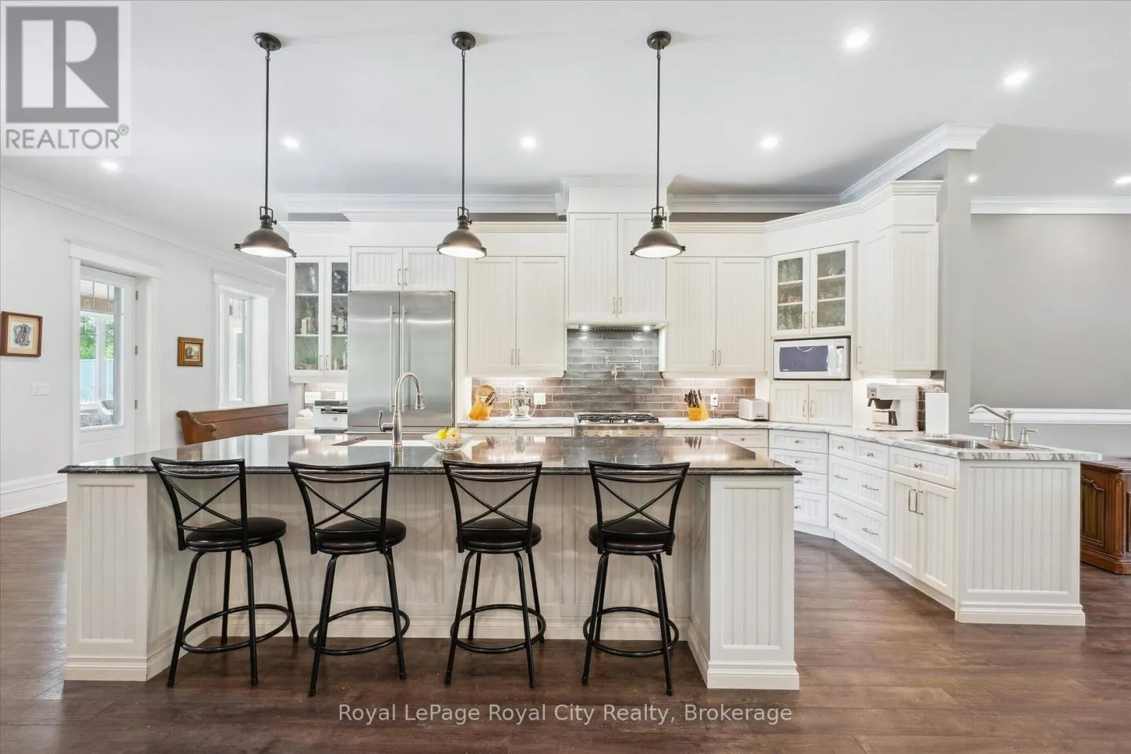 Cross Streets: Wellington Road 26 & Sideroad 15. ** Directions: Wellington 26 north of Wellington 124, Turn right on Sideroad 15. Welcome to a rare opportunity to own an impeccably designed bungalow that combines elegance, durability, and lifestyle in one extraordinary package. This sprawling 3,000 sq. ft. home is nestled on just under 2 acres of private, manicured land, offering both the peace of rural living and the sophistication of high-end construction. Built with energy-efficient and ultra-durable Insulated Concrete Form (ICF) wall construction, this home offers unmatched insulation, soundproofing, and structural strength. Step onto the stunning timber-framed wrap-around porch, where rustic craftsmanship and architectural detail make a bold first impression.Inside, you're greeted with 10-foot ceilings that amplify the natural light and sense of space throughout the main floor. The open-concept layout is ideal for entertaining or simply enjoying the spaciousness of your surroundings. At the heart of the home lies a chefs kitchen that truly delivers - complete with high-end appliances, an oversized island, and an enormous walk-in pantry that could double as a prep kitchen. The main floor features 3 generous bedrooms, each with its own private ensuite bathroom, providing ultimate comfort and privacy for family and guests alike. The primary bedroom is a serene retreat, with luxurious 5pc bathroom, sitting area and walk-in closet.The fully finished basement expands your living space significantly, offering limitless options for big-screen theatre, home office, fitness, or multi-generational living.Step outside to your backyard paradise, where you'll find a saltwater in-ground pool with patio and plenty of space for lounging, grilling, or hosting summer gatherings. The expansive yard offers room for kids to play, pets to roam, or future additions like a workshop or garden suite.Located just minutes from town amenities but far enough to enjoy privacy and nature, this one-of-a-kind bungalow offers the perfect blend of modern luxury and timeless craftsmanship. (id:27476)
