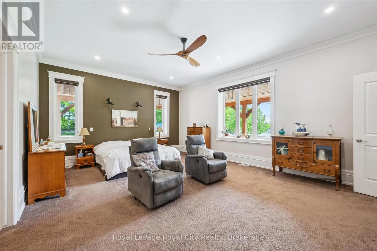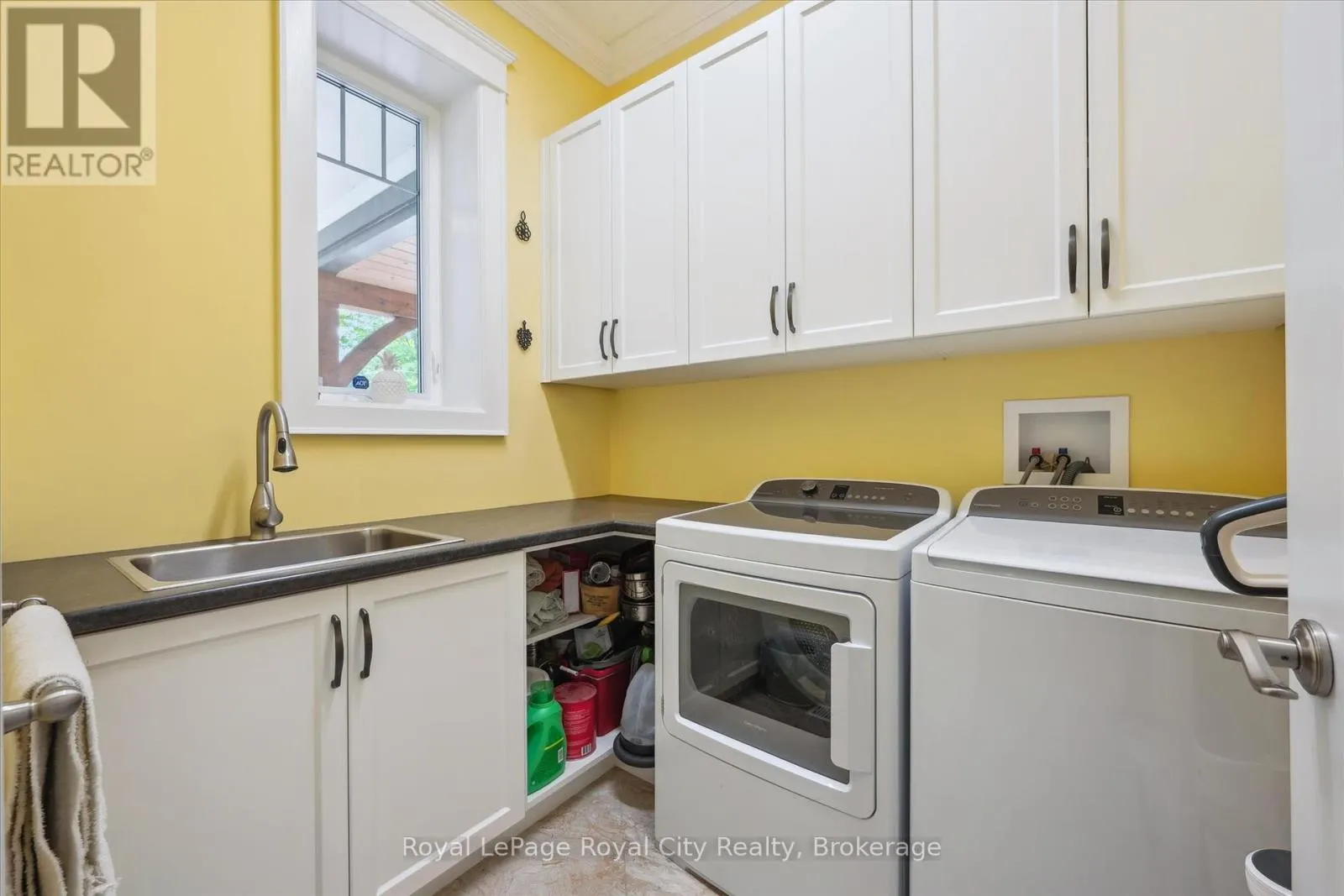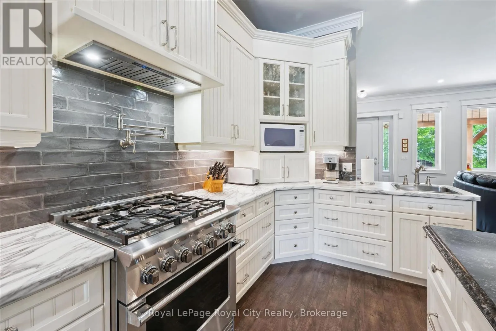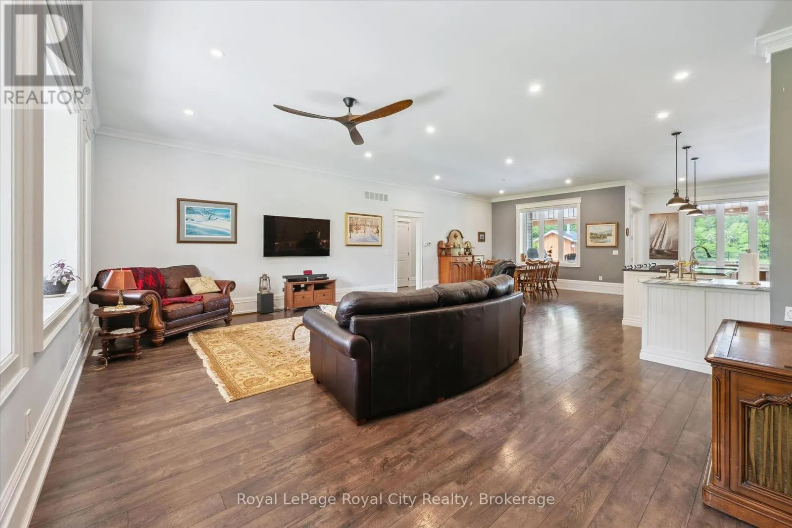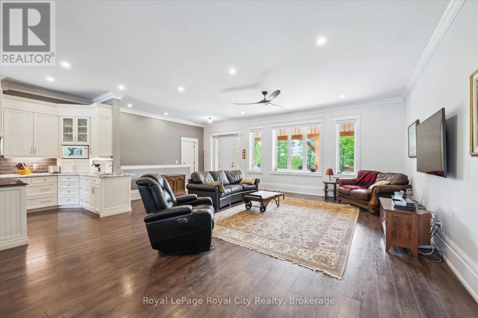 Cross Streets: Wellington Road 26 & Sideroad 15. ** Directions: Wellington 26 north of Wellington 124, Turn right on Sideroad 15. Welcome to a rare opportunity to own an impeccably designed bungalow that combines elegance, durability, and lifestyle in one extraordinary package. This sprawling 3,000 sq. ft. home is nestled on just under 2 acres of private, manicured land, offering both the peace of rural living and the sophistication of high-end construction. Built with energy-efficient and ultra-durable Insulated Concrete Form (ICF) wall construction, this home offers unmatched insulation, soundproofing, and structural strength. Step onto the stunning timber-framed wrap-around porch, where rustic craftsmanship and architectural detail make a bold first impression.Inside, you're greeted with 10-foot ceilings that amplify the natural light and sense of space throughout the main floor. The open-concept layout is ideal for entertaining or simply enjoying the spaciousness of your surroundings. At the heart of the home lies a chefs kitchen that truly delivers - complete with high-end appliances, an oversized island, and an enormous walk-in pantry that could double as a prep kitchen. The main floor features 3 generous bedrooms, each with its own private ensuite bathroom, providing ultimate comfort and privacy for family and guests alike. The primary bedroom is a serene retreat, with luxurious 5pc bathroom, sitting area and walk-in closet.The fully finished basement expands your living space significantly, offering limitless options for big-screen theatre, home office, fitness, or multi-generational living.Step outside to your backyard paradise, where you'll find a saltwater in-ground pool with patio and plenty of space for lounging, grilling, or hosting summer gatherings. The expansive yard offers room for kids to play, pets to roam, or future additions like a workshop or garden suite.Located just minutes from town amenities but far enough to enjoy privacy and nature, this one-of-a-kind bungalow offers the perfect blend of modern luxury and timeless craftsmanship. (id:27476)