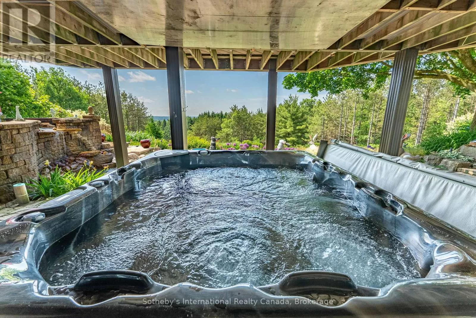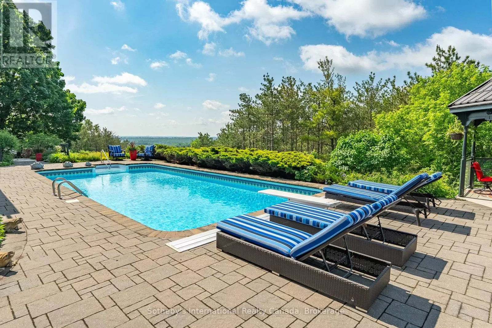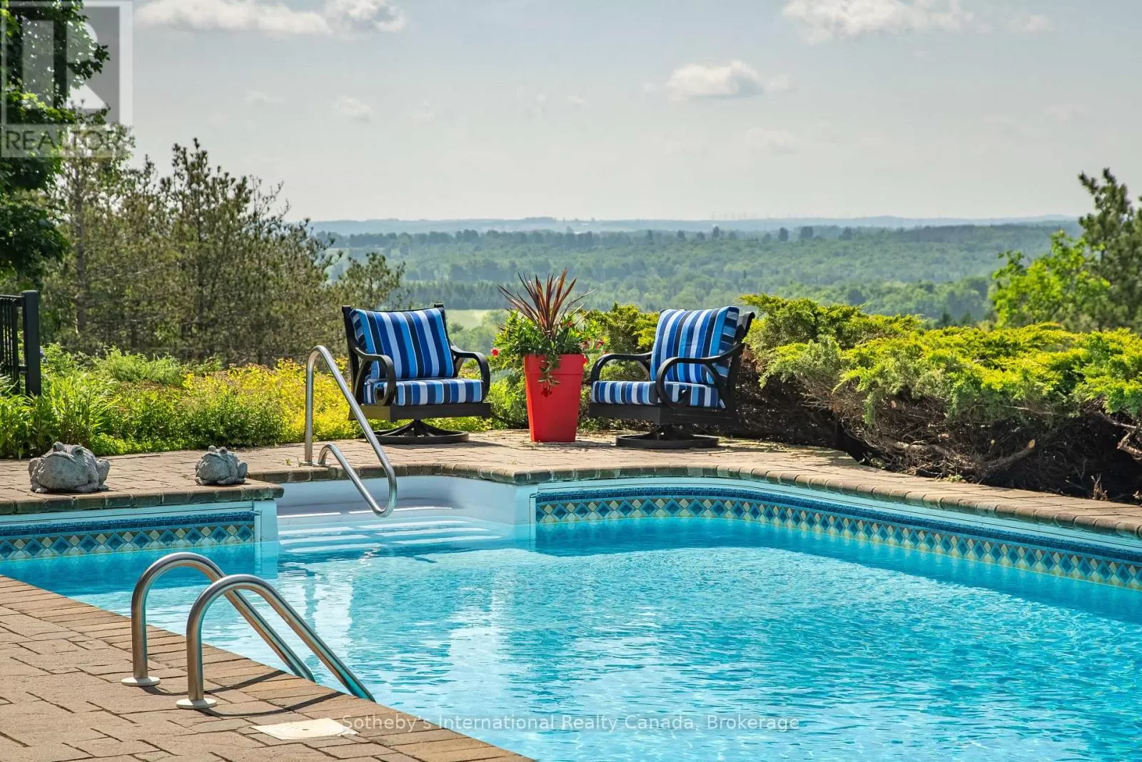 Cross Streets: TRAFALGAR AND SIDE RD 27. ** Directions: N ON TRAFALGAR, N OF HILLSBURGH, E ON SIDE ROAD 27. Spectacular family estate, in the picturesque countryside of Erin. Perched on a hillside, with 46+ glorious acres & breathtaking views of the valleys below. Custom-built, with 7000+ sq ft, 6 bedrooms & 7 baths in total. Recently renovated from top to bottom & no expense spared. As you enter the hidden gates & drive up the winding drive, dotted with carriage lights, you realize that this is clearly a once in a lifetime opportunity. Meticulously landscaped with colorful English gardens, intricate stone pathways, patios & stairs & custom designed stone fountains decorate the exterior with decks & gazebos to take in the views. The 2 story Foyer & dramatic curved oak staircase, set the tone for what awaits you. 2-tiered formal Living Rm with gas f/p, separate Dining Rm, sunken Family Rm with custom built-ins, gas f/p & circular floating oak & wrought iron staircase leads to the oak paneled office above. Chefs Woodland Horizon Kitchen with top-of-the-line appliances, gorgeous floor to ceiling maple cabinetry, 9 ft island, quartz counters & separate casual Dining area with additional wall of cabinetry & b/I coffee station. The 2nd floor boasts a Primary wing, with a huge sitting room w/gas f/p, luxurious 6 pc ensuite & huge w/I closet & access to the private Home Office. There are 2 more, good sized bedrooms & a 5 pc bath. Back to the main floor & west extension of the home there's 3 more bedroom, 2nd eat in kitchen, den & Great Room, w/private balcony to take in the views, all above the 4+ car garage. This is a 6 bedroom home, or 2 separate living quarters, each with 3 bedrooms, for guest quarters, multigeneration or in-law suite. The possibilities are endless! The Resort-worthy backyard is nothing short of spectacular with 18 x 38 ft inground salt-water pool, hot tub, full outdoor kitchen, Change Rm, 4 pc bath & separate pool house. Lower level walk out houses a full gym, wet bar, 2nd laundry, wine rm & more. Heated 4 car garage w/workshop. Something for everyone! (id:27476)