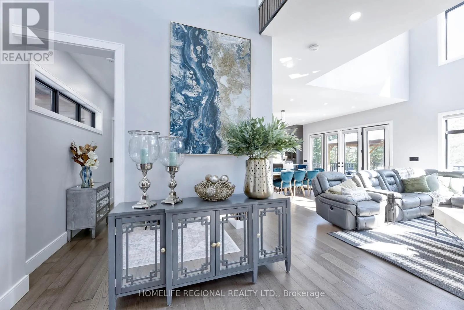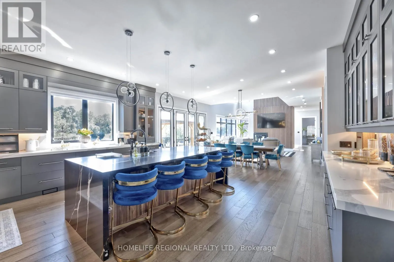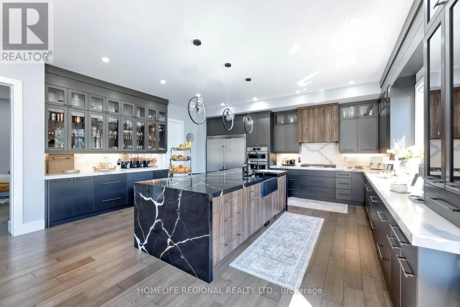 S/Wellington Road 124-W/Highway 125 Welcome to 5329 First Line an architectural master piece nestled in nature, where luxury meets serenity. This exceptional property offers approximately 7,000 sq. ft. total of luxurious living space, and approximately 4111 sq. ft. above ground! Set on a quiet rural road and nestled on a breathtaking 10-acre lot, including 8 acres of pristine conservation land. Featuring 4 spacious bedrooms and 5 bathrooms, each bedroom comes complete with its own walk-in closet and private ensuite bathroom, delivering comfort, privacy, and elegance at every turn. The open-concept main floor boasts soaring ceilings in the great room, a gourmet kitchen with an oversized waterfall island, walk-in pantry, and access to multiple decks perfect for seamless indoor-outdoor living. The fully finished lower level includes a stunning wet bar area with a built-in pizza oven and charcoal BBQ, plus a rough-in for a hot tub ideal for entertaining or relaxing in style. The oversized heated 3-car garage is equipped with Wi-Fi-enabled openers, Massive 10x10 oversized garage doors, and roughed-in EV charging outlets. Extensive nature trails throughout the property, a short walk to the Eramosa River great for fishing and exploring. This is a rare opportunity for the discerning buyer seeking a private, show-stopping home that combines luxury, functionality, and the beauty of nature. If you have been searching for something truly special, your search ends here. Please see attached for an unparalleled level of upgrades, features, and chattels too many to list. (id:27476)