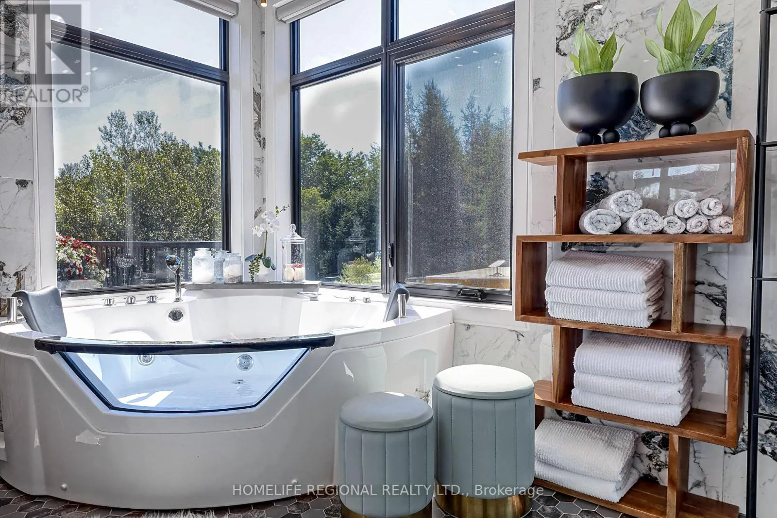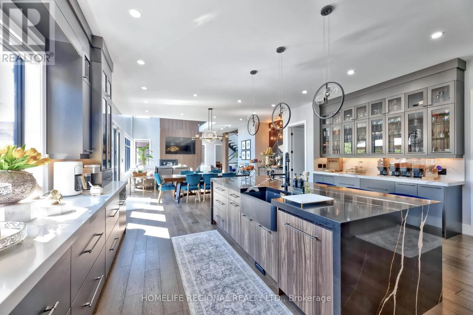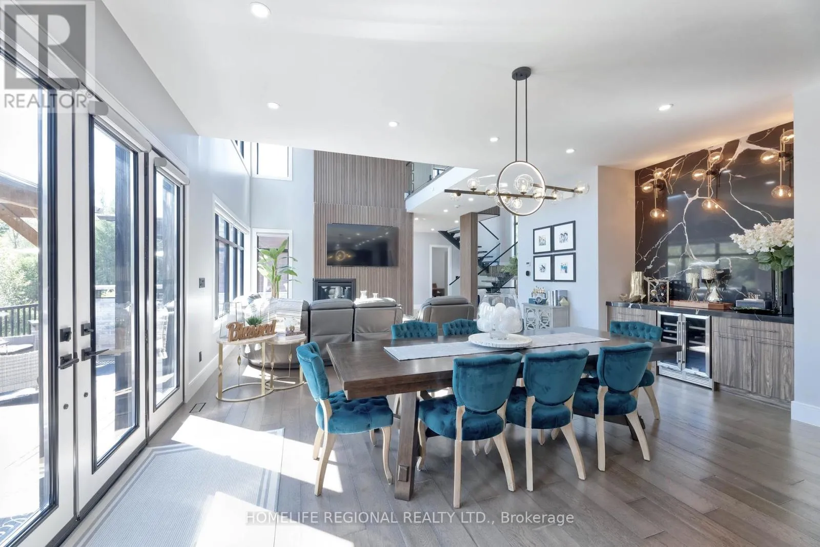 S/Wellington Road 124-W/Highway 125 Welcome to 5329 First Line an architectural master piece nestled in nature, where luxury meets serenity. This exceptional property offers approximately 7,000 sq. ft. total of luxurious living space, and approximately 4111 sq. ft. above ground! Set on a quiet rural road and nestled on a breathtaking 10-acre lot, including 8 acres of pristine conservation land. Featuring 4 spacious bedrooms and 5 bathrooms, each bedroom comes complete with its own walk-in closet and private ensuite bathroom, delivering comfort, privacy, and elegance at every turn. The open-concept main floor boasts soaring ceilings in the great room, a gourmet kitchen with an oversized waterfall island, walk-in pantry, and access to multiple decks perfect for seamless indoor-outdoor living. The fully finished lower level includes a stunning wet bar area with a built-in pizza oven and charcoal BBQ, plus a rough-in for a hot tub ideal for entertaining or relaxing in style. The oversized heated 3-car garage is equipped with Wi-Fi-enabled openers, Massive 10x10 oversized garage doors, and roughed-in EV charging outlets. Extensive nature trails throughout the property, a short walk to the Eramosa River great for fishing and exploring. This is a rare opportunity for the discerning buyer seeking a private, show-stopping home that combines luxury, functionality, and the beauty of nature. If you have been searching for something truly special, your search ends here. Please see attached for an unparalleled level of upgrades, features, and chattels too many to list. (id:27476)