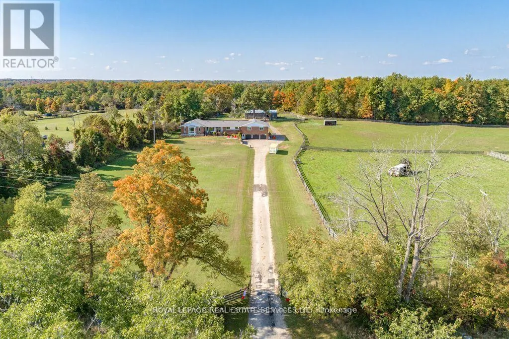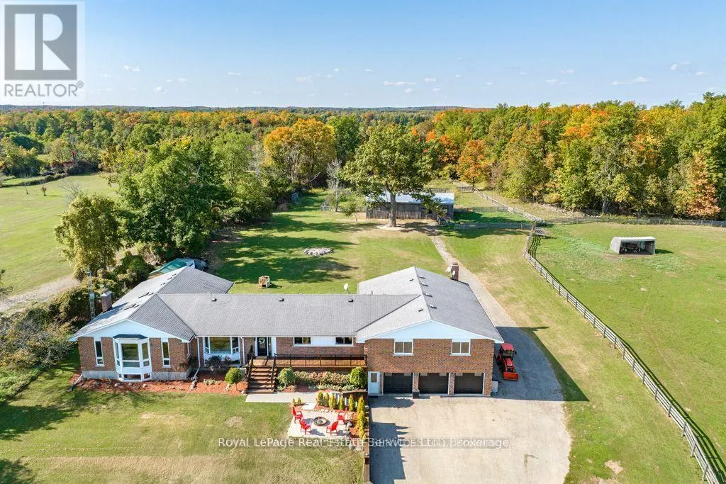 Cross Streets: Trafalgar & 32 Side Road. ** Directions: Trafalgar Road, at Ballinafad go east on Wellington Road 42 (which is also called 32 Side Road). Now on Standard Broadband fibre optics! Note 6 separate walkouts. Beautiful property to be your forever family home, ideal for multi generational living. Impressive (8 bedroom total) 4,500+ square feet (6 bedrooms on main level) bungalow with 3,000+ square foot lower level with walkout at grade level entry which includes a 2 bedroom 1,983 square foot inlaw suite (with lots more room to expand) all on a huge 25 acre parcel of land full of personality comprising a balance of workable land, mixed woods with amazing trilliums, all sure to please the most discerning buyer! Bring your wish list here and check off your boxes! If privacy is a factor, this fine family home is set well back off the road, and is nicely elevated affording beautiful views off all windows and ideal for the nature lover. Additionally for the car collector or multi vehicle family, a total garage space accommodating 7 vehicles or specialty toys, atv's, snowmobiles, etc., of which the tandem 4 car garage with double o/h door is 45'x23'. The updated pole barn with water and hydro has been improved with 3 System Equine stalls for your equine, goats, chickens, miniature horses, alpacas, llamas, donkey, and more! Fantastic location for Pearson Airport commuters per Google only 30 minutes. (id:27476)