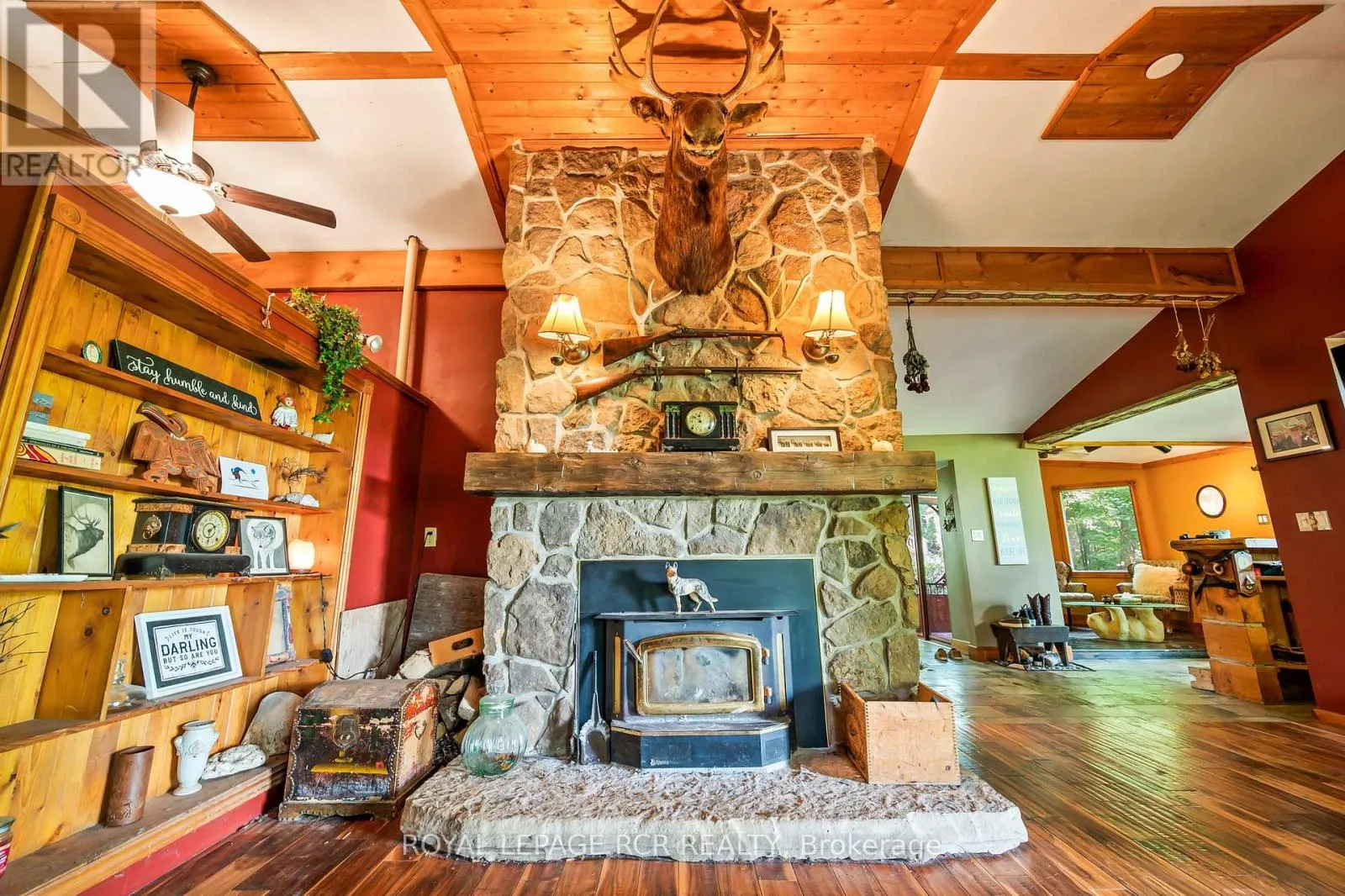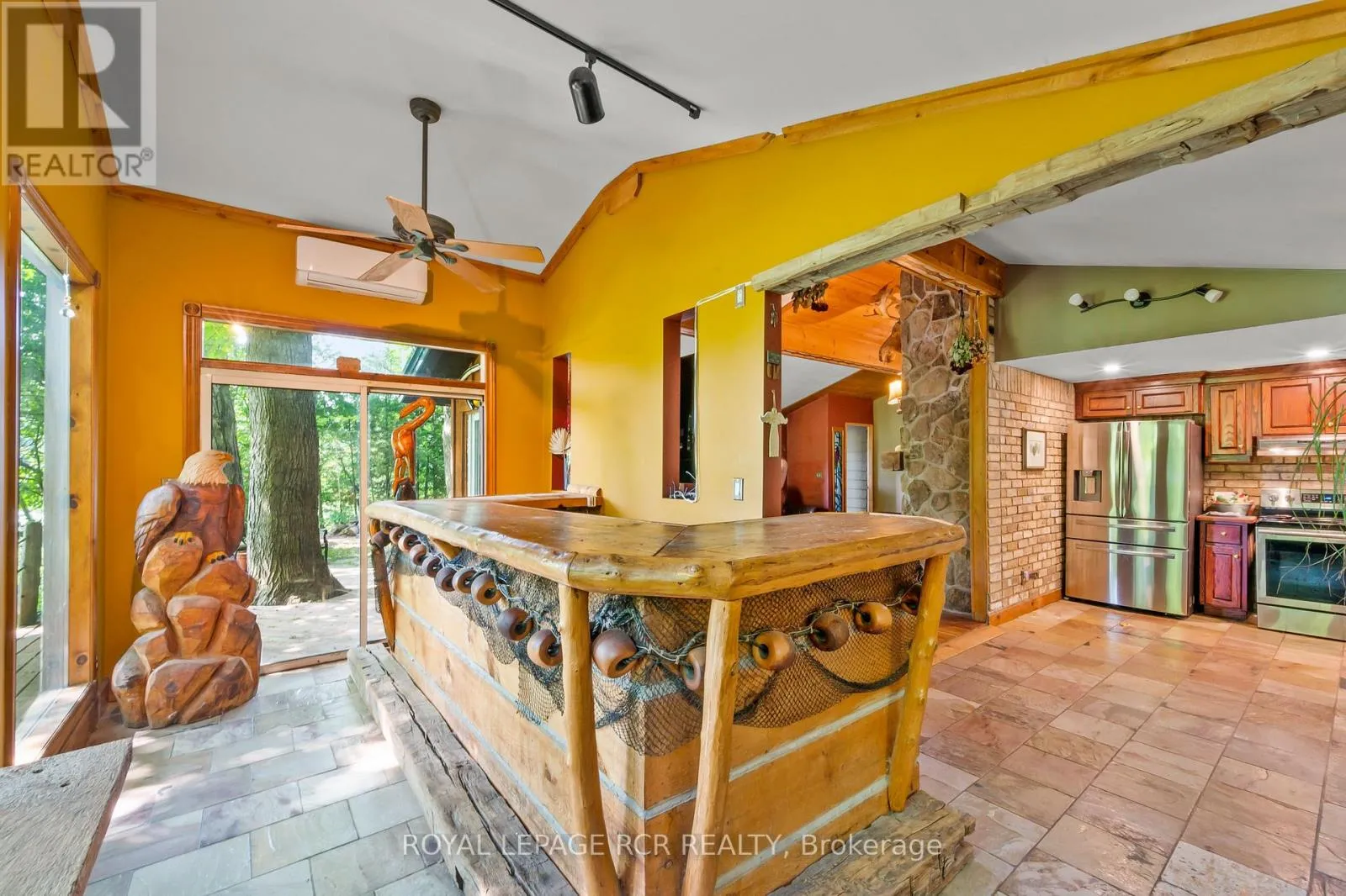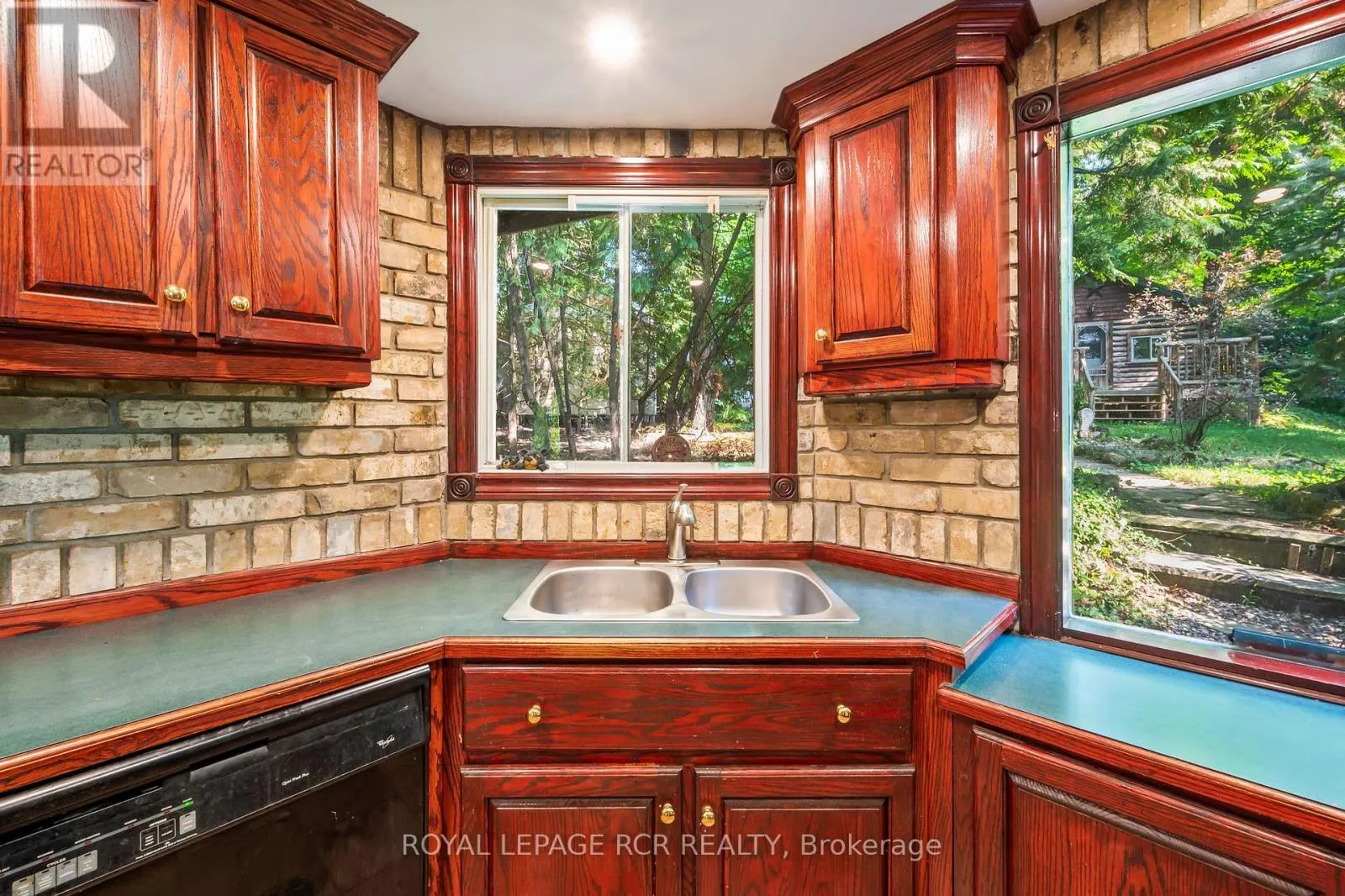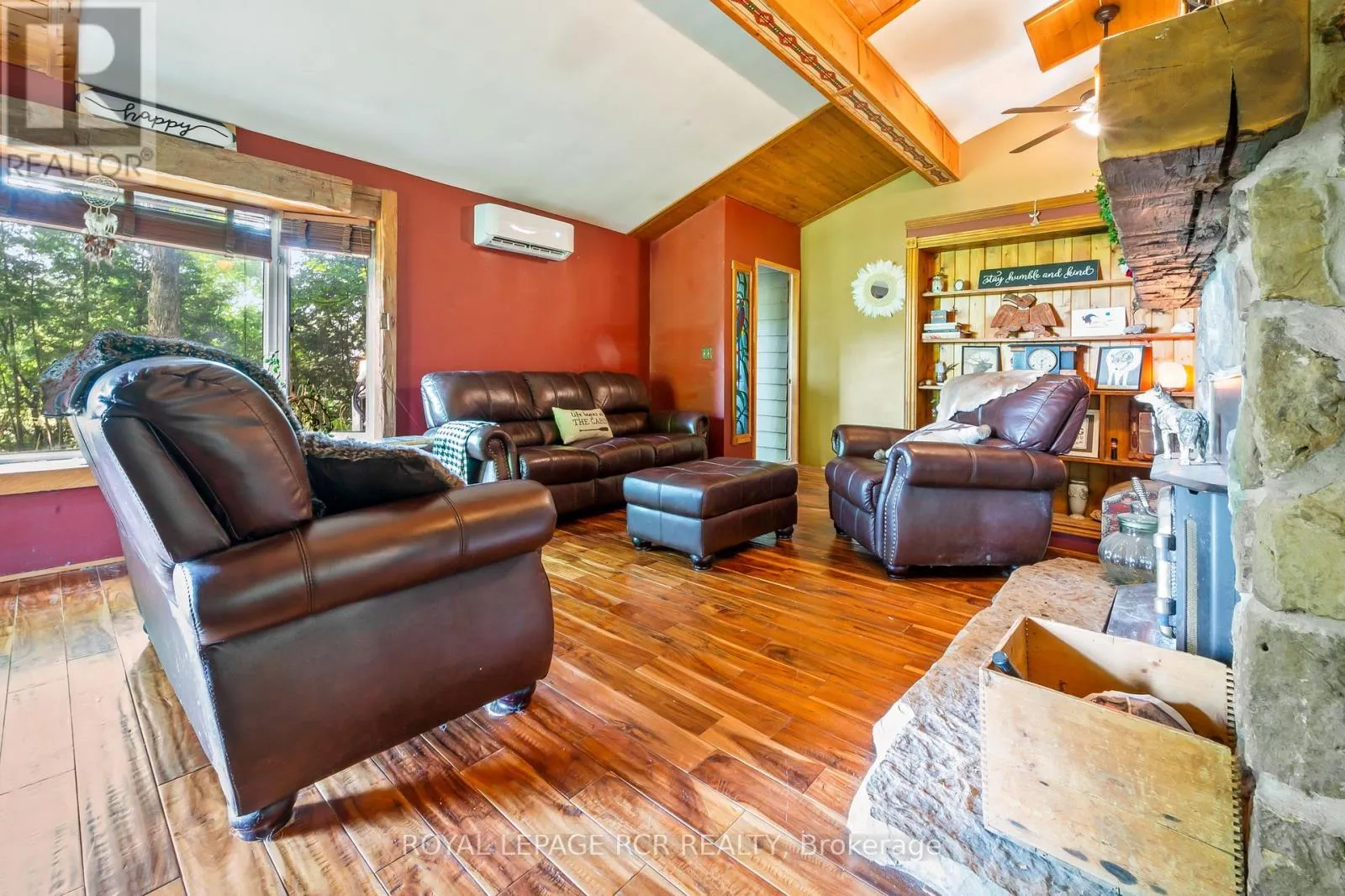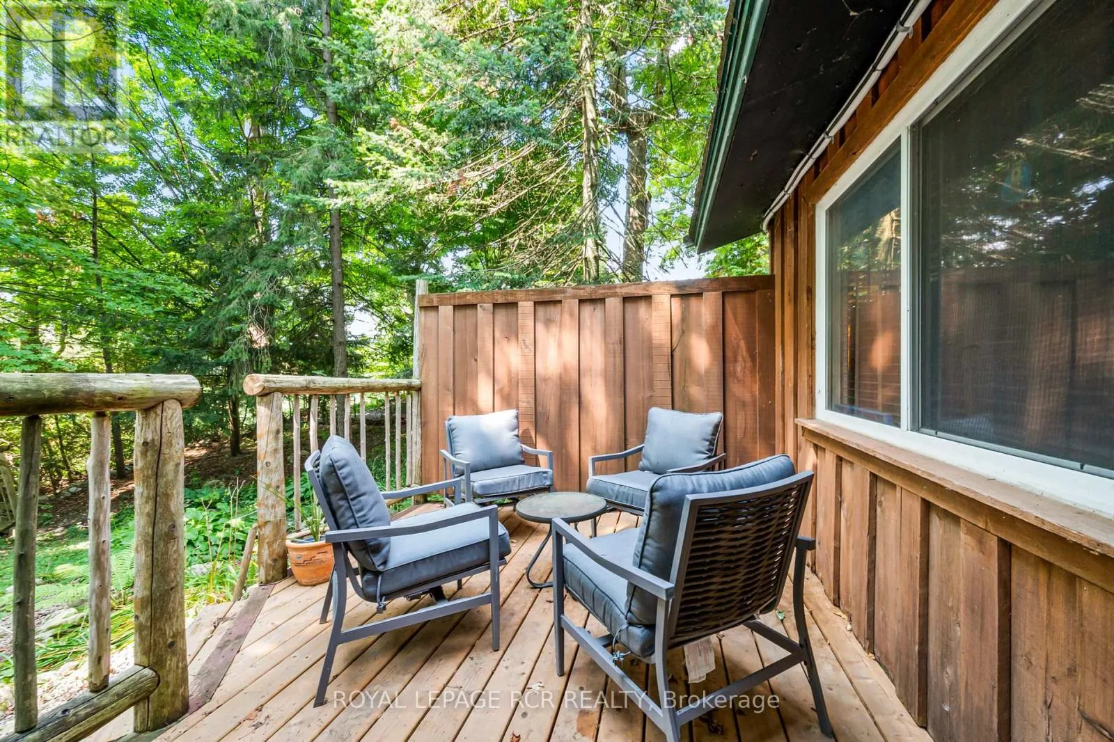 Cross Streets: 22/Hilltop/Frank. ** Directions: South on Hilltop Rd from 22, continue to the end of Frank Lane. Tucked away in the coveted Roman Lake community, this rustic yet refined bungalow offers the ultimate private escape. Whether you're searching for a peaceful weekend hideaway or a place to call home year-round, it's a setting that soothes the soul. Wake to serene lake vistas framed by mature trees, where deer, birds, and other wildlife create a living backdrop. Inside, you're welcomed with soaring vaulted ceilings, an updated kitchen, and an inviting blend of hardwood and slate underfoot. A built-in bar area takes full advantage of sweeping views, making every coffee or cocktail feel special. In the spa-inspired bathroom, heated floors add a touch of indulgence, while a corner jacuzzi-style tub and sleek glass walk-in shower promise relaxation at the end of the day or a refreshing start in the morning. Keep cozy with two fireplaces or rely on the efficiency of a forced air furnace when the seasons shift. Multiple windows let in generous natural light, accenting the warm wood finishes throughout. Step outside and the magic continues. Expansive decks, a private patio, and a charming detached log cabin with hydro provide endless opportunities for hosting, lounging, or simply enjoying the calm. One of the practical perks of the home is the hookup for a backup generator. Situated just minutes from the village of Hillsburgh, which offers small-town charm with welcoming shops, local eateries, and a friendly, walkable main street. For commuters, the location is just a short drive to Erin, Orangeville, and Guelph, with easy access to Georgetown, Milton, and Brampton, making it a comfortable commute to the GTA. (id:27476)