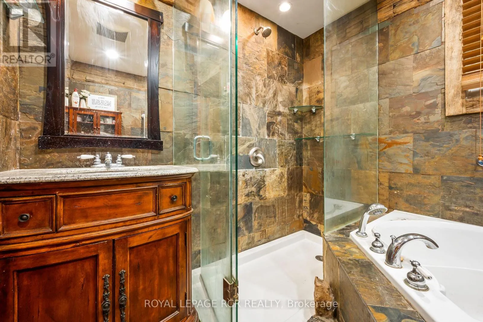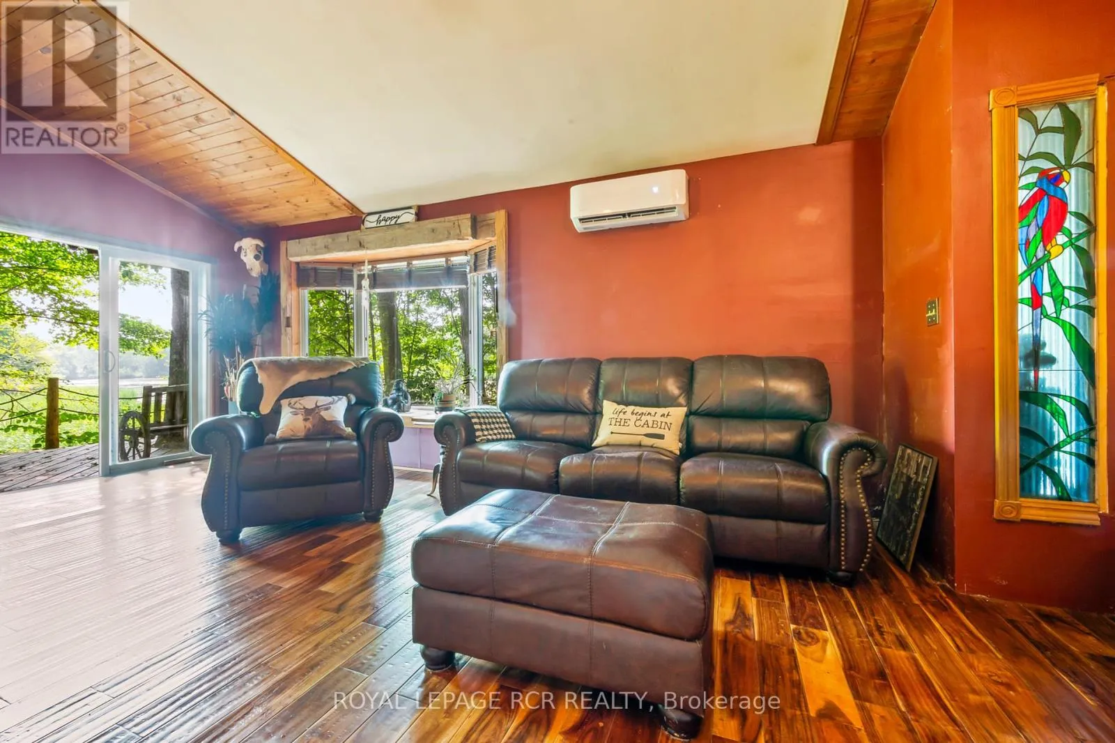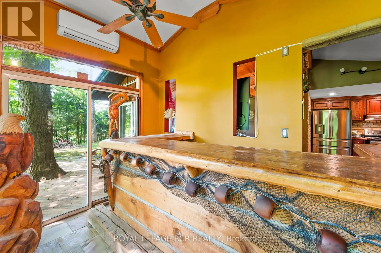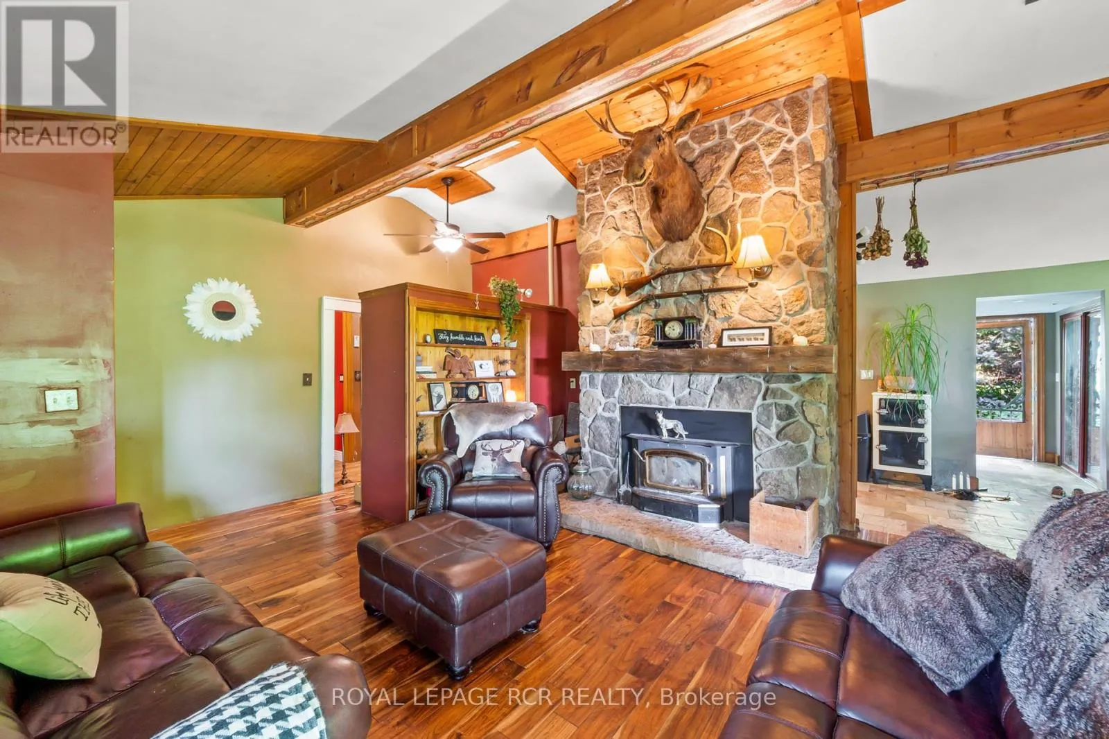 Cross Streets: 22/Hilltop/Frank. ** Directions: South on Hilltop Rd from 22, continue to the end of Frank Lane. Tucked away in the coveted Roman Lake community, this rustic yet refined bungalow offers the ultimate private escape. Whether you're searching for a peaceful weekend hideaway or a place to call home year-round, it's a setting that soothes the soul. Wake to serene lake vistas framed by mature trees, where deer, birds, and other wildlife create a living backdrop. Inside, you're welcomed with soaring vaulted ceilings, an updated kitchen, and an inviting blend of hardwood and slate underfoot. A built-in bar area takes full advantage of sweeping views, making every coffee or cocktail feel special. In the spa-inspired bathroom, heated floors add a touch of indulgence, while a corner jacuzzi-style tub and sleek glass walk-in shower promise relaxation at the end of the day or a refreshing start in the morning. Keep cozy with two fireplaces or rely on the efficiency of a forced air furnace when the seasons shift. Multiple windows let in generous natural light, accenting the warm wood finishes throughout. Step outside and the magic continues. Expansive decks, a private patio, and a charming detached log cabin with hydro provide endless opportunities for hosting, lounging, or simply enjoying the calm. One of the practical perks of the home is the hookup for a backup generator. Situated just minutes from the village of Hillsburgh, which offers small-town charm with welcoming shops, local eateries, and a friendly, walkable main street. For commuters, the location is just a short drive to Erin, Orangeville, and Guelph, with easy access to Georgetown, Milton, and Brampton, making it a comfortable commute to the GTA. (id:27476)