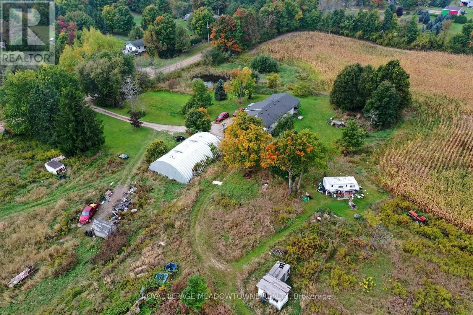 Wellington 50 to Fifth Line Are you looking for a blend of residential comfort with a 98 acre rural opportunity? This could be the location for you. Welcome to 5167 Fifth Line located in the south central rural portion of Erin township. An expansive 98-acre property located just north of Wellington Road 50 , 5minutes from Ballinafad. Whether you're envisioning a private retreat or an entrepreneurial venture, this location offers endless possibilities. The property features 55 workable/farmed acres currently planted in corn. HST is included in the purchase price. The current farmer will harvest the crop this fall, leaving you with a clean slate in the spring, or continue to rent the land to the farmer. Built in 1991 this custom modular pre-fab bungalow built by Quality Homes features 3 good size bedrooms, 1,826 square feet on the main floor that is waiting for your personal touch and in need of TLC. With an attached single-car garage, two full bathrooms, one powder room, and an unfinished basement, there is room to create something special here. The essentials are in place-forced air gas furnace (2011), well, septic pumped and inspected in 2024, 200-amp breaker panel plus a pony panel to service the steel Quonset outbuilding measuring 55'x38' sitting on a concrete pad. This building adds to the functionality of the property, perfect for storage or a workshop. Located in a serene rural setting, yet close enough to town, this property is a rare find. With some land clearing and tile drainage, there's potential to expand the workable land by another 10-15 acres. Spend time by the pond and enjoy the sounds of Sandhill Cranes, Deer, Turkey, Ducks and Geese. The spring peepers may even become your new favorite band. If you're seeking a peaceful lifestyle with room to grow, this could be your perfect match. **EXTRAS** Features a Quonset building 55'x38' with hydro and concrete floor. This custom home was built by Quality Homes, inside a factory, and installed on the lot in 1991. (id:27476)
