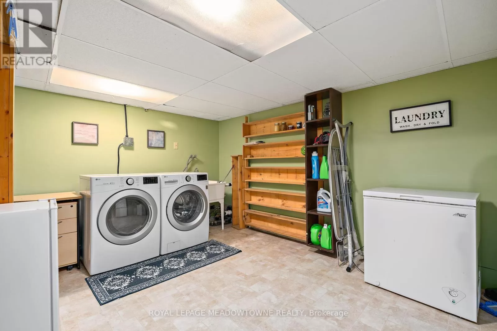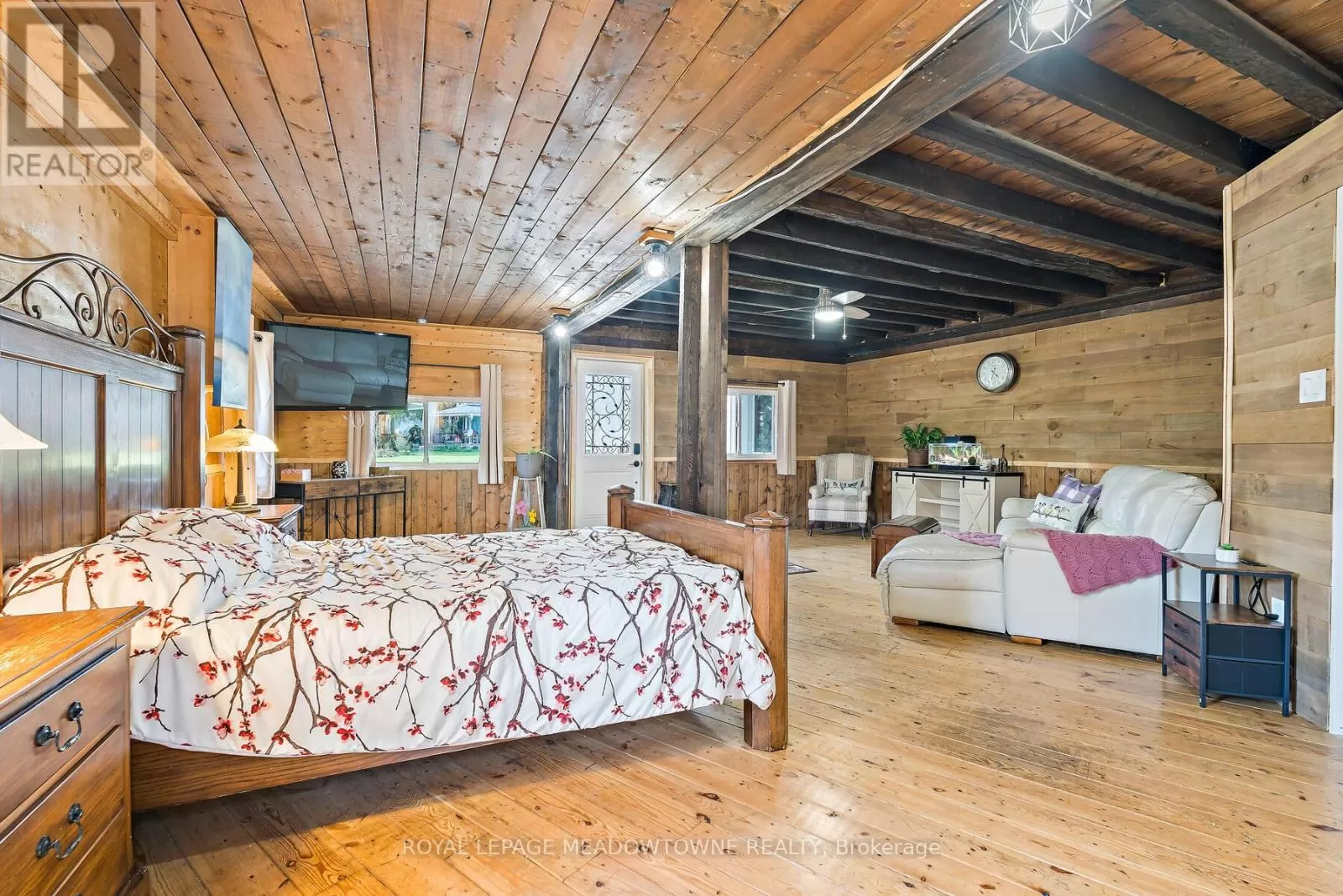 Sideroad 24 & Fifth Line Incredible potential awaits you at 9201 Sideroad 24. Located in the charming hamlet of Cedar Valley. This property used to be the old Cedar Valley General Store. So if you are looking for a home with character, history and charm then look no further. With just over 1400 sq ft, this home is much larger than it looks. From the moment you walk through the front door, you can feel the warmth exuding from every room. Large open concept living/dining room area is a wonderful entertaining space for those big family get togethers. Updated kitchen has ample cupboard and counter space for you, laminate floors and large windows let in loads of natural sunlight while allowing you to look out into your own little backyard garden sanctuary. Generous primary master bedroom with his and hers closets, wood floors, French doors and windows all the way around. It is like your private retreat. Second bedroom looks out over the backyard and has built in shelves along with a single closet for loads of storage. 4 piece bathroom is conveniently located beside the primary bedroom and is bright with a window in the shower. There is a spectacular bonus room that can be just about anything, family room, games room, man cave, studio, the possibilities are endless, wood floors, great storage, separate entrance at the front and walkout to the backyard. Lower level is a full basement that has your laundry room and provides additional storage and a possible workshop space if so desired. Enjoy your fully fenced backyard paradise, with its beautiful perennial gardens. Sitting on the back deck or around the bonfire pit embrace all the magic this property has to offer. You have a garden shed for extra storage out back. Charm, character and functionality, you have it all here. This is a property that is perfect for first time home buyers or for those looking to downsize. You don't want to miss this little piece of history!! (id:27476)