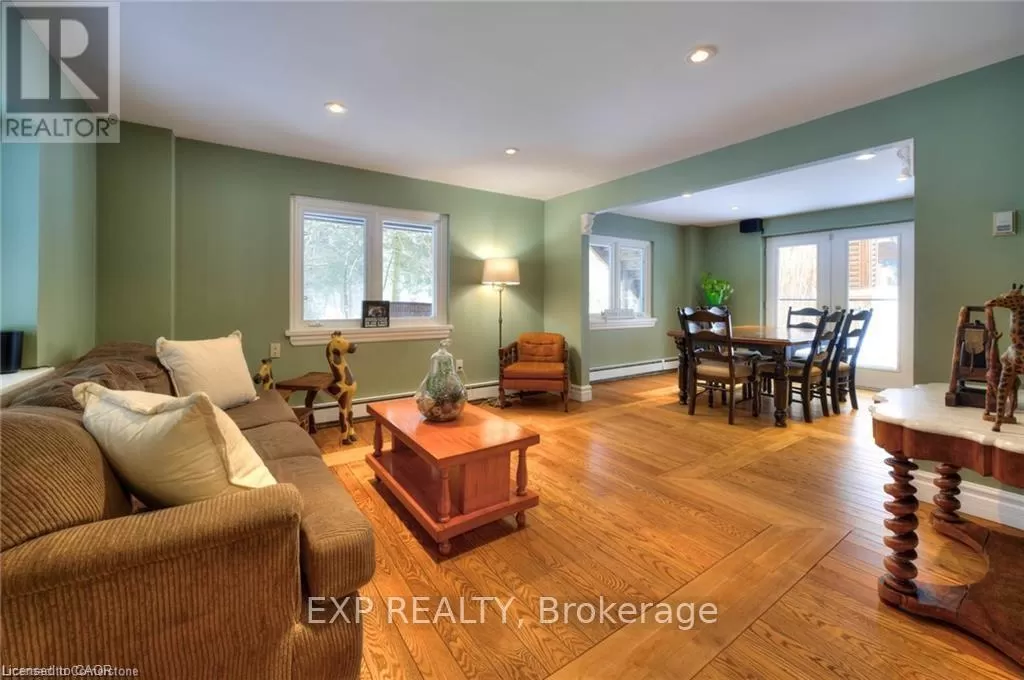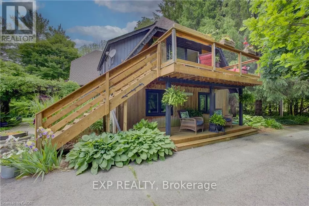 Cross Streets: Wellington Rd 22 / 10 Line. ** Directions: Turn off County Rd 22 onto Tenth line. Discover unparalleled privacy on this remarkable, stress melting, 8 acre retreat, where nature and lifestyle blend seamlessly in your private escape a place the owners describe as their very own resort. With no neighbors in sight, you'll enjoy the tranquility and seclusion of this amazing oasis creating a feeling of being worlds away yet close enough for everyday convenience. This property offers an exceptional living experience, surrounded by walking trails perfect for year round adventures, close to snowmobile trails and many off road adventure opportunities. The options for this property are only limited by your imagination, from potential hobby farm, ATV trails, housing an existing business, start your own or just enjoy the beauty of nature. The centerpiece of this property is the stunning four-bedroom, three bathroom (2+1) one of a kind custom side split home. A striking spiral staircase takes center stage, adding architectural charm. The natural light floods every corner, creating a warm and inviting ambiance. While the top floor balcony invites you to savor your morning coffee amidst trees and picturesque views. The expansive primary suite offers abundant storage and space with endless potential to create your own spa like ensuite. Entertain effortlessly in the spacious living areas or take the gathering outdoors to the above ground heated pool deck and bar. Car enthusiasts and hobbyists will marvel at the shop with a double car garage in addition to the 400 sqft workshop and similar size stable area that can be used as additional storage or to keep animals. This is more than a home, its a private sanctuary where you can immerse yourself in nature and create unforgettable memories. Whether you're exploring the trails, hosting friends and family, or simply unwinding in your own oasis, 5794 Tenth Line is truly unlike any other. (id:27476)