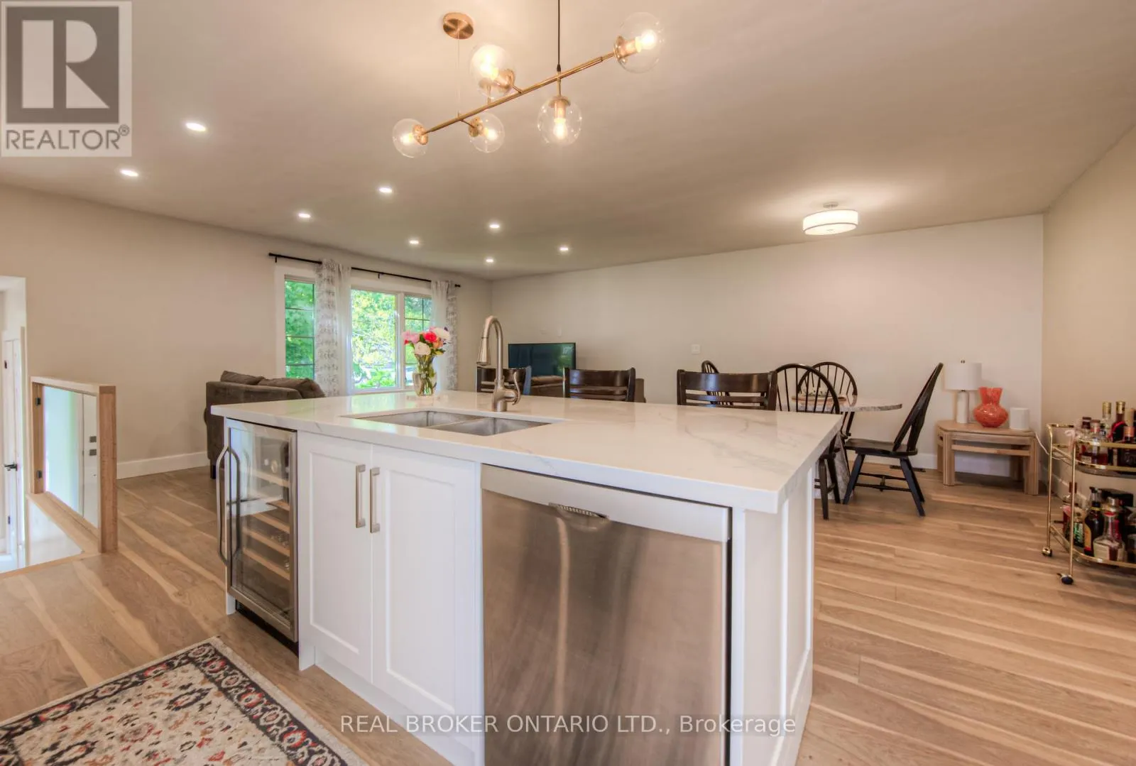 Cross Streets: Dundas St W. ** Directions: From Dundas St W to Carberry Rd. Welcome to 23 Carberry Road, a beautifully appointed raised bungalow nestled on an oversized lot in one of Erins most peaceful and sought-after cul-de-sacs. This elegant 3-bedroom, 2-bathroom home boasts over 2,400 sqft of total living space and is the perfect setting for families seeking room to grow or for those looking to downsize without compromising on quality, comfort, or style. As you enter, you're greeted by a bright and airy open-concept layout that showcases high-end finishes throughout. New Oak stairs, engineered hardwood flooring flows seamlessly through the main living areas, while large, newly installed windows bathe the space in natural light. The living and dining areas offer a warm and inviting space to entertain or unwind, with sightlines extending into the heart of the home a custom chefs dream kitchen. The kitchen is designed for culinary creativity. It features ample prep space, a gas range, and a large refrigerator, all surrounded by sleek cabinetry and elegant finishes. The backyard is perfect for hosting a summer barbecue or enjoying a quiet morning coffee. Each of the three bedrooms and two full bathrooms has been tastefully updated with modern fixtures and finishes. The partially finished basement adds even more versatility, offering development potential for a recreation room, home office, gym, or additional living quartersthe choice is yours. The expansive lot allows for endless possibilities, from gardening and outdoor entertaining to a space for a future swimming pool. Located in a quiet, family-friendly neighbourhood with mature trees, park and a welcoming community, this home is just minutes from historic downtown for shopping, restaurants and local amenities. Dont miss this rare opportunity to own a turnkey home with space, style, and potential in charming Erin. (id:27476)