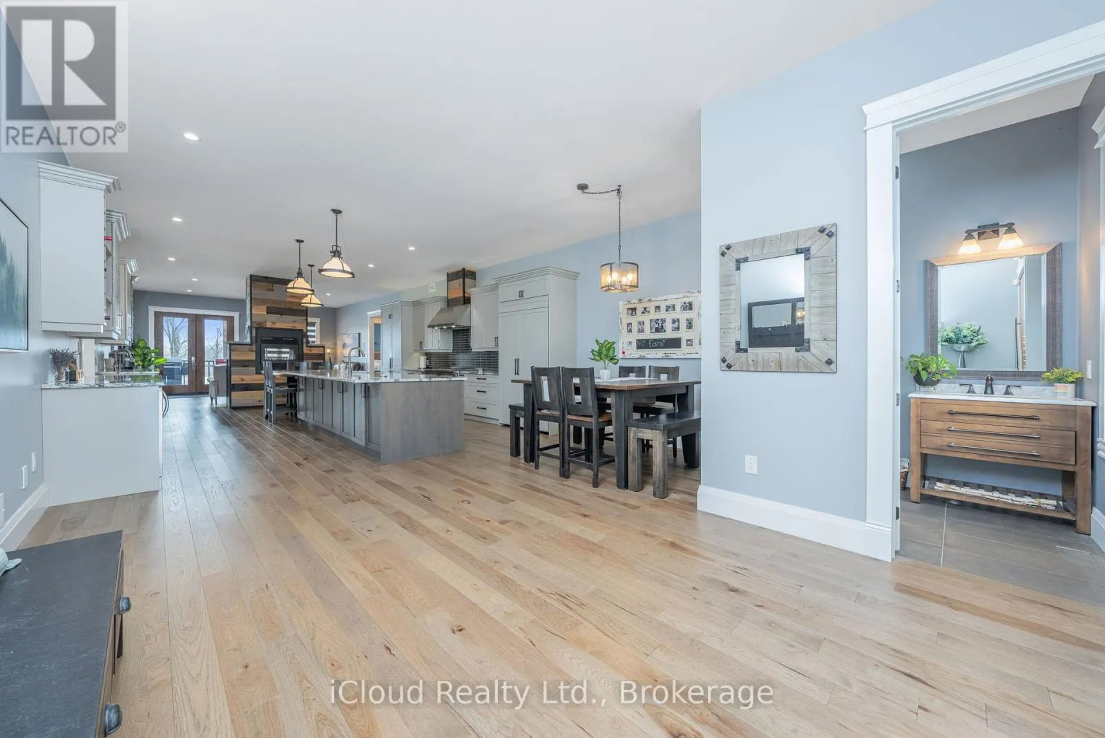 Cross Streets: Trafalgar Rd & Wellington 22 Rd. ** Directions: Trafalgar Rd to Wellington 22 Rd. This extraordinary 5-bedroom, 5-bathroom custom-built bungalow offers over 5,000 sq ft of beautifully finished living space on 9 peaceful, tree-lined acres in sought-after Erin. A perfect blend of luxury and functionality, the home features hardwood flooring throughout the main level and a chefs dream kitchen with a large quartz island, top-of-the-line appliances, and a two-way fireplace connecting to the inviting living room. A walkout from the living room leads to a covered deck overlooking the stunning property ideal for entertaining or quiet evenings in nature. The primary suite is a true retreat, featuring a spa-inspired ensuite with a spacious 6x6 open-framed shower, freestanding tub warmed by a gas fireplace, and elegant finishes. Two additional main floor bedrooms each offer 4-piece ensuites and double closets, providing comfort and privacy for family or guests. The fully finished walk-out basement boasts a spacious layout with heated floors, a second kitchen, games area, cozy great room with gas fireplace, dedicated theatre room with Dolby Atmos 9.1 surround sound, one bedroom currently used as a home gym, and a second bedroom with a semi-ensuite featuring another 6x6 open-framed shower. Step outside to a private patio with gazebo, hot tub and built-in fire nook perfect for relaxation. Additional highlights include a heated garage with epoxy flooring, whole-home 22kW automatic generator, reverse osmosis water treatment system, and scenic pond separating two 4+ acre parcels each with its own driveway and natural gas hookup. Previously approved for a second building (with septic and well), this property offers luxury, flexibility, potential future development, and country charm in one unmatched package. (id:27476)