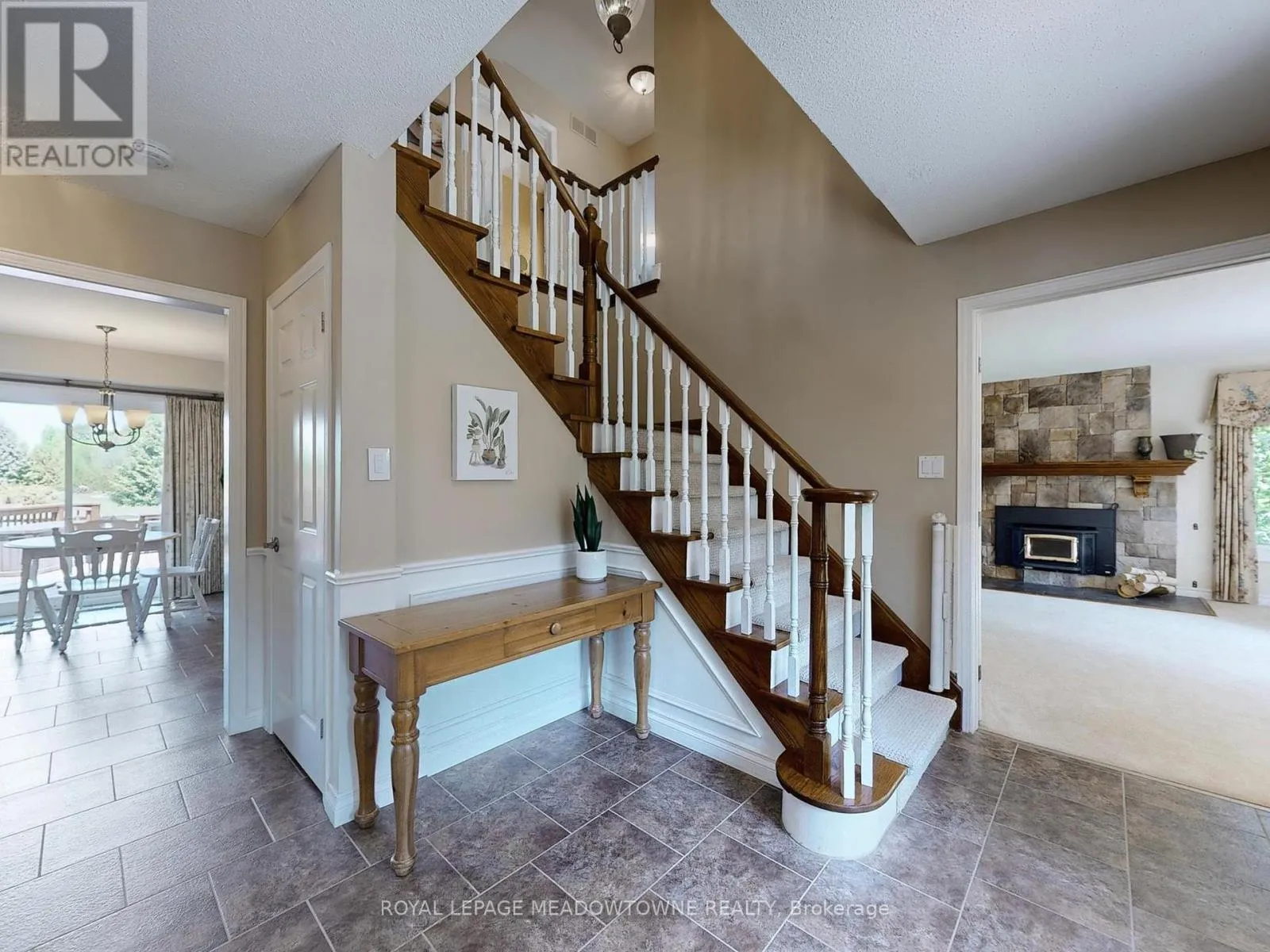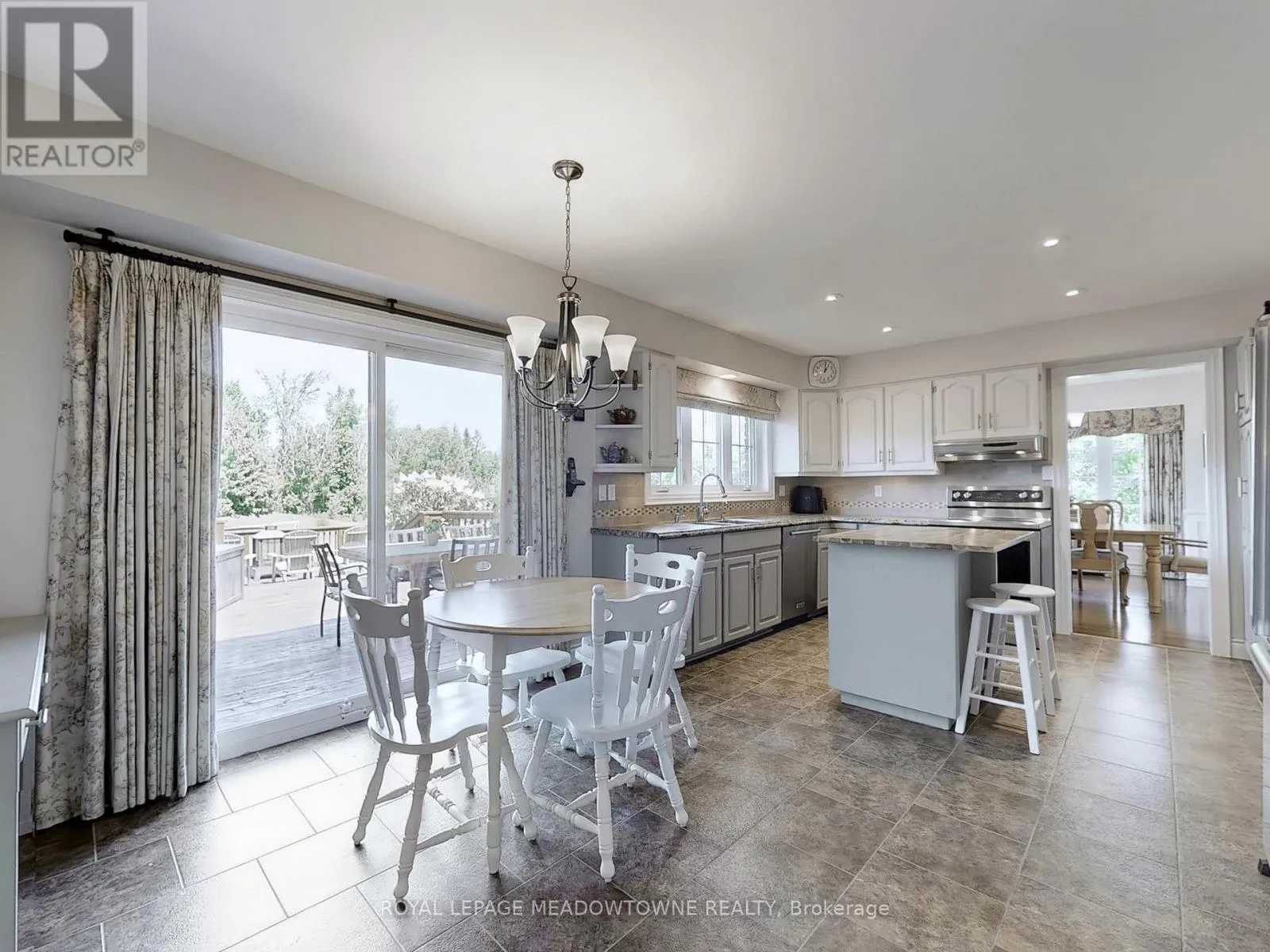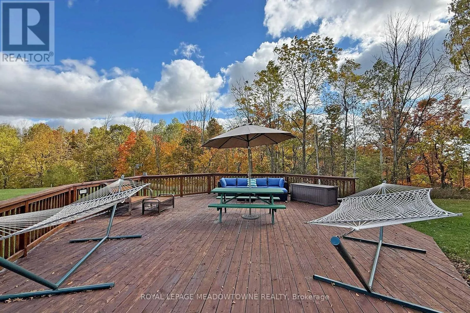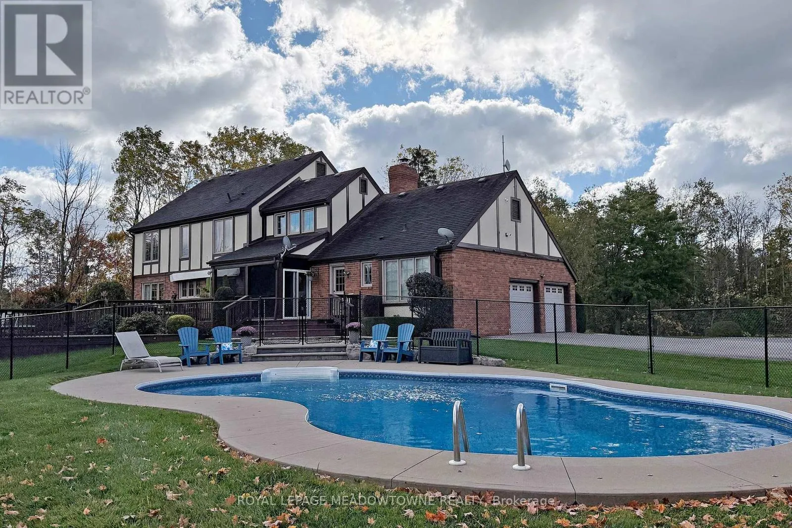 Cross Streets: 32nd Sdrd & First Line. ** Directions: South Well Rd 50 North 32nd Sdrd Corner of Erin/Halton Townline & First Line [Dublin]. Set on 10 scenic acres, this bright home offers more than 4,000 sq. ft. of living space with the freedom for your family to grow, play, and enjoy nature every day. The large eat-in kitchen includes a walkout to a spacious multi-tier deck perfect for family meals, entertaining or watching the sunrise. The family room features a cozy wood-burning fireplace and a walkout to a sunroom complete with a hot tub for year-round relaxation. An open-concept living and dining room provides plenty of space for gatherings and special occasions. Upstairs, the generous bedrooms give everyone their own space to sleep, study and play. The principal suite includes a private 4-piece ensuite with a luxurious glass walk-in shower. The finished basement adds even more living space ideal for a playroom, gym, games area, or movie nights plus plenty of storage space. Outdoors, enjoy endless activities in your own backyard. The covered patio offers a front-row seat to a stunning yard, complete with a creating a playground for all ages. Spend summers by the heated inground pool, explore the property trails all year round and there is room to build a hockey rink in the winter. Harvest apples, pears, grapes and raspberries with your own produce from the 25 x 50 fenced vegetable garden. Cost-efficient geothermal heating and cooling keeps you comfortable year round. High-speed fibre internet provides reliable service for streaming services, working or learning from home. The long paved driveway leads 10 plus car parking and an oversized 2-car garage with inside access. Recent updates include oversized thermal windows, R-50 attic insulation, new fascia and eavestrough, a pool heater and pump. CLTIP tax credits reduce property taxes.This peaceful rural retreat sits on the corner of two paved roads and has a Halton Hills address giving you the benefits of Municipal services and conveniently close to Georgetown and Acton. Minutes to the Acton GO train, schools, shops, churches, and golf courses. (id:27476)