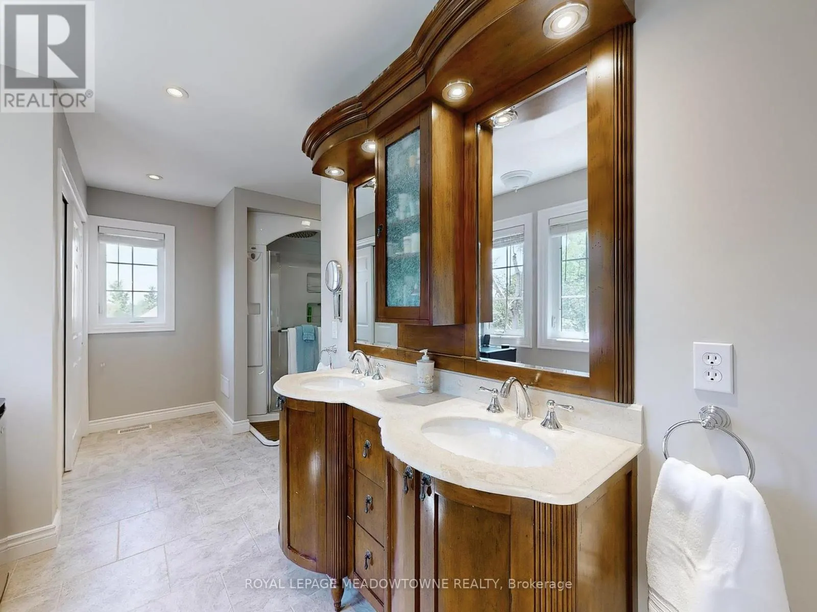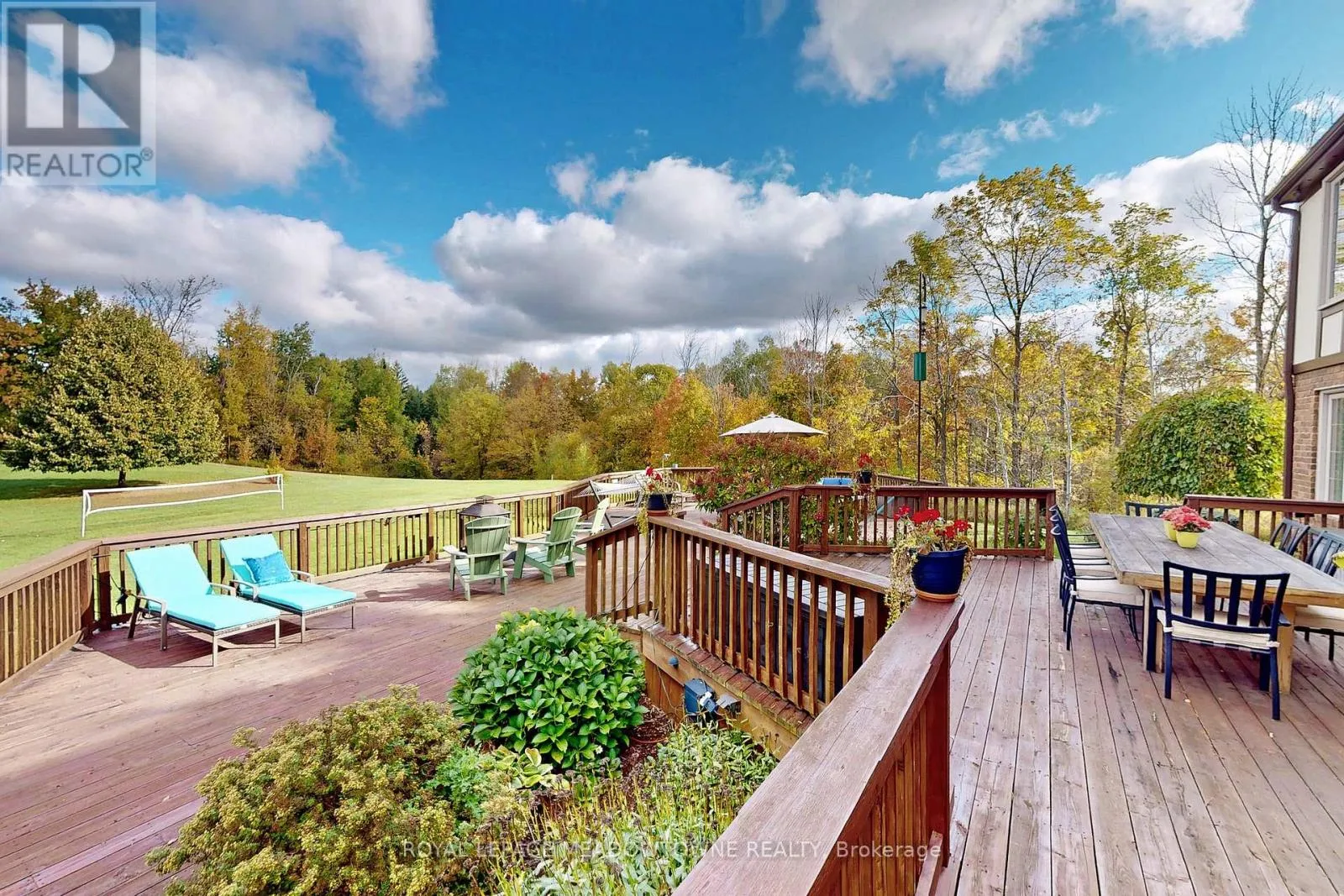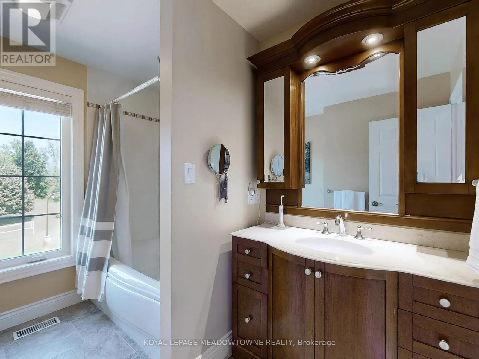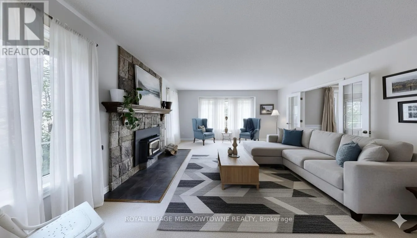 Cross Streets: 32nd Sdrd & First Line. ** Directions: South Well Rd 50 North 32nd Sdrd Corner of Erin/Halton Townline & First Line [Dublin]. Set on 10 scenic acres, this bright home offers more than 4,000 sq. ft. of living space with the freedom for your family to grow, play, and enjoy nature every day. The large eat-in kitchen includes a walkout to a spacious multi-tier deck perfect for family meals, entertaining or watching the sunrise. The family room features a cozy wood-burning fireplace and a walkout to a sunroom complete with a hot tub for year-round relaxation. An open-concept living and dining room provides plenty of space for gatherings and special occasions. Upstairs, the generous bedrooms give everyone their own space to sleep, study and play. The principal suite includes a private 4-piece ensuite with a luxurious glass walk-in shower. The finished basement adds even more living space ideal for a playroom, gym, games area, or movie nights plus plenty of storage space. Outdoors, enjoy endless activities in your own backyard. The covered patio offers a front-row seat to a stunning yard, complete with a creating a playground for all ages. Spend summers by the heated inground pool, explore the property trails all year round and there is room to build a hockey rink in the winter. Harvest apples, pears, grapes and raspberries with your own produce from the 25 x 50 fenced vegetable garden. Cost-efficient geothermal heating and cooling keeps you comfortable year round. High-speed fibre internet provides reliable service for streaming services, working or learning from home. The long paved driveway leads 10 plus car parking and an oversized 2-car garage with inside access. Recent updates include oversized thermal windows, R-50 attic insulation, new fascia and eavestrough, a pool heater and pump. CLTIP tax credits reduce property taxes.This peaceful rural retreat sits on the corner of two paved roads and has a Halton Hills address giving you the benefits of Municipal services and conveniently close to Georgetown and Acton. Minutes to the Acton GO train, schools, shops, churches, and golf courses. (id:27476)