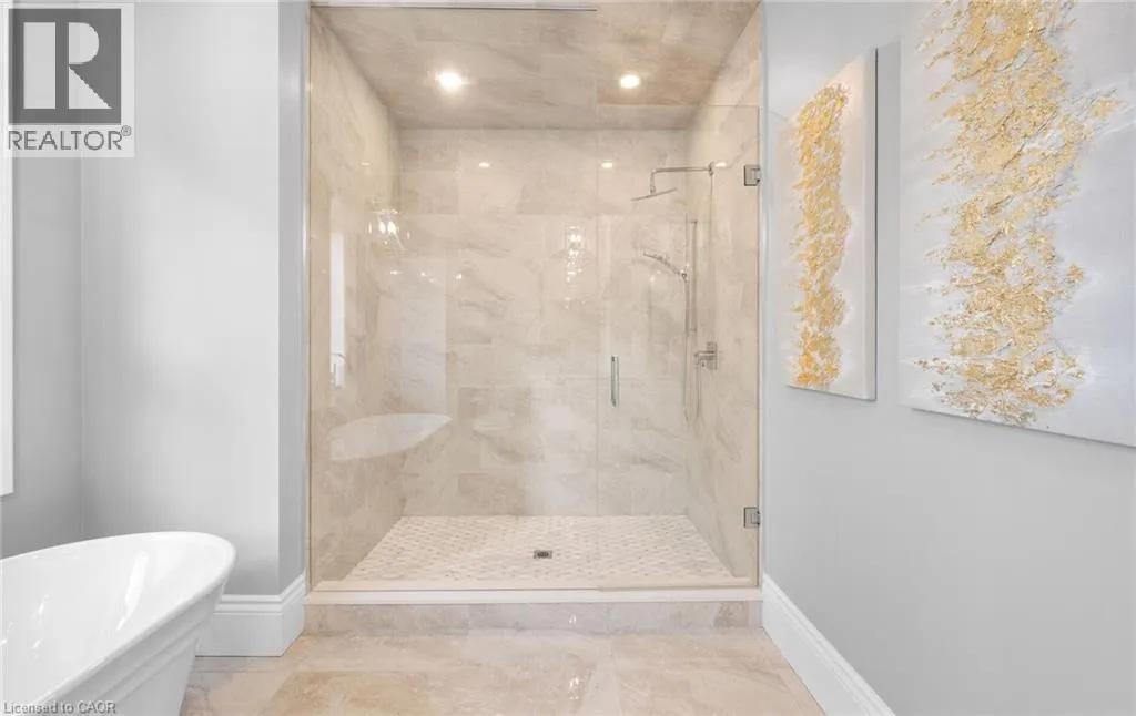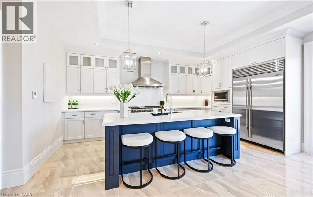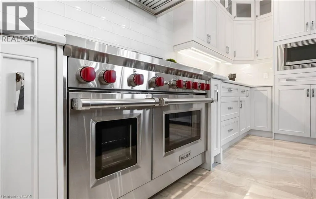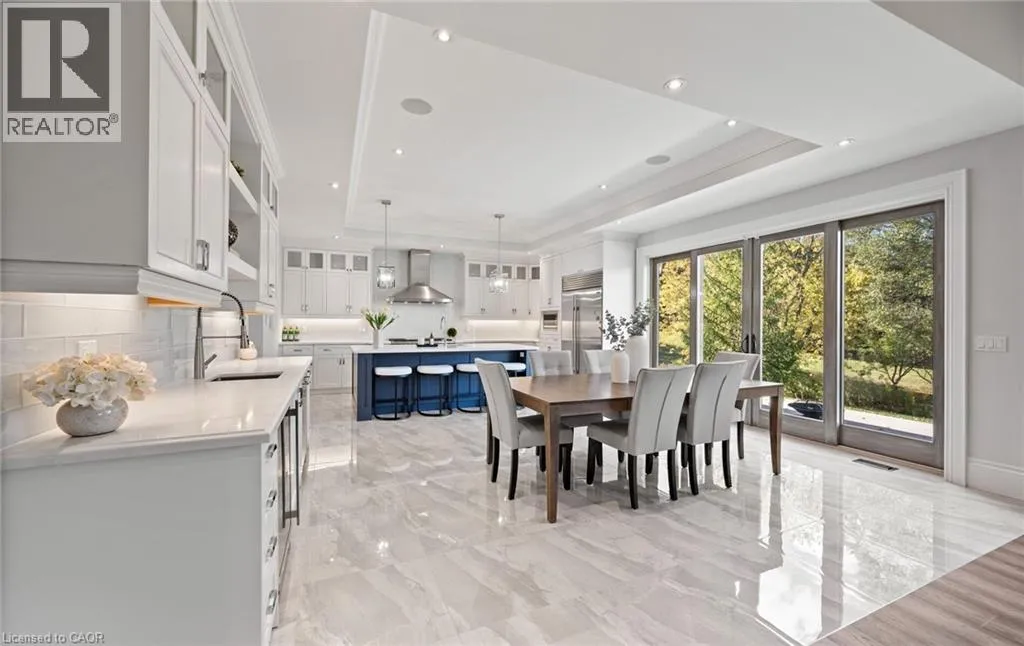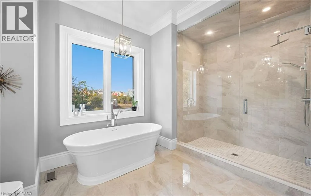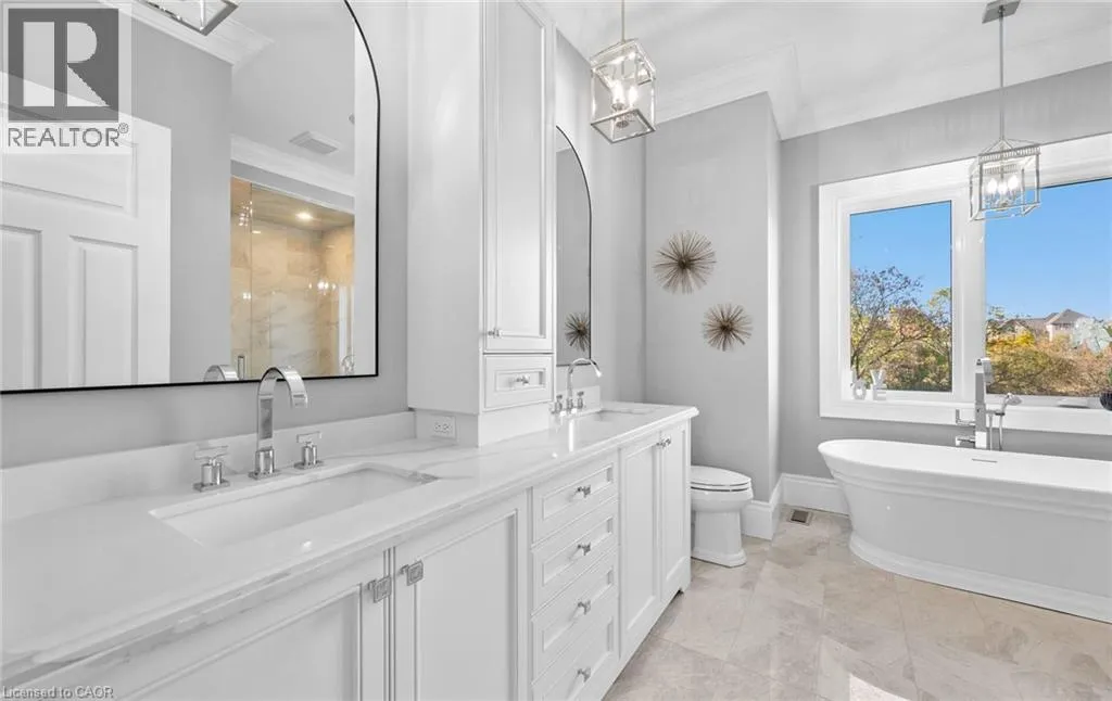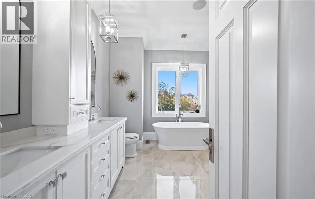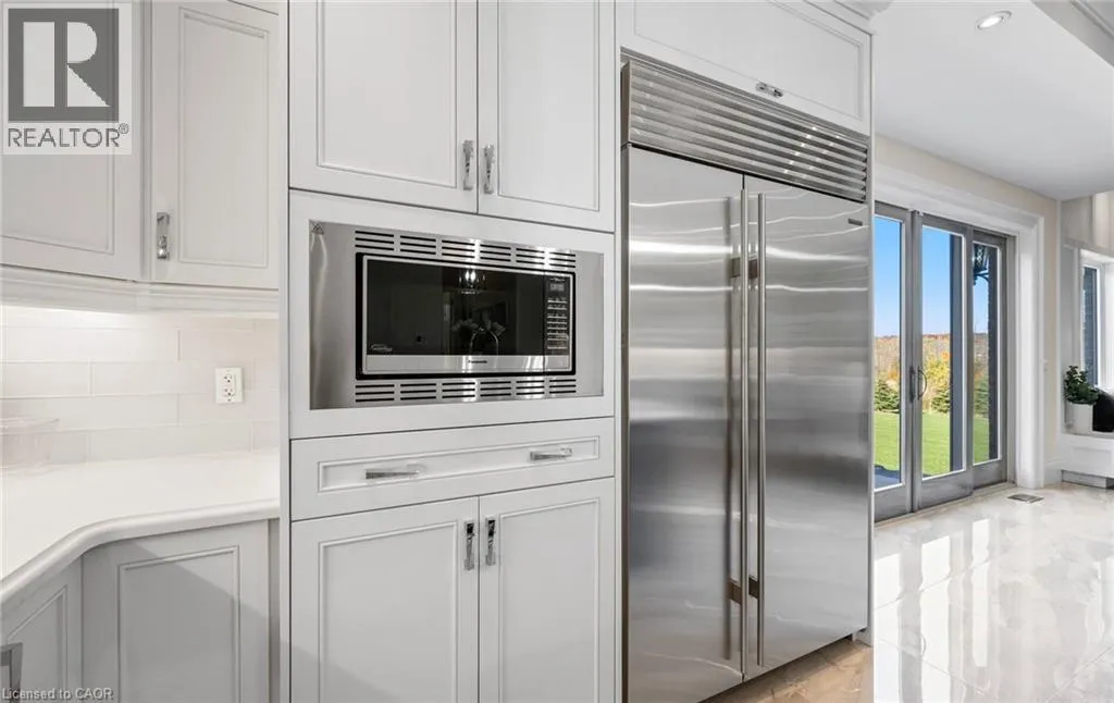 Trafalgar & 32 Sideroad Unmatched Luxury Living - A Custom Estate Beyond Compare. 3916 Sq Ft Bungaloft | 1 Acre Lot | Discover a rare opportunity to own a truly one-of-a-kind custom estate home, built with an unparalleled level of craftsmanship and over $300,000 in high-end inclusions that redefine quality and luxury. Situated on an expansive 1-acre lot, this 4+1 bedroom Bungaloft offers over 5600 sq ft of finished living space across three meticulously designed levels. From the moment you arrive, the elegant 8' Sapcle Mahogany entry system and French clad exterior French doors set the tone for what lies within-sophistication, comfort, and distinction. Main Floor Highlights: Soaring 10-foot ceilings, rich plaster crown moldings, and oversized 9.25 baseboards create a grand yet inviting feel. Primary bedroom retreat with his-and-hers walk-in closets and an opulent 5-piece ensuite featuring freestanding soaker tub, rain shower, and Kohler fixtures. Designer kitchen with granite, Oversized island, 48 uppers with crown molding, Sub-Zero 48 fridge/freezer, Wolf 48 range, and custom cabinetry extending into the laundry room. Spacious great room with cathedral ceiling, full-view Napoleon fireplace, and panoramic windows .Low-voltage in-floor heating around kitchen island, bathroom vanities, toilets, laundry areas. Geothermal heating and cooling, tankless water heater (owned).Oversized 4-car garage, fully insulated, drywalled, taped, and primed with carriage-style 9x7 doors and belt drive openers. Three generously sized bedrooms on second floor, 9-foot ceilings and continued designer finishes. Home gym, 5th bedroom with 3-piece semi ens. Expansive recreation room with walk out to backyard. Custom built-in bar with island - easily converted into a second kitchen for multi-generational living or in-law suite. This is more than a home-it's a statement of success, comfort, and enduring quality. Don't miss this rare opportunity to own one of the most impressively built estate homes in the region! (id:27476)