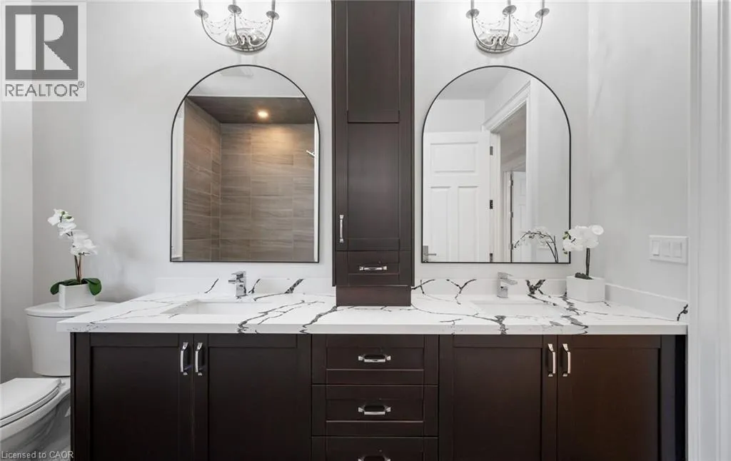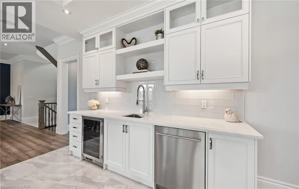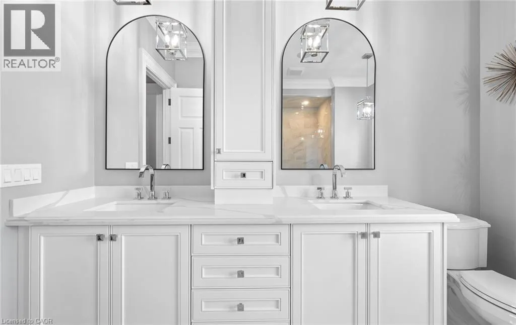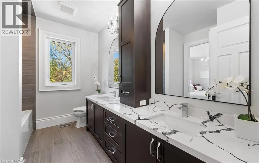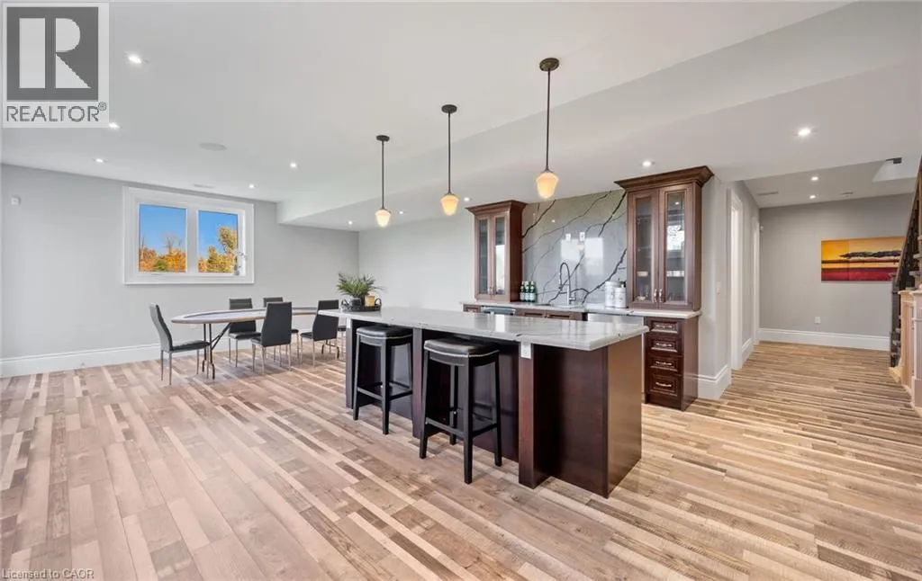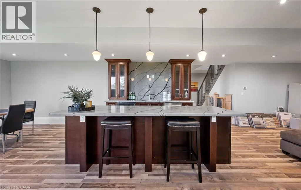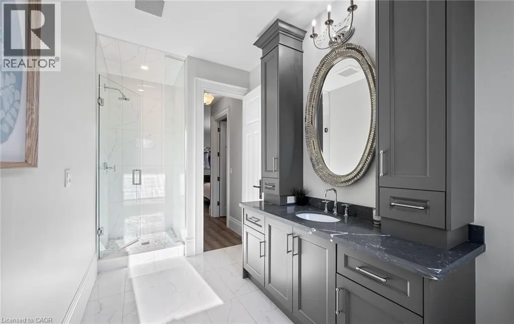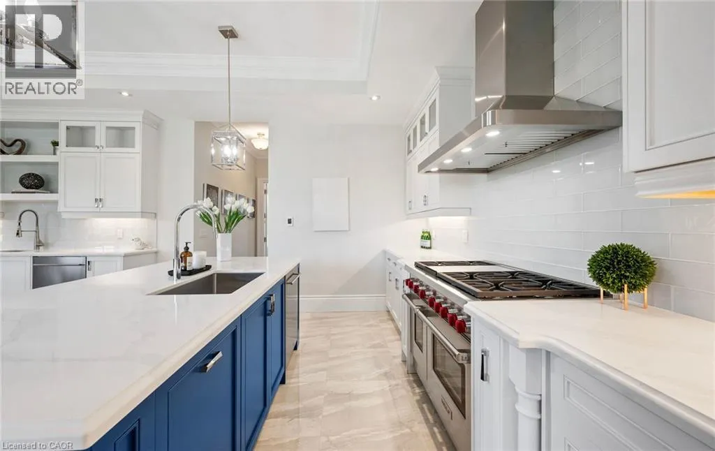 Trafalgar & 32 Sideroad Unmatched Luxury Living - A Custom Estate Beyond Compare. 3916 Sq Ft Bungaloft | 1 Acre Lot | Discover a rare opportunity to own a truly one-of-a-kind custom estate home, built with an unparalleled level of craftsmanship and over $300,000 in high-end inclusions that redefine quality and luxury. Situated on an expansive 1-acre lot, this 4+1 bedroom Bungaloft offers over 5600 sq ft of finished living space across three meticulously designed levels. From the moment you arrive, the elegant 8' Sapcle Mahogany entry system and French clad exterior French doors set the tone for what lies within-sophistication, comfort, and distinction. Main Floor Highlights: Soaring 10-foot ceilings, rich plaster crown moldings, and oversized 9.25 baseboards create a grand yet inviting feel. Primary bedroom retreat with his-and-hers walk-in closets and an opulent 5-piece ensuite featuring freestanding soaker tub, rain shower, and Kohler fixtures. Designer kitchen with granite, Oversized island, 48 uppers with crown molding, Sub-Zero 48 fridge/freezer, Wolf 48 range, and custom cabinetry extending into the laundry room. Spacious great room with cathedral ceiling, full-view Napoleon fireplace, and panoramic windows .Low-voltage in-floor heating around kitchen island, bathroom vanities, toilets, laundry areas. Geothermal heating and cooling, tankless water heater (owned).Oversized 4-car garage, fully insulated, drywalled, taped, and primed with carriage-style 9x7 doors and belt drive openers. Three generously sized bedrooms on second floor, 9-foot ceilings and continued designer finishes. Home gym, 5th bedroom with 3-piece semi ens. Expansive recreation room with walk out to backyard. Custom built-in bar with island - easily converted into a second kitchen for multi-generational living or in-law suite. This is more than a home-it's a statement of success, comfort, and enduring quality. Don't miss this rare opportunity to own one of the most impressively built estate homes in the region! (id:27476)