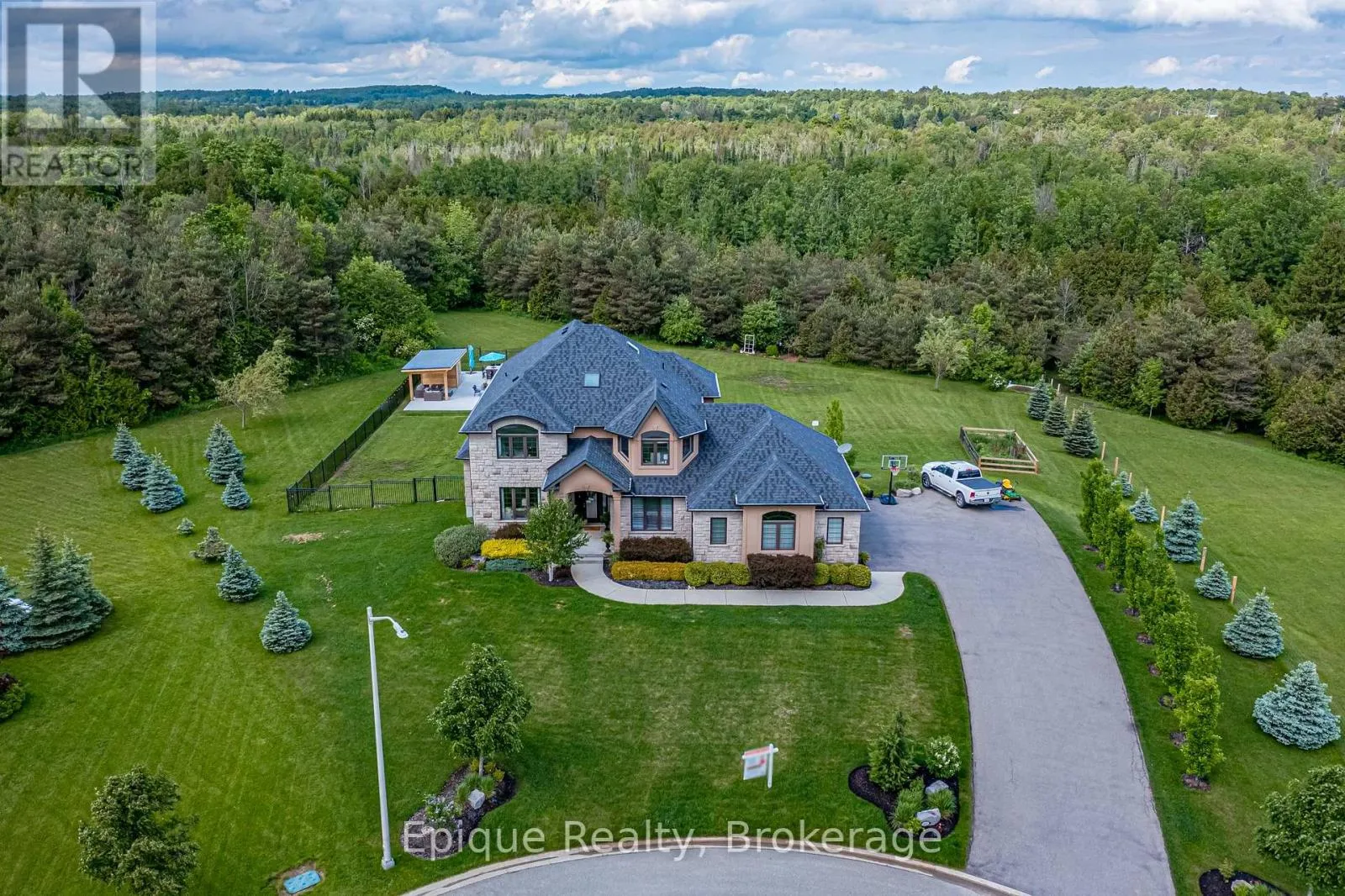 Cross Streets: Hwy 7/Crewson. ** Directions: Hwy 7 to Crewson's Line to 32 Sideroad to Crewson Court. Luxury lives in this Thomasfield-built trophy home in coveted Crewson Ridge Estates. Situated on 3.4 acres of with no rear neighbours, it features 6 bedrooms, 5 bathrooms, and over 5,200 sq.ft. of finished space. Highlights include 2 kitchens, a heated saltwater pool (built in 2023) with an automated safety cover, geothermal heating, and a lavish primary suite with an 8-piece ensuite, walkout basement w/ rental potential incl. 2 add'l bedrooms and a separate entrance. A backup generator and energy-efficient systems complete this turnkey estate. A two-story grand entrance with 9' ceilings and luxurious finishes, including heated marble floors and scratch-resistant engineered cherry wood floors. Custom Kitchen: Paragon-designed with quartz counters, slab backsplash, soft-close cabinetry, extraordinary storage space, and a striking massive cherry wood island. Outfitted with Brigade commercial-grade appliances for a chefs dream. Living & Dining Areas: Spacious and elegant, designed for entertaining.Family Room: Cosy gathering space featuring shiplap feature wall and gas (propane) fireplace. Upper Floor: Primary Suite: Features two walk-in closets, an 8-piece ensuite with heated floors, and a versatile adjacent space for an office or nursery. Bedrooms: Three additional generously sized bedrooms, offering ample privacy and comfort for family or guests. Walkout Basement: Self-Contained Living Quarters: Offers 1,823 sq. ft. with 9' ceilings, two bedrooms, two bathrooms, and a full kitchen with quartz counters. Large above-grade windows, a family room, office or gym space, and a separate entrance, ideal for rental or multi-generational living. Outdoor Amenities: Heated inground saltwater pool with an automated safety cover, pool cabana, lush forested 3.4-acre property.This exquisite estate seamlessly blends elegance, comfort, and functionality, perfect for luxurious living. (id:27476)