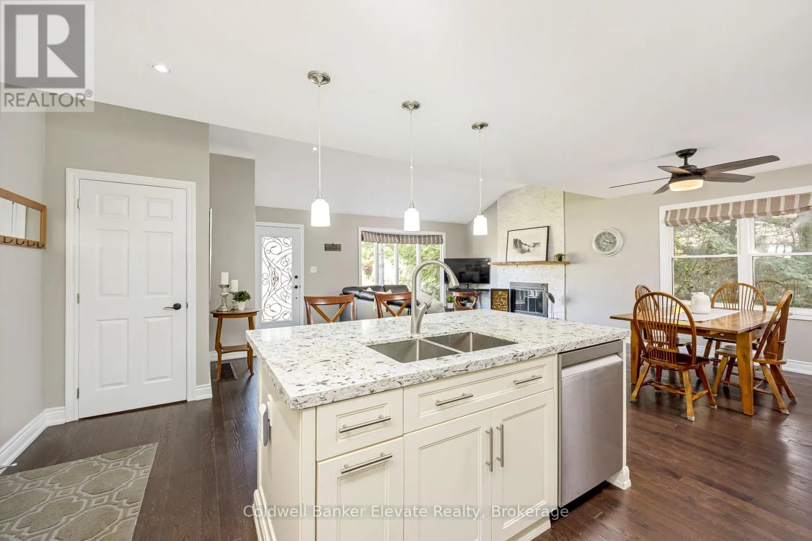 Cross Streets: Lorne/Main. ** Directions: North on 124/Main St to Lorne St. Welcome to charming downtown Erin - where in-town convenience and comfort come together on a quiet, tree-lined street just steps from the library, rec centre, the Elora Cataract Trail, local shops & schools. This move-in-ready bungalow is full of features, starting with the heated in-ground pool in the privately fenced backyard, overlooked by a raised deck and completed with a stone fire pit and an adorable board and batten shed! Set on a generous lot with a single garage, double driveway & additional secured parking pad, there's space for all the people and possessions that matter most. Inside, the open-concept main floor flows effortlessly, with a bright living area designed for gathering around the wood-burning fireplace, and an elegant kitchen and dining space so you can be part of the party while you cook! The main-level primary bedroom with 3-piece ensuite offers single-floor ease for downsizers or young families alike, along with two additional bedrooms and a 4-piece family bathroom. Meanwhile, the walk-out lower level adds incredible flexibility, complete with a kitchenette, spacious rec area with gas fireplace, fourth bedroom, den, and a second 4-piece bathroom, ideal as a potential in-law suite! Additional interior highlights include hardwood flooring throughout the main level and laminate flooring through the lower, stainless steel appliances, recessed lighting, and a smart home integration with an Ecobee thermostat. Whether you're a move-up buyer searching for more space, a young family looking for community, or a downsizer dreaming of walkable living without giving up the extras, this is the place where it all comes together in downtown Erin! (id:27476)