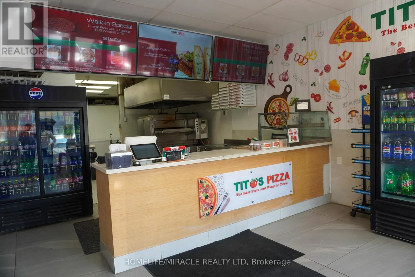 Cross Streets: Main St/Church St W. ** Directions: Turn right on Main St. Tito's Pizza Business in Erin, ON is For Sale. Located at the busy intersection of Main St/Church St W. Surrounded by Fully Residential Neighbourhood, Close to Schools, 30 min from GTA, Banks and Much More. Business with so much opportunity to grow the business even more. Monthly Sales: Approx: $40,000 - $44,000, Rent: $2949.70/m including TMI & HST, Lease Term: Existing + 5 + 5 years Option to renew, Royalty: 900/m. (id:27476)