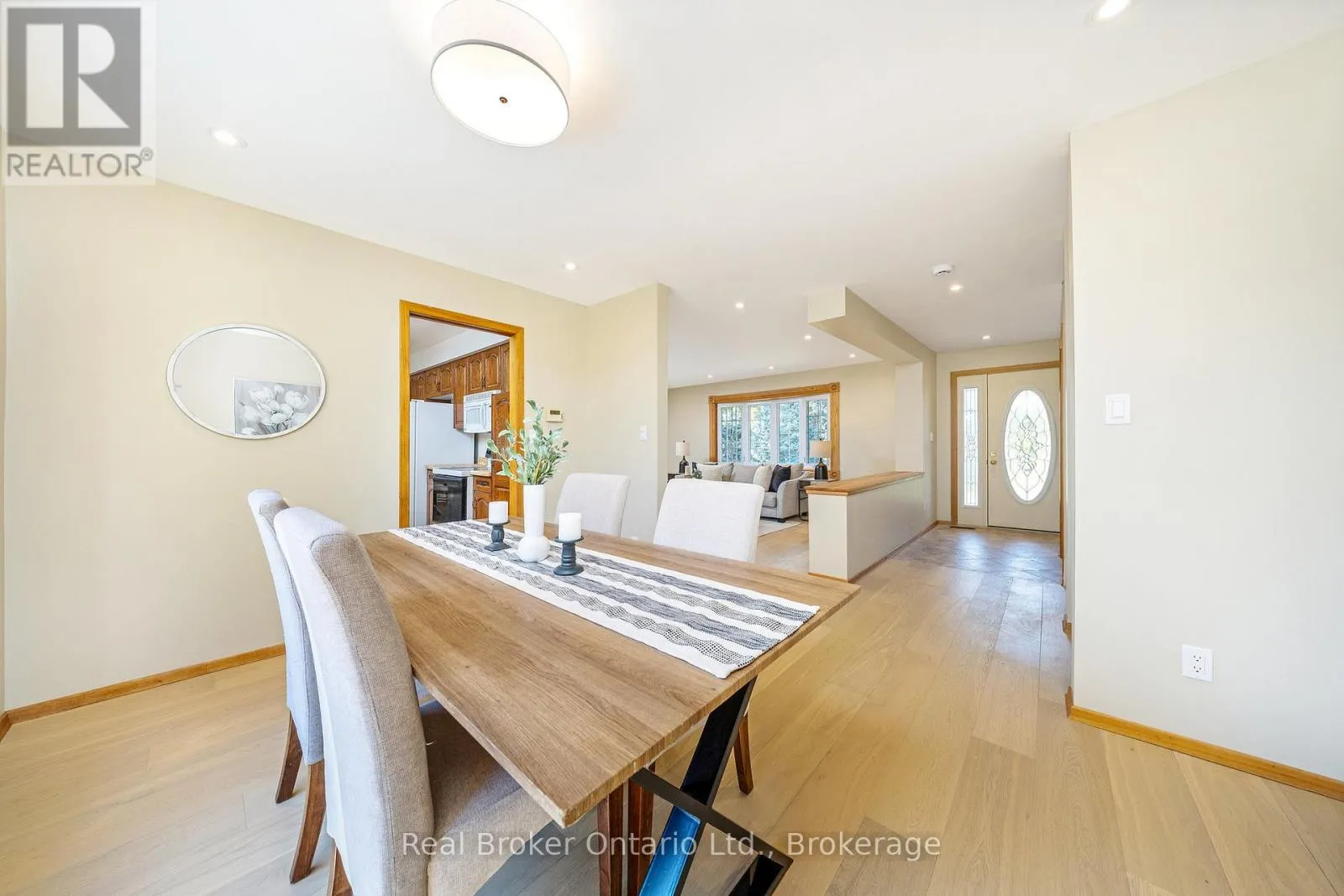 Wellington Road 124 E of Wellington Road 26 This four-level side split offers plenty of natural light and flexible space for family living or home-based work. The main floor features a bright living and dining area with large windows, plus a functional kitchen, laundry room, and two-piece bath. Upstairs, the primary bedroom has its own ensuite, along with two additional bedrooms and a full main bathroom. The lower level includes a separate entrance, a spacious family room, a fourth bedroom, and another full washroom-perfect for extended family or in-law potential. The unfinished basement provides great storage space, a large cold cellar, and room for future ideas. A detached shop adds excellent options for a workshop, storage, or business use, and the attached garage completes this versatile property. (id:27476)