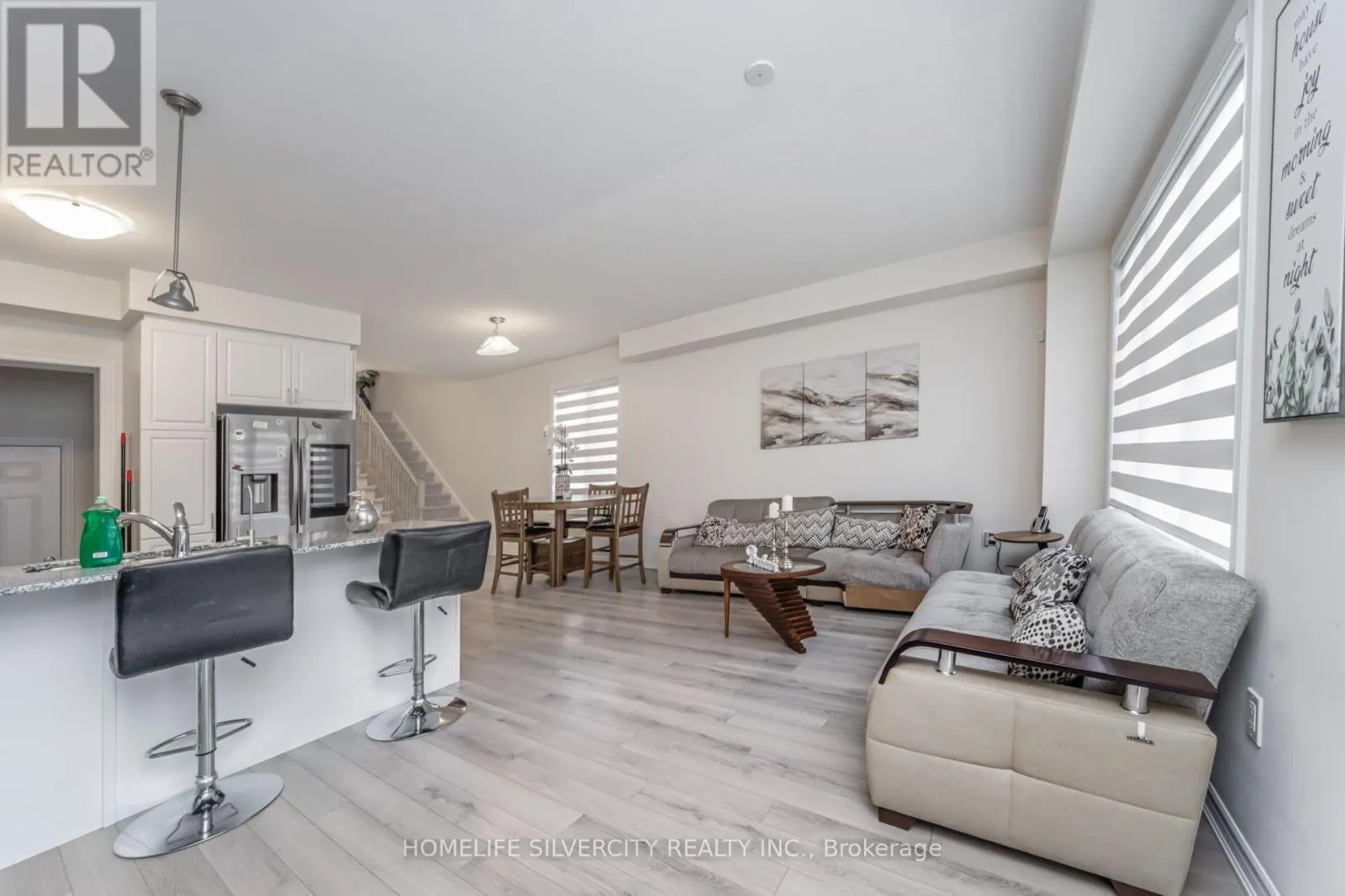 Wellington Rd 124 & 10th Line Like A Detached End Unit Modern Town Home w/4 Bedrooms for Sale!! 9-foot ceilings on Main Floor comes with Hardwood Floors!! Modern Kitchen featuring Stainless Steel Appliances, Quartz counter tops, and a large Island breakfast bar & extra pantry space with organized shelves for convenient storage!! Enjoy the cozy ambiance of a gas fireplace on the main floor, adding warmth and charm to the open-concept living area - perfect for relaxing evenings or entertaining guests!! Master with Ensuite Bath & Walk-in Closet!! All other 3 Rooms are good size!!No more hauling laundry up and down - the second-floor laundry room adds comfort and convenience to your everyday routine!! Legal separate entrance to the basement provides ease and flexibility for future rental potential!! Spacious basement featuring huge windows that provide excellent daylight and ventilation!! No walkway at front ensures low maintenance and easy snow removal. Enjoy a private, separate individual driveway offering ample parking space and convenience!! Must See (id:27476)